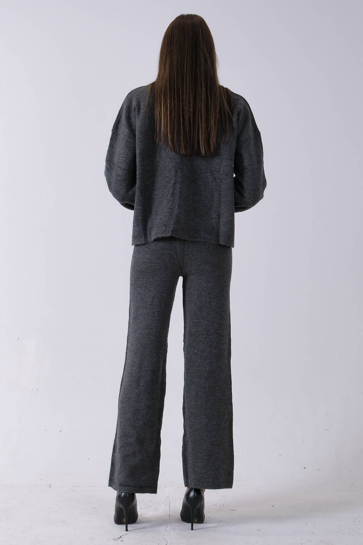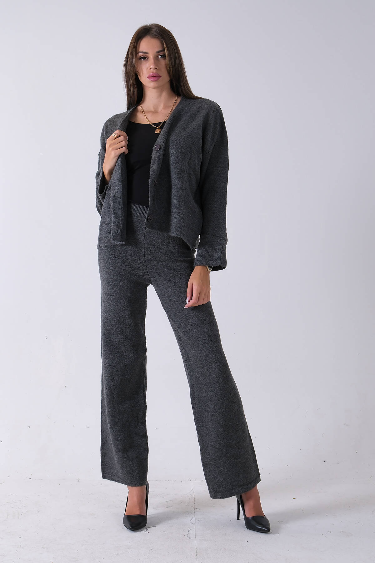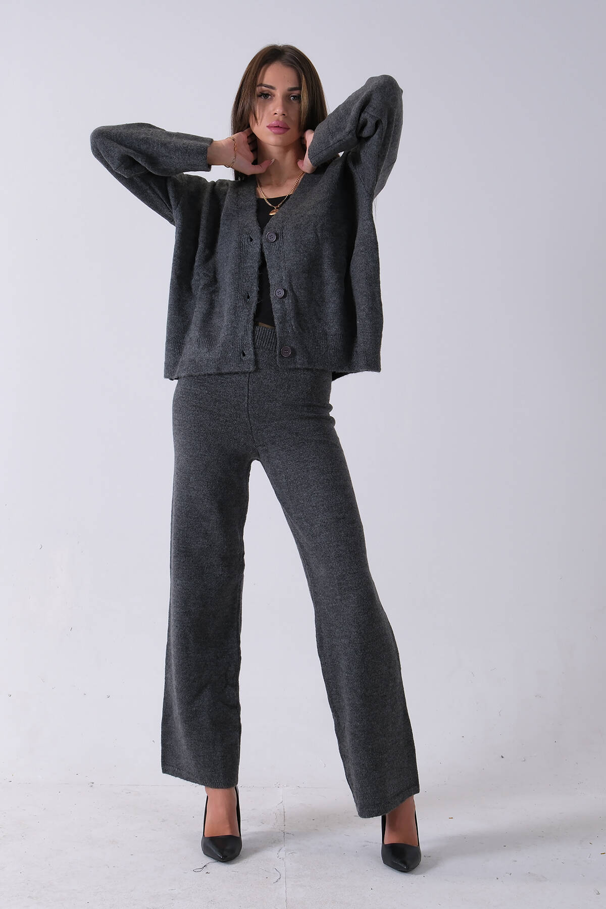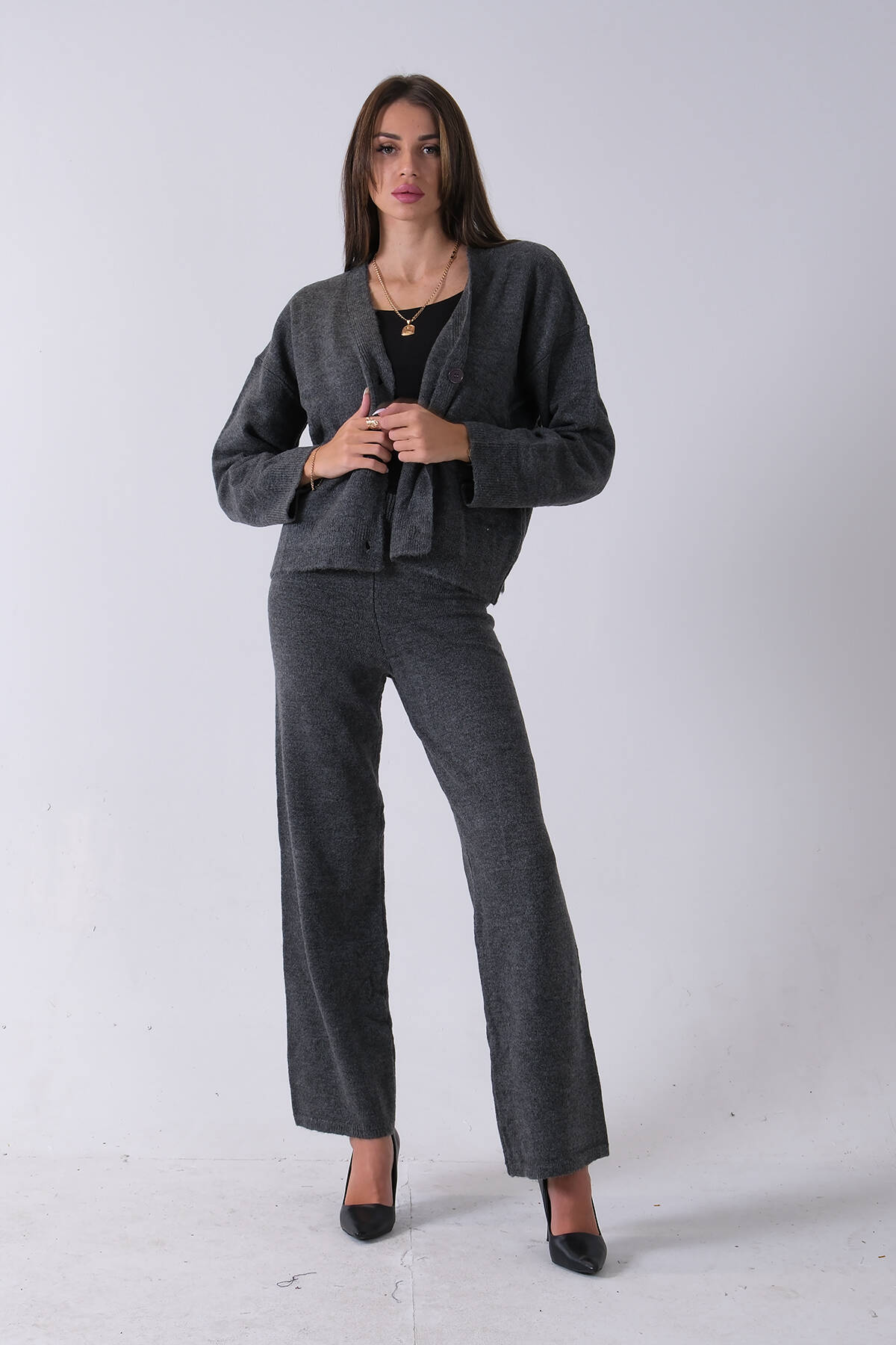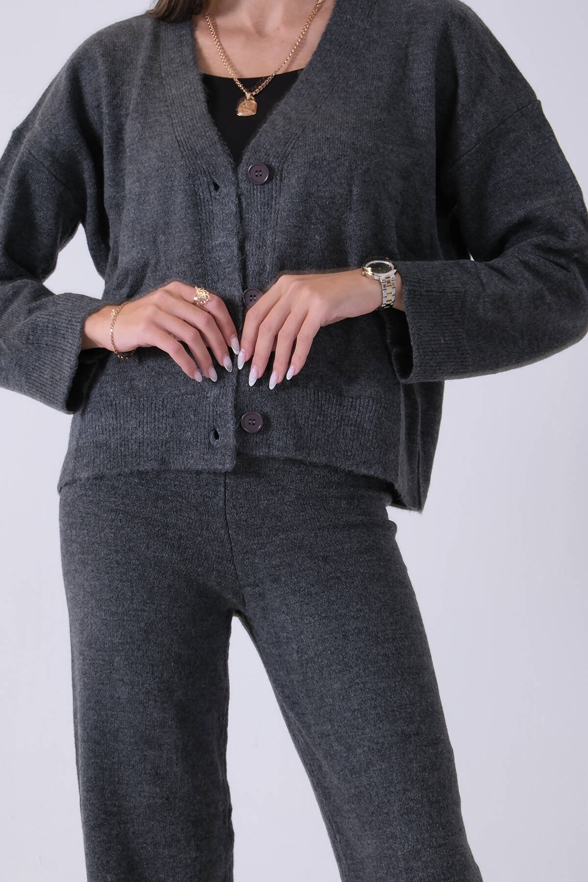 Antrasit 3 Düğme Hırka Kapamalı Beli Lastikli Pantolonlu Triko Takım 46892606.315