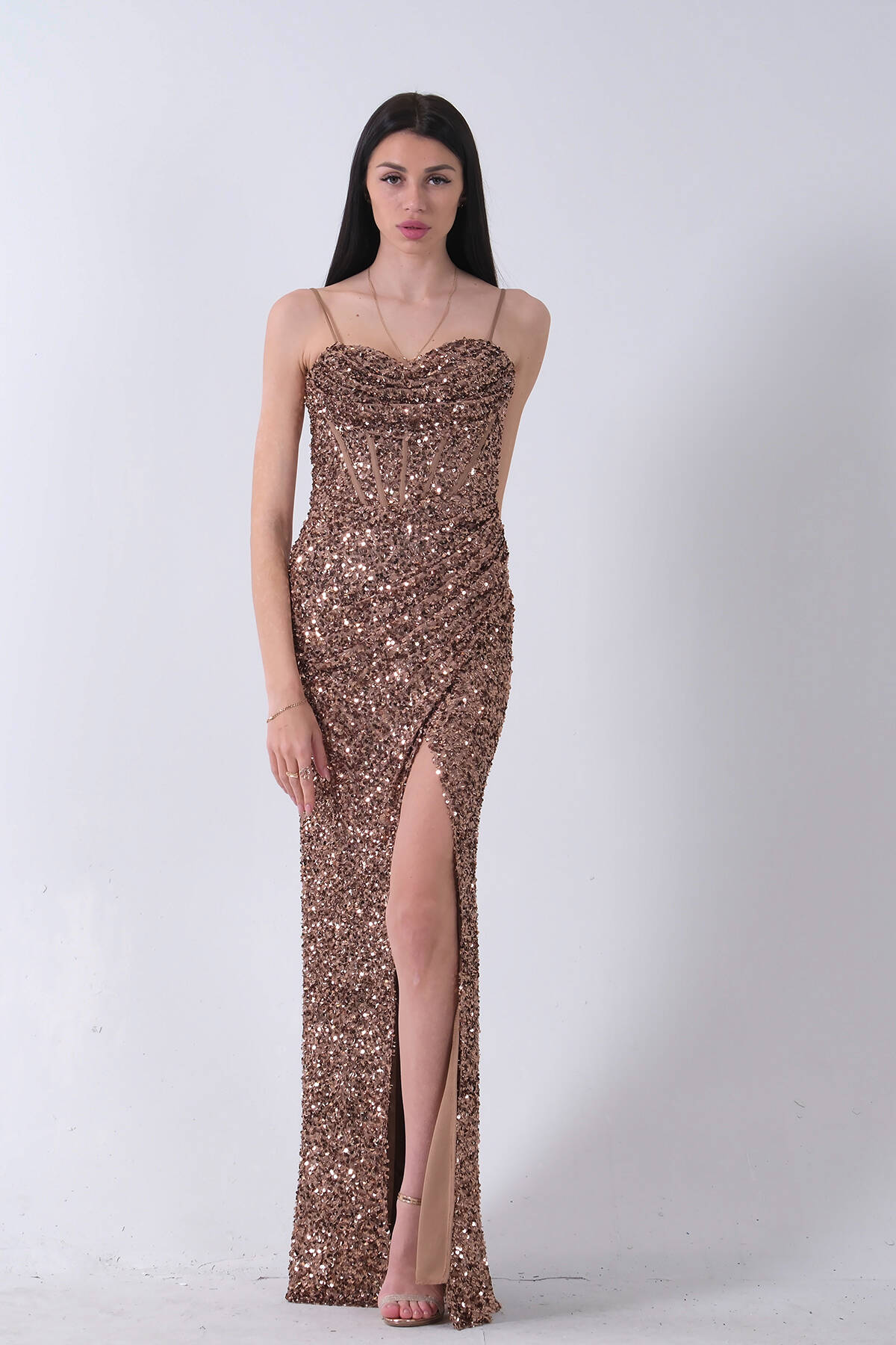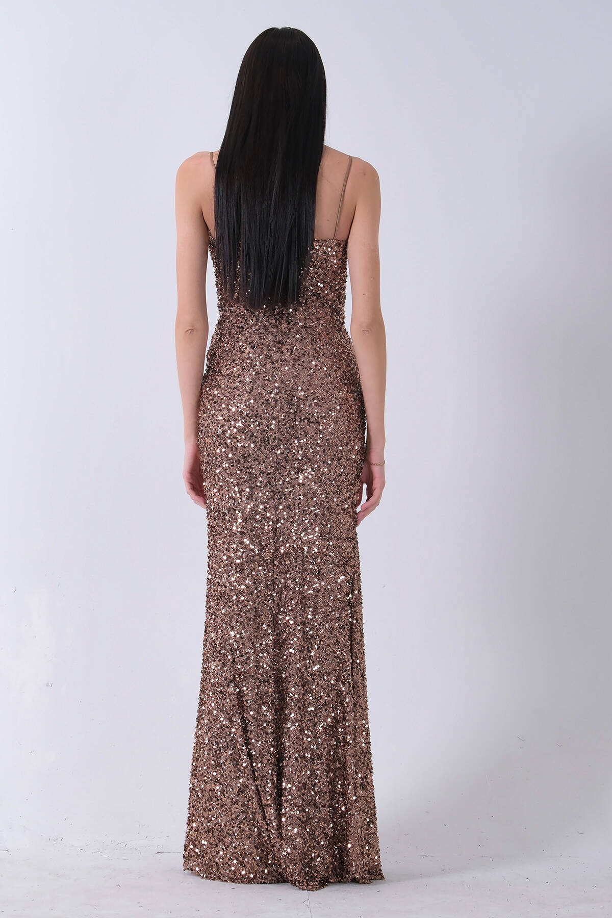 Bakır Drapeli Parlak Pul Payetli Askılı Abiye 9705539.231