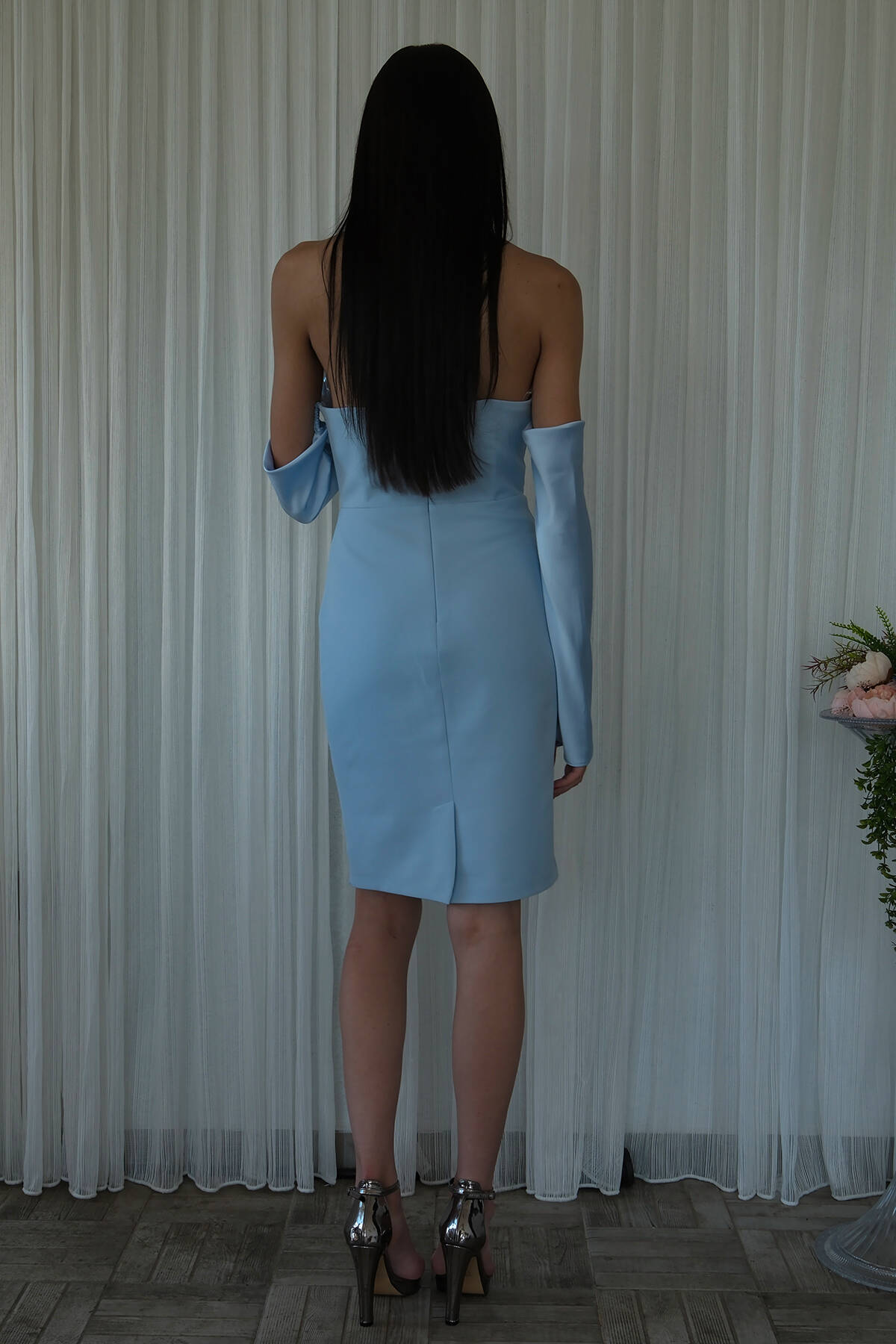 Bebe Mavi Drapeli Düğme Detaylı Mini Boy Abiye 9705537.449