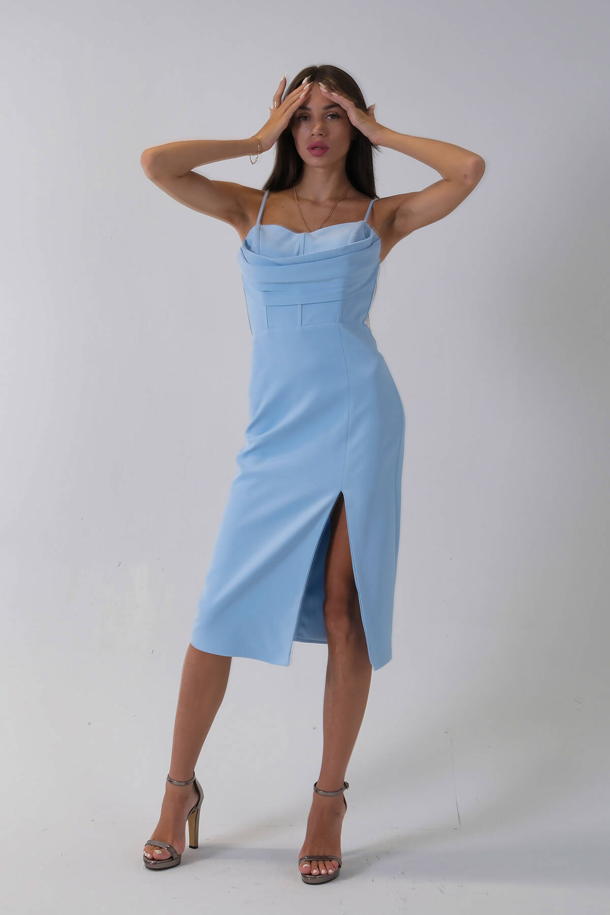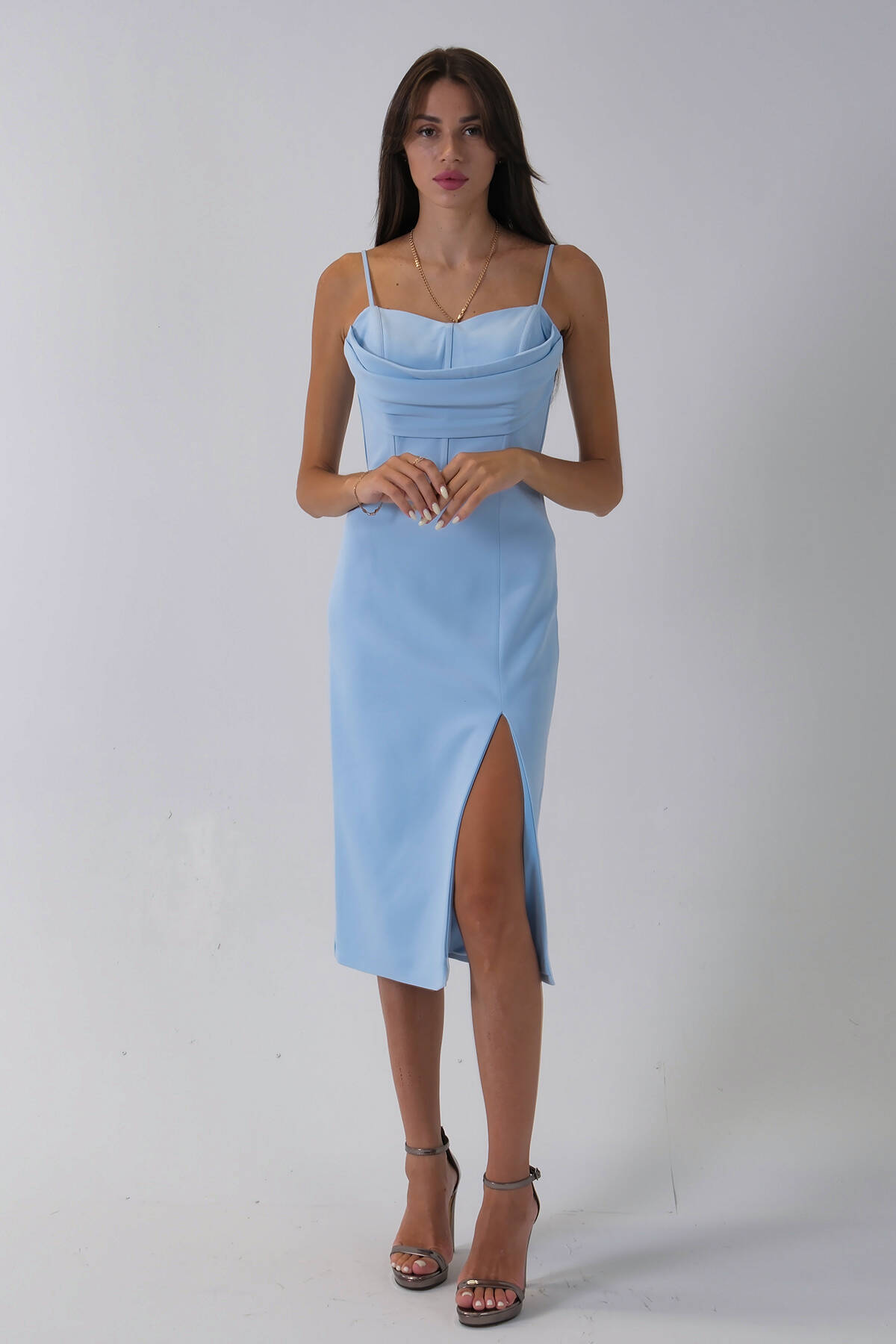 Bebe Mavi İp Askılı Yırtmaç Detaylı Midi Boy Abiye 0801078.449