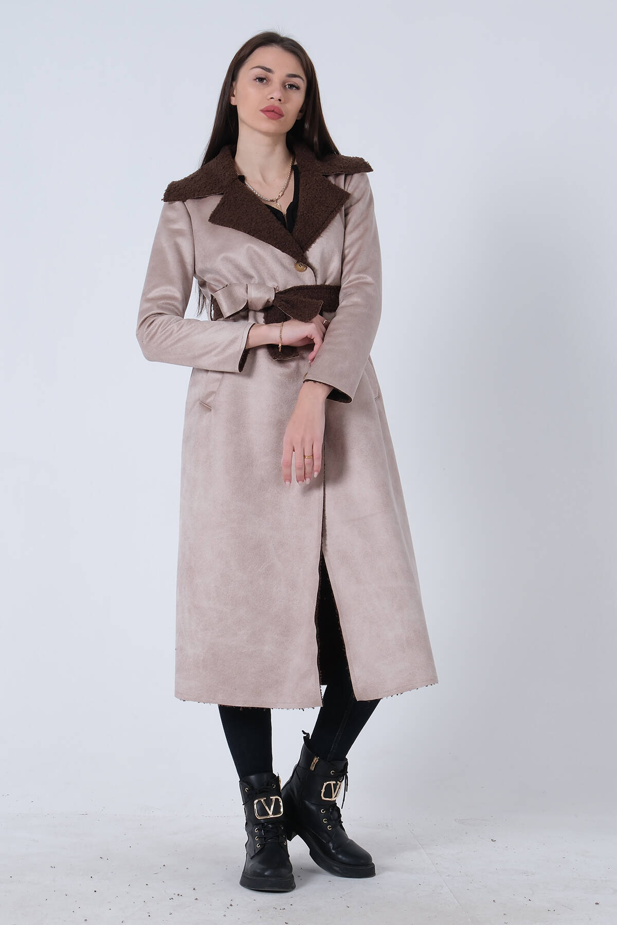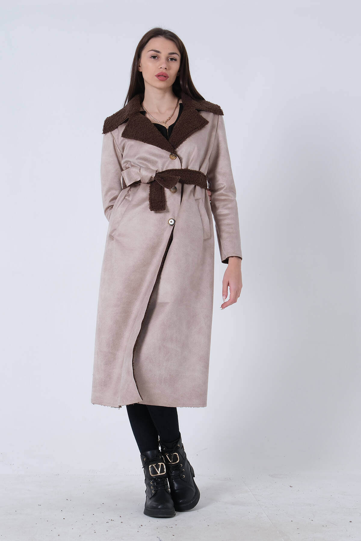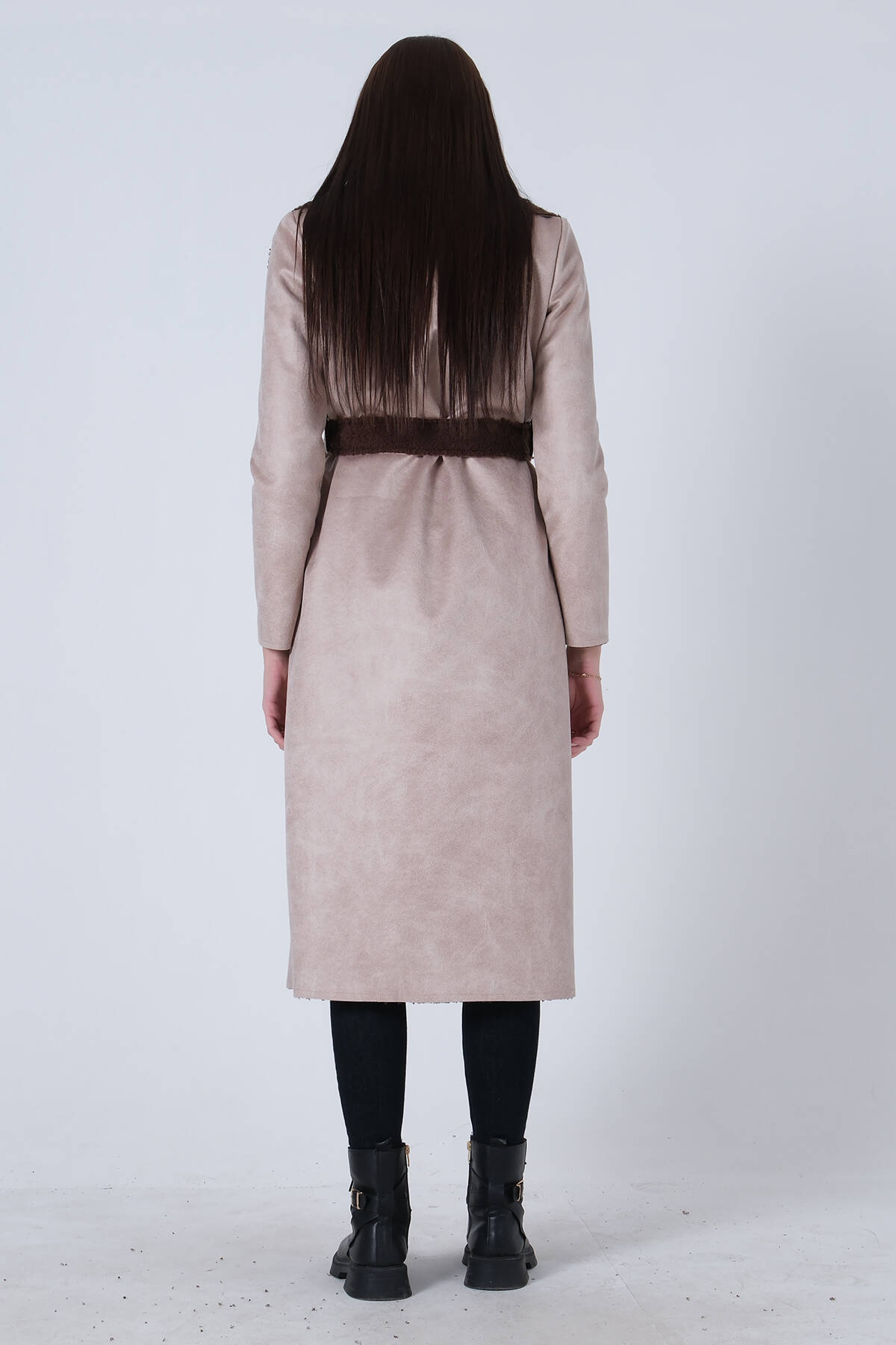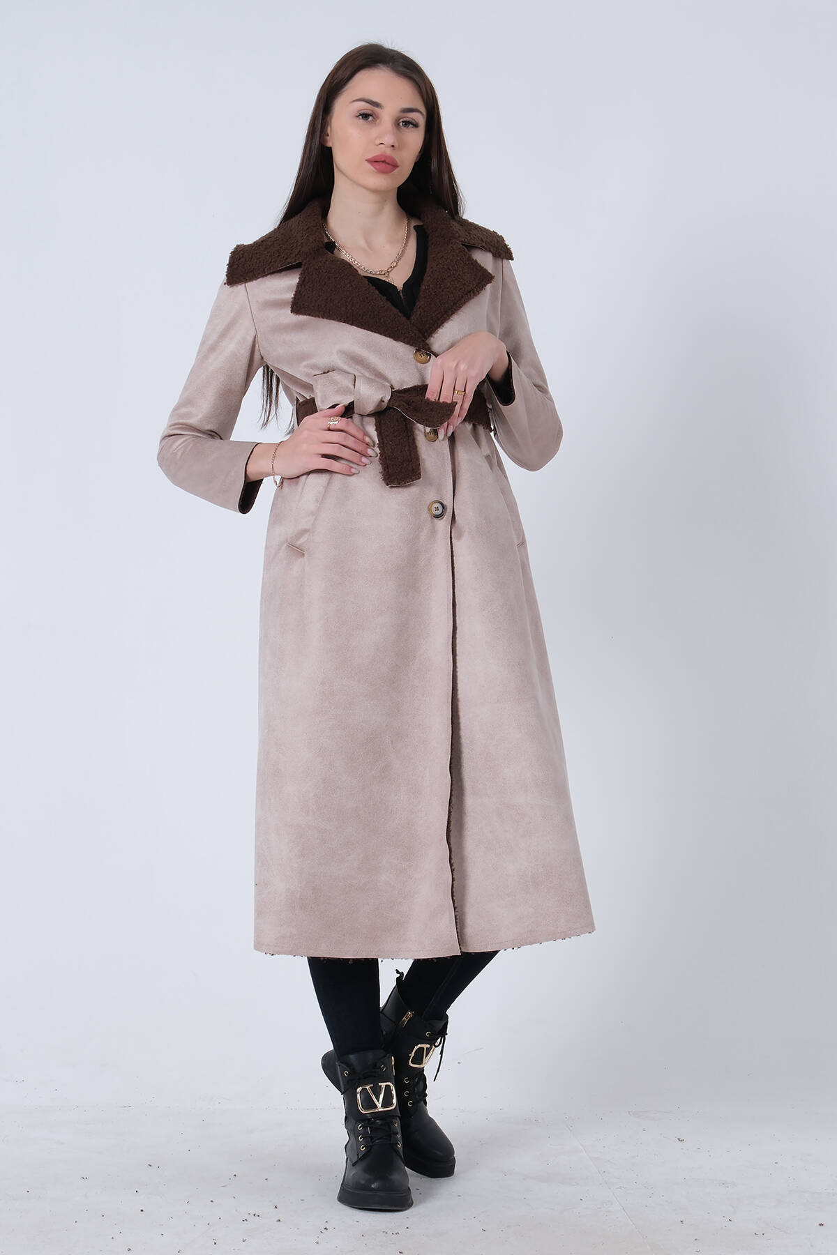Bej Süet Düğmeli Seyyar Kemerli Kaban 0108087.55