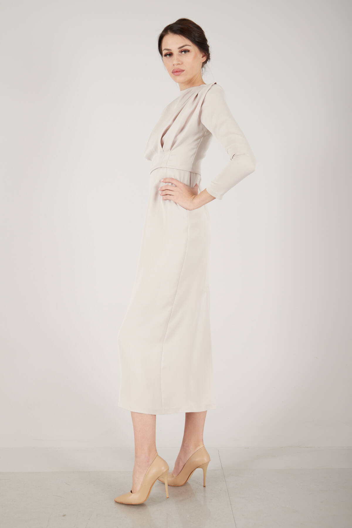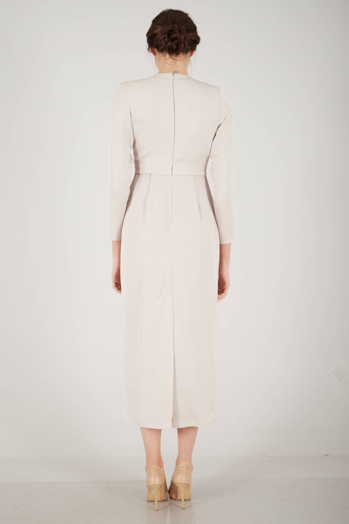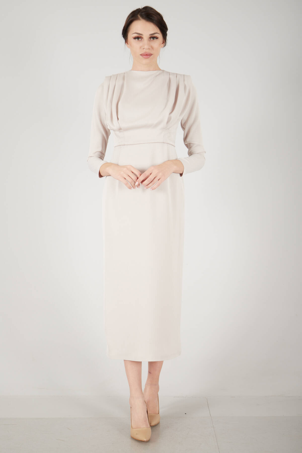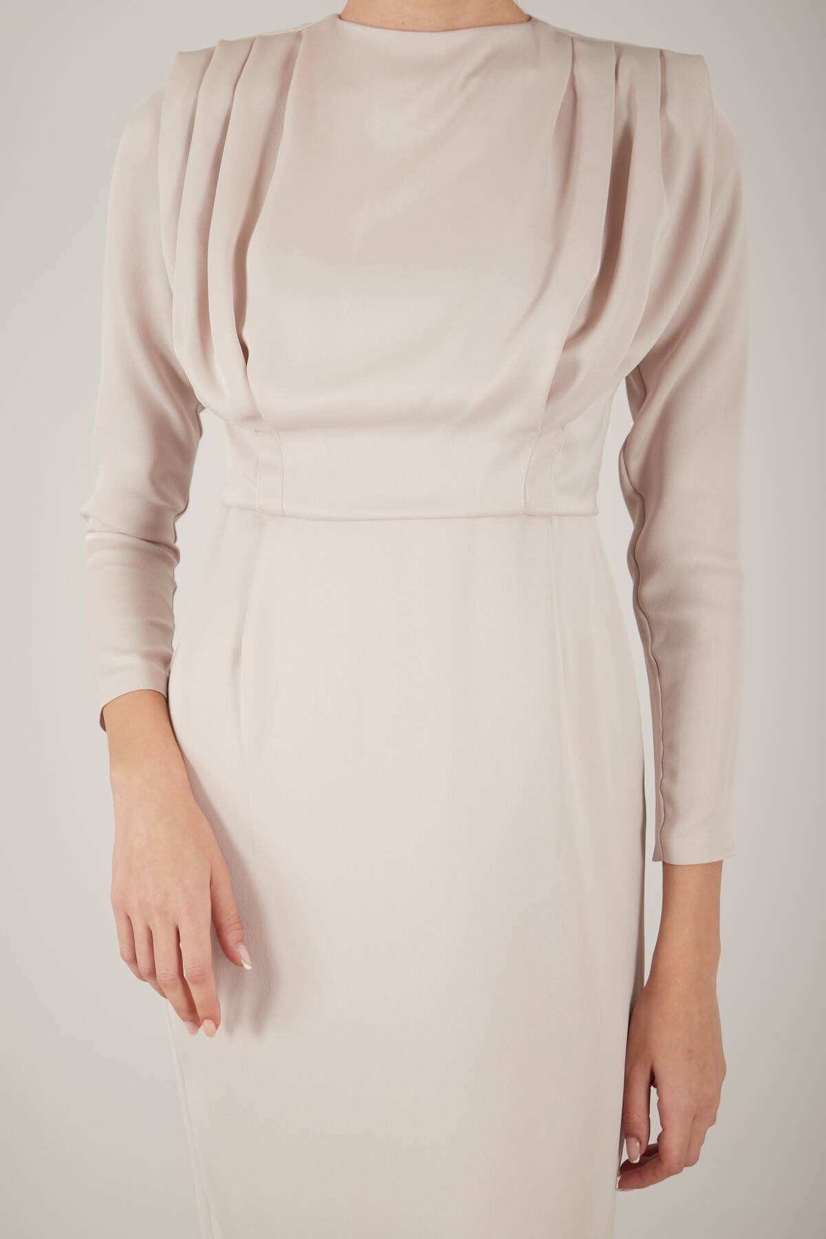 Modelin Ölçüleri : Boy: 1.75 cm / Göğüs: 87 cm / Bel: 66 cm /Basen : 94 cm Mankenin Üzerindeki Ürün 36/S Bedendir %100 Polyester Uzun Kol Omuzu Vatkalı Bisiklet Yaka Üzeri Plise Detaylı Astarlı Saten Abiye Elbise Ürün Boyu: 131 cm Stüdyo Çekimlerinde Renkler Işık Farklılıgından Dolayı Değişiklik Gösterebilir. (Dikkat! Ürünlerimiz güvenlik bandı ile gönderilmektedir . Güvenlik bandı olmayan ürünlerin iadesi kabul edilmeyecektir)