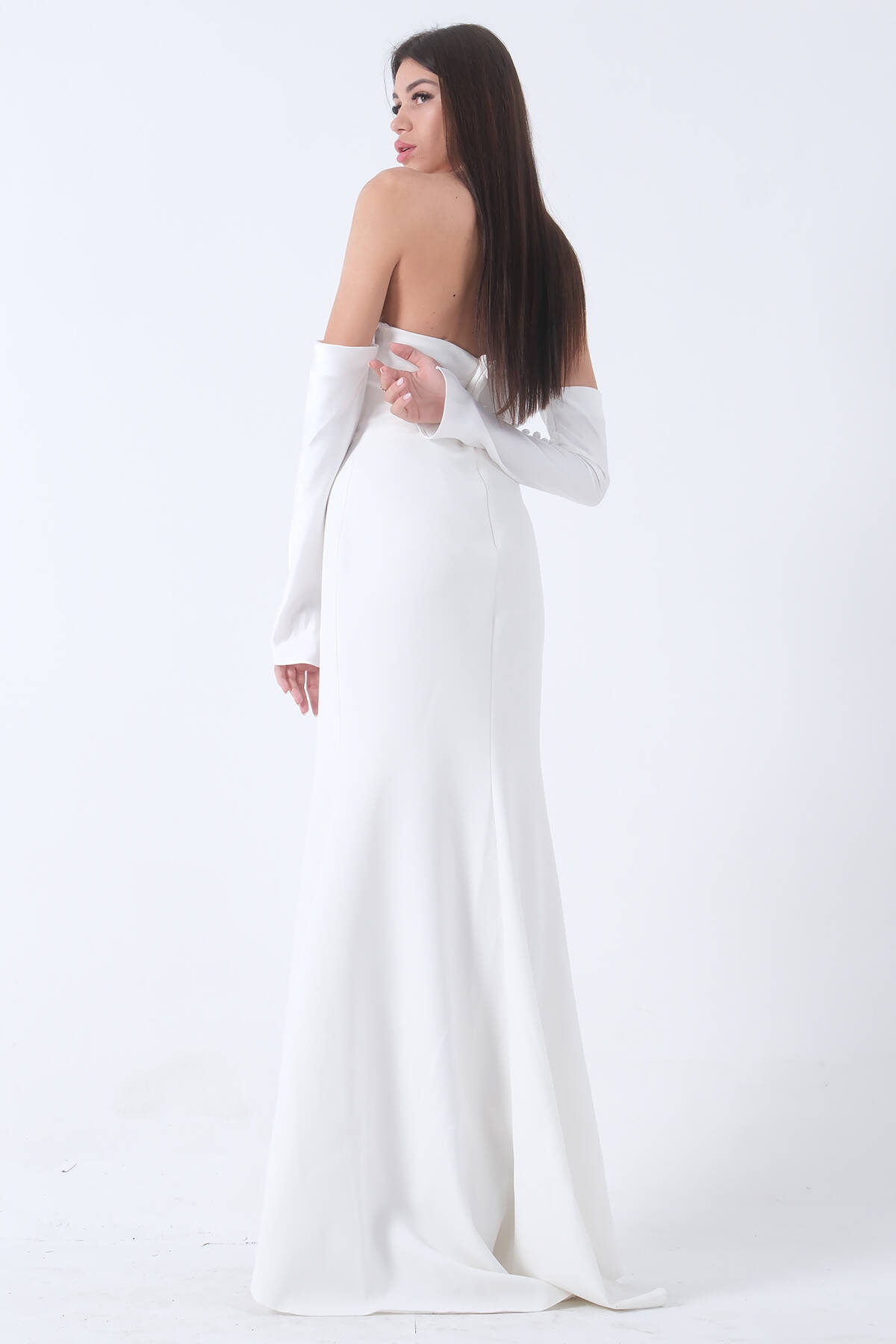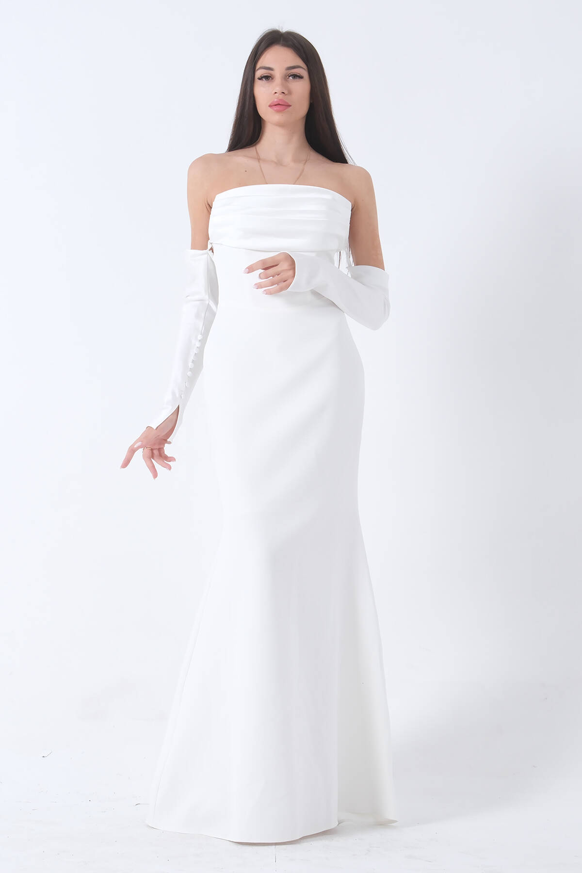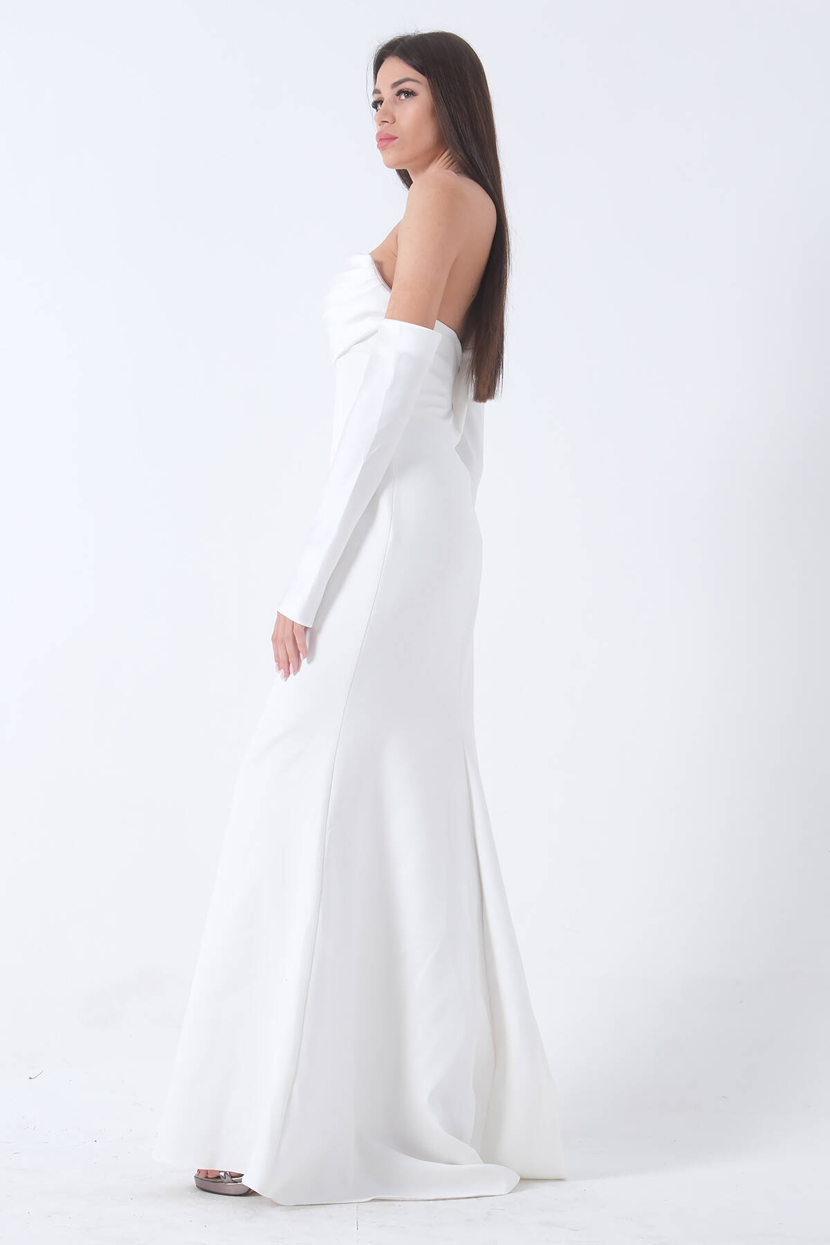 Beyaz Drapeli Düğme Detaylı Uzun Abiye 9705361.15