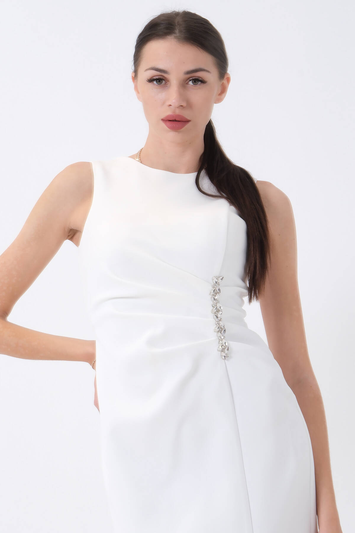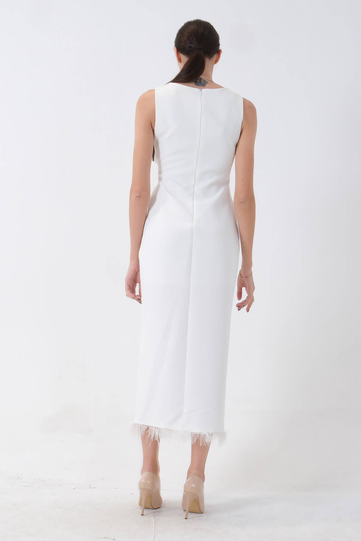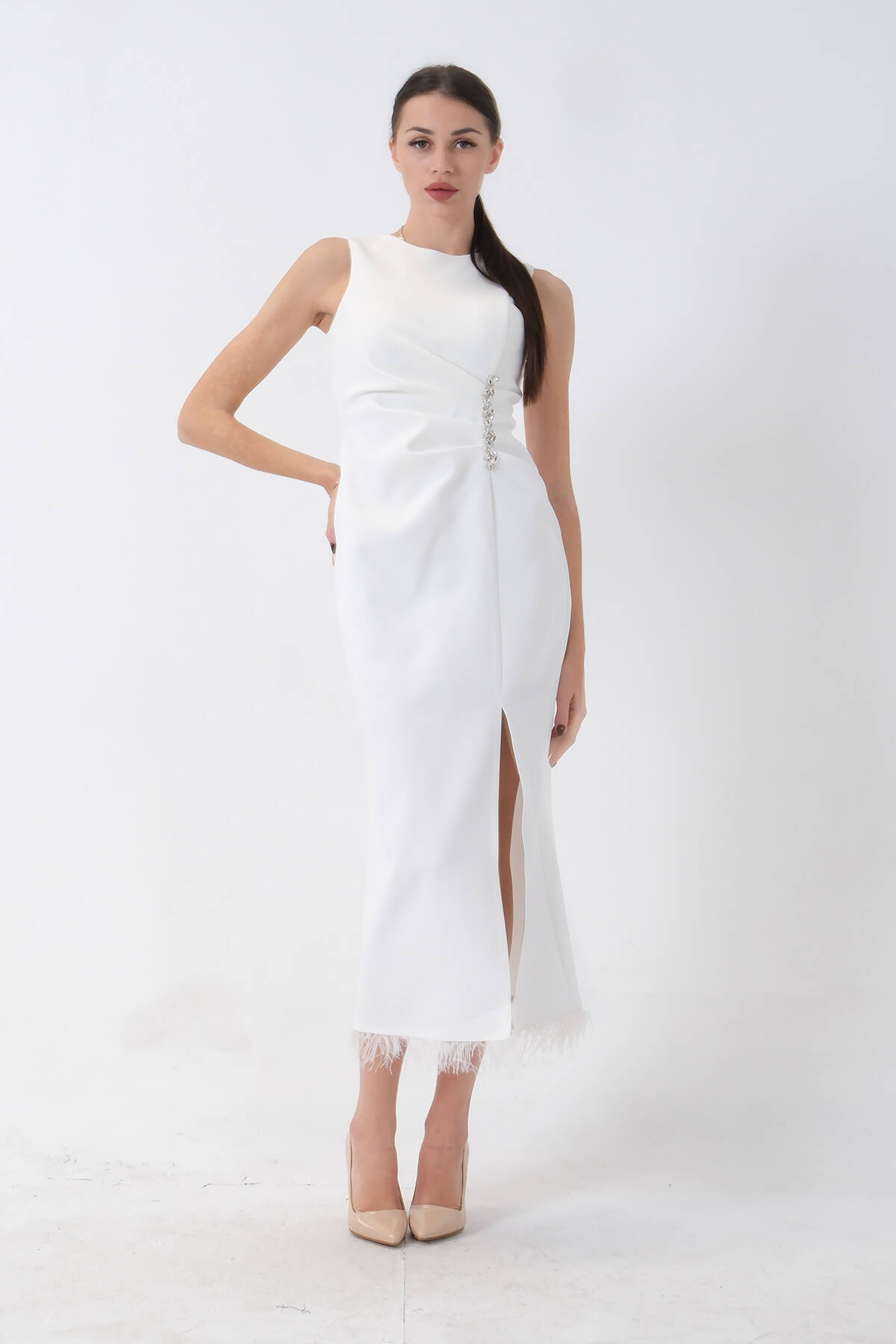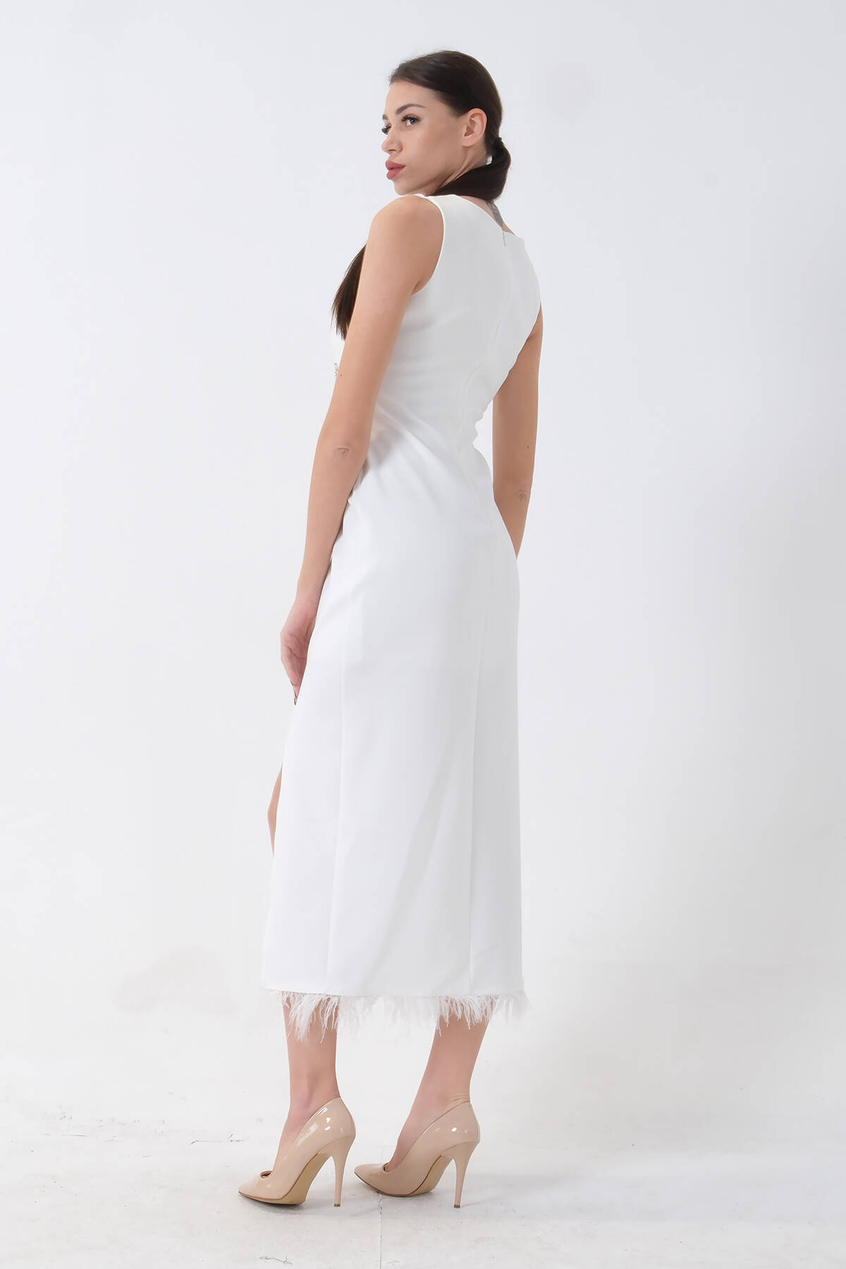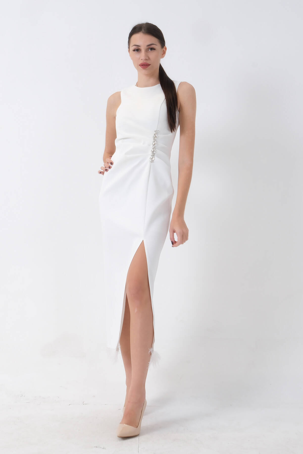 Beyaz Önü Taş Detaylı Yırtmaçlı Tüy Detaylı Abiye 9705402.15