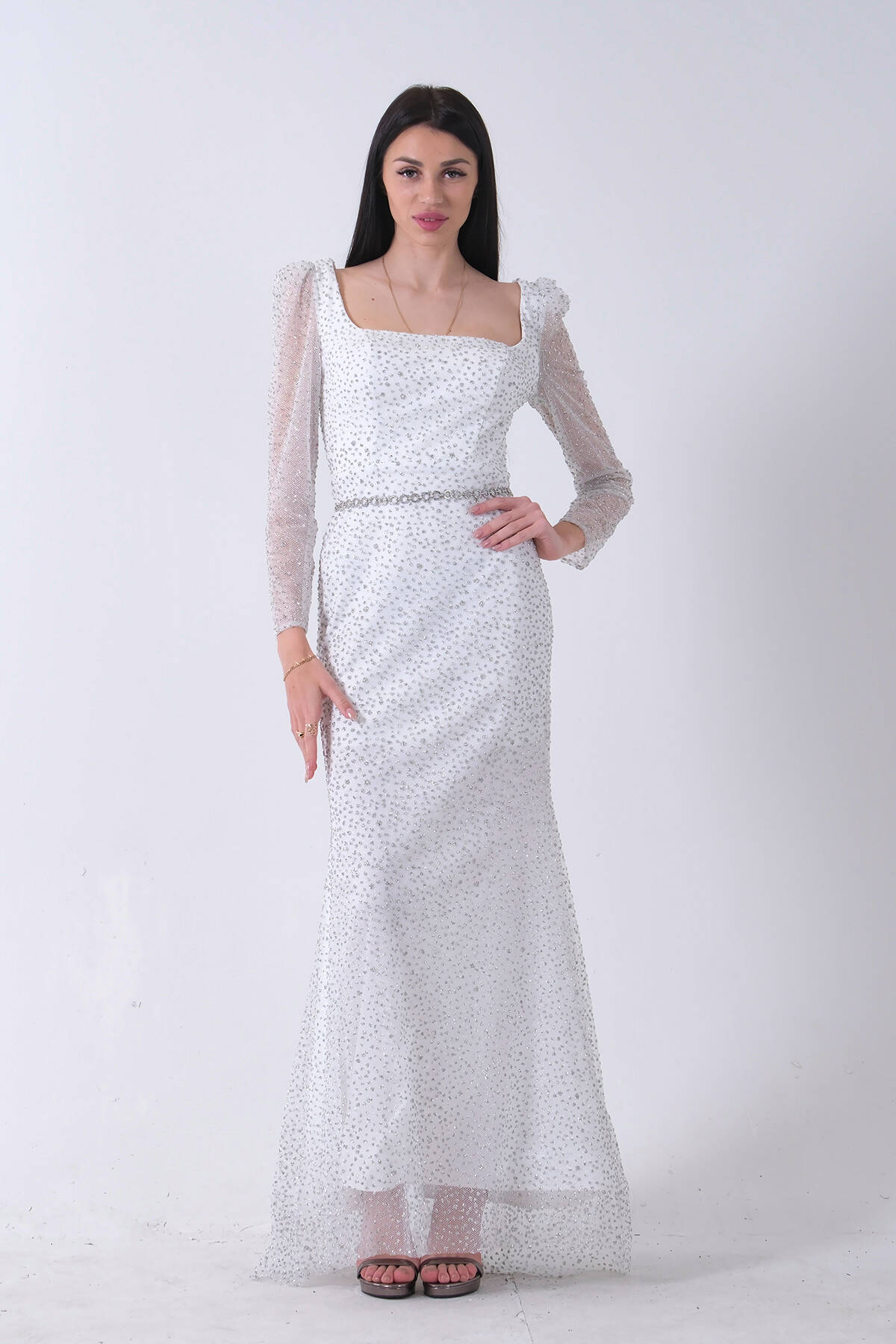 Beyaz Taş İşlemeli Balık Abiye Elbise 9705141.15