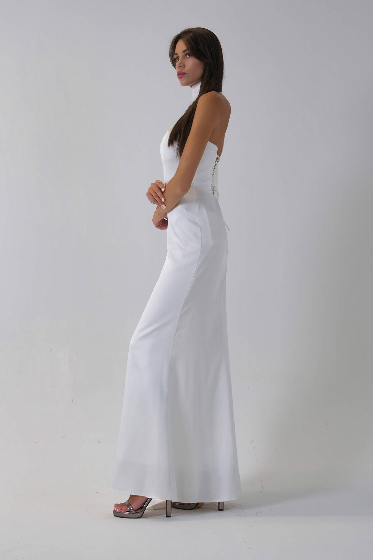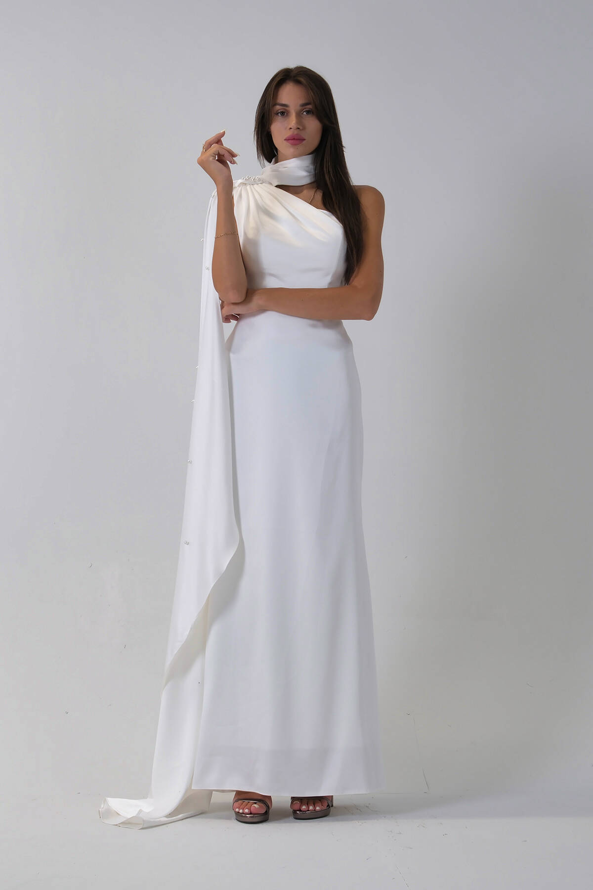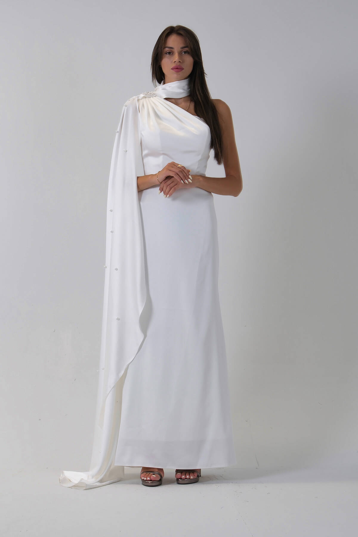 Beyaz Yaka Kuşak Detaylı Tek Omuz Abiye 0801099.15