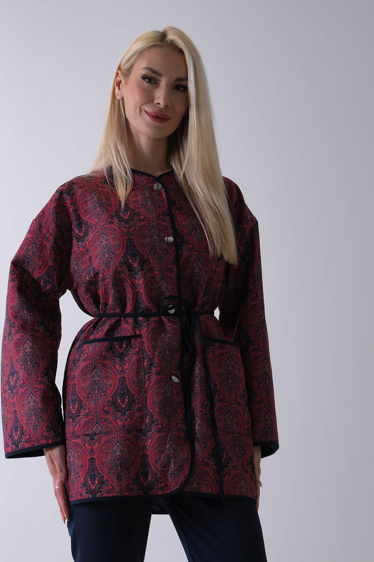 Bordo Astarlı Biye Detaylı Cepli Kapitone Ceket 31050766.04