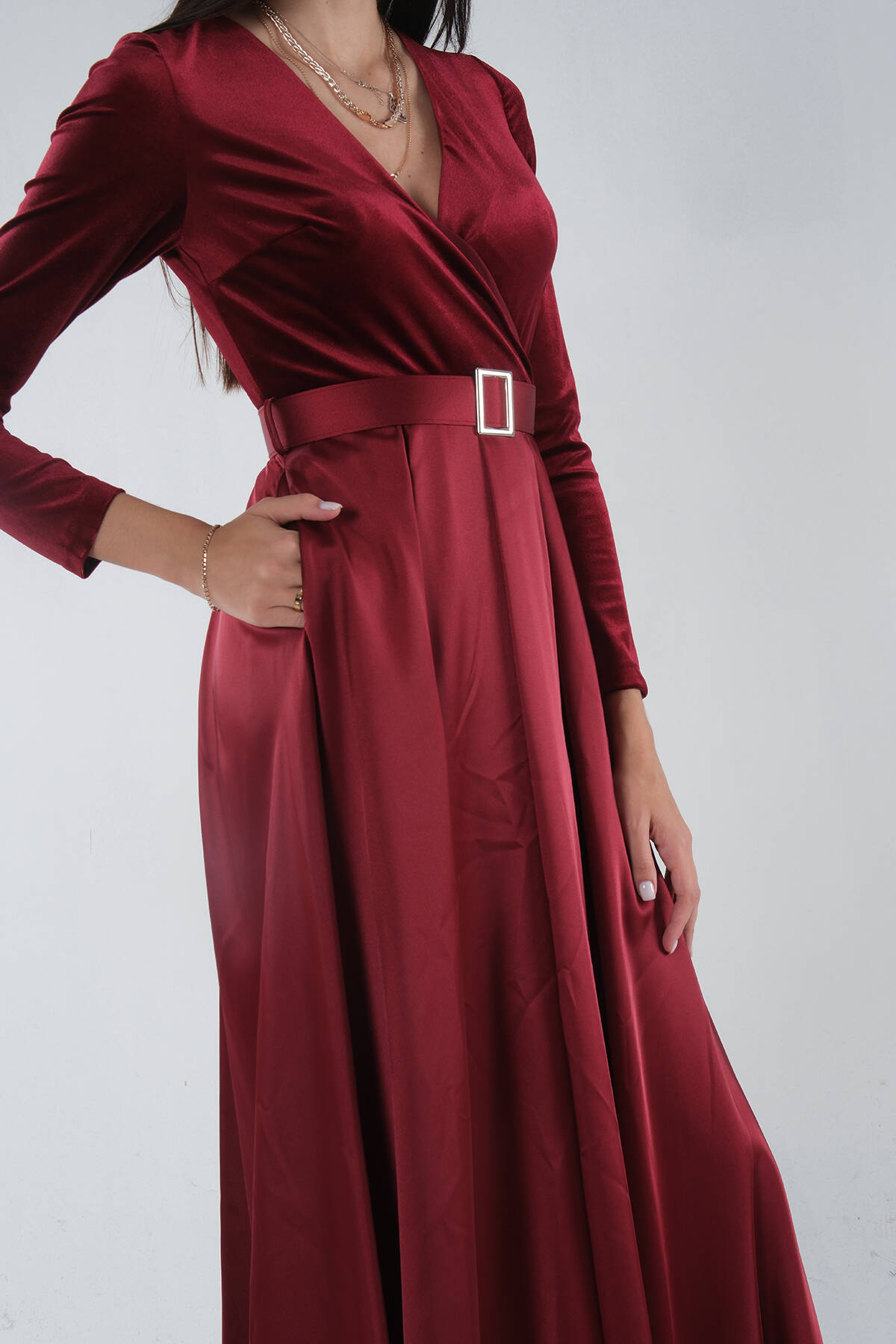 Modelin Ölçüleri : Boy: 1.75 cm / Göğüs:90 cm / Bel: 70 cm /Basen : 95 cm Mankenin Üzerindeki Ürün M/38 Bedendir %100 Polyester Uzun Kol Kruvaze Yaka Beli Seyyar Kemerli Üzeri Kadife Altı Saten Çift Cepli Abiye Ürün Boyu : 163 cm Stüdyo Çekimlerinde Renkler Işık Farklılıgından Dolayı Değişiklik Gösterebilir (DİKKAT! ÜRÜNLERİMİZ GÜVENLİK BANDI İLE GÖNDERİLMEKTEDİR . GÜVENLİK BANDI OLMAYAN ÜRÜNLERİN İADESİ KABUL EDİLMEYECEKTİR)