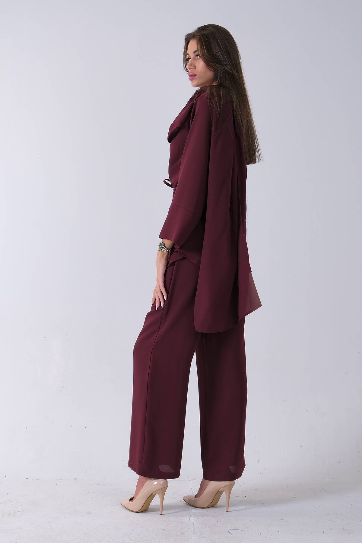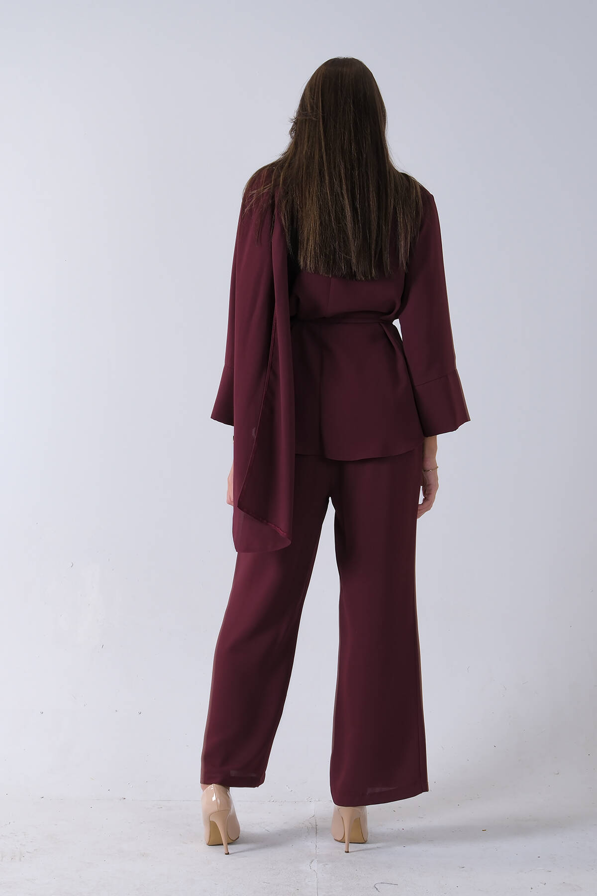 Bordo Şal Yaka Üzeri Broş Detaylı Pantolonlu Takım 4592270.04