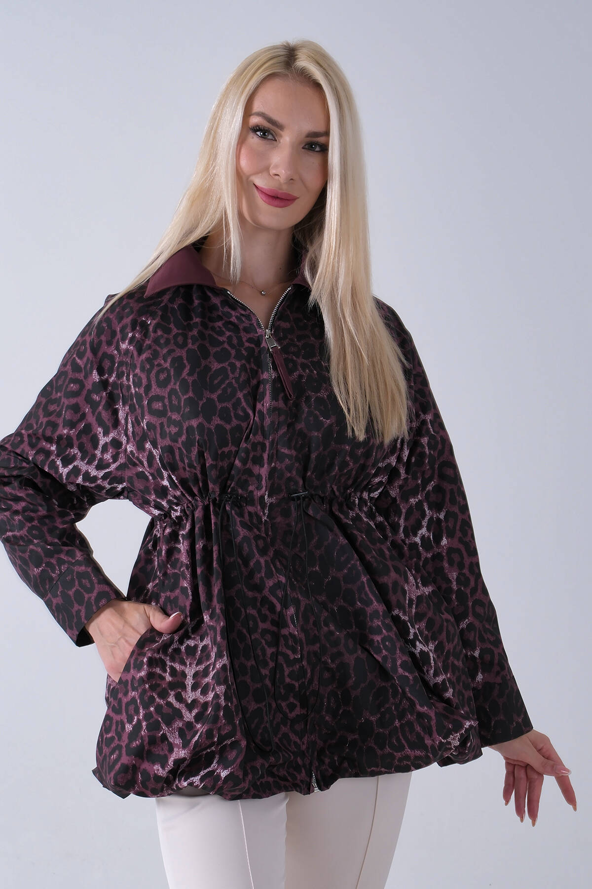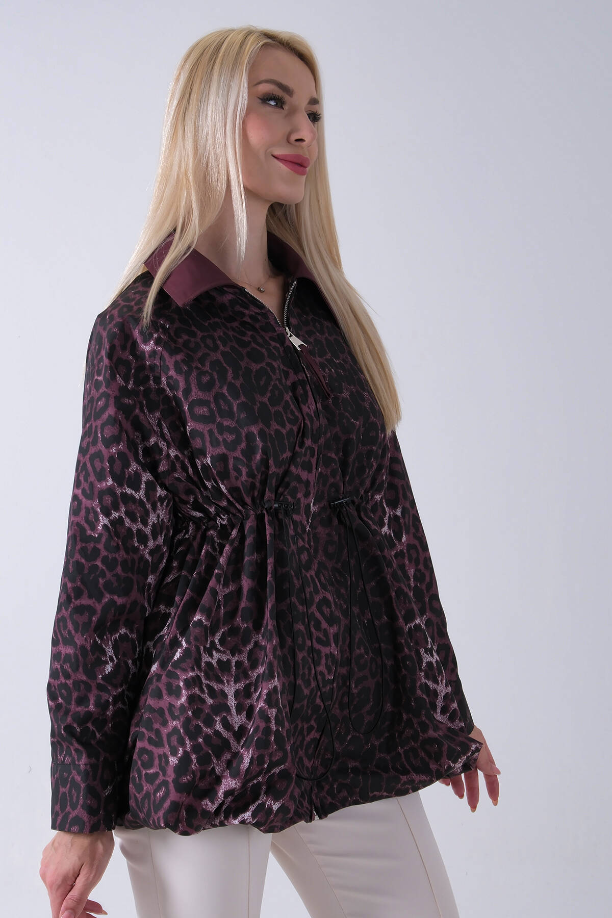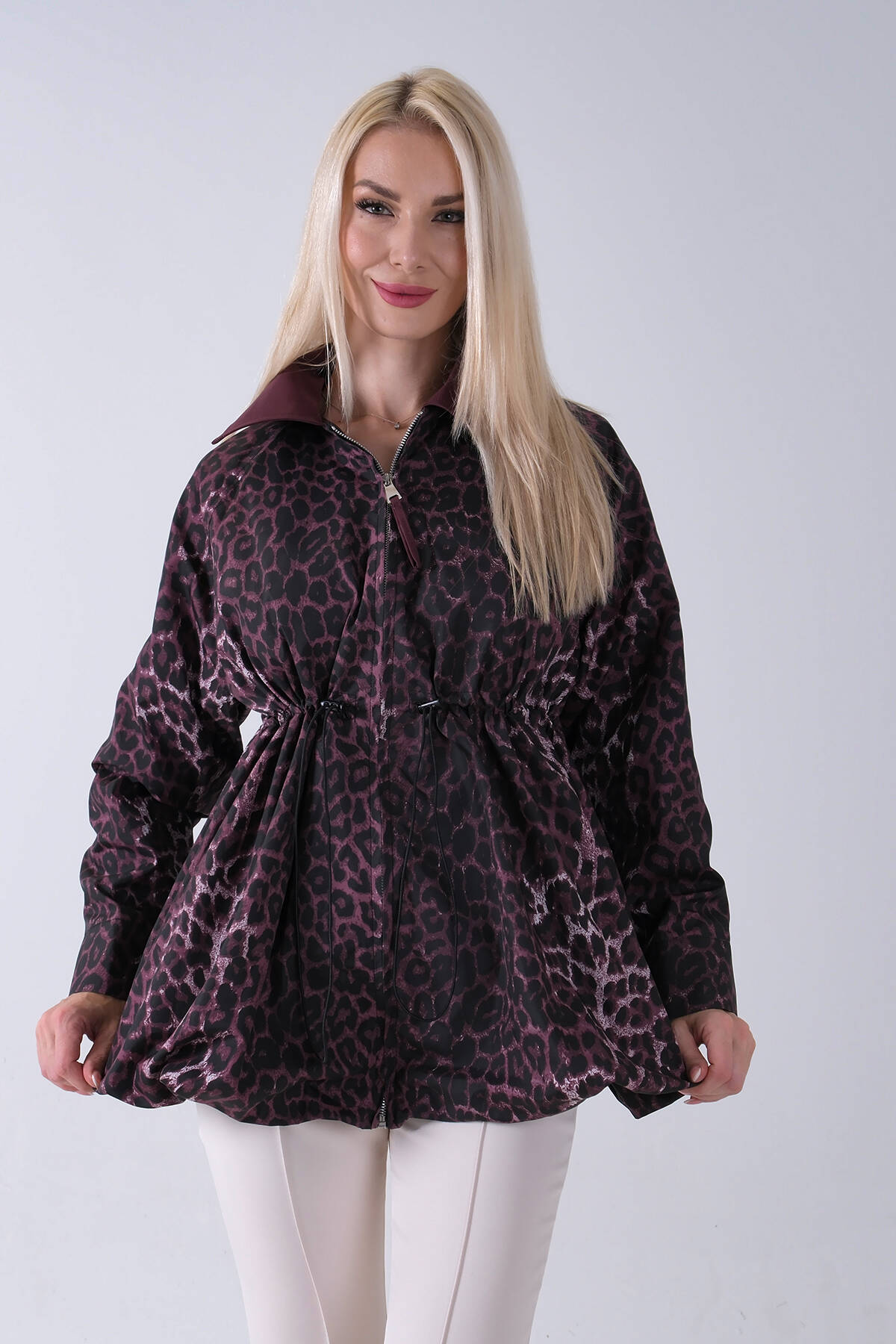 Bordo Yaka Garnili Leopar Desenli Beli Lastikli Trenç 5309347.04
