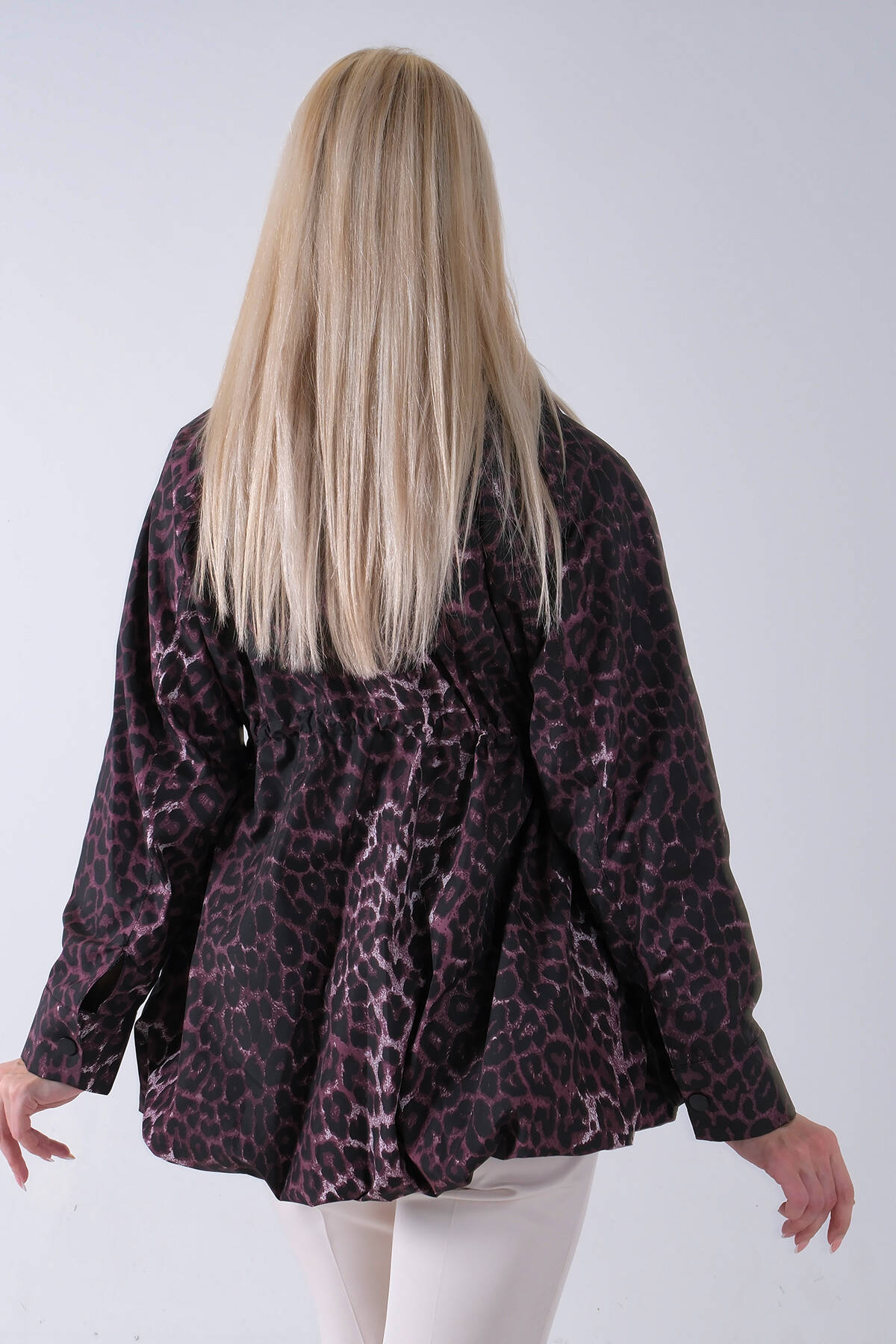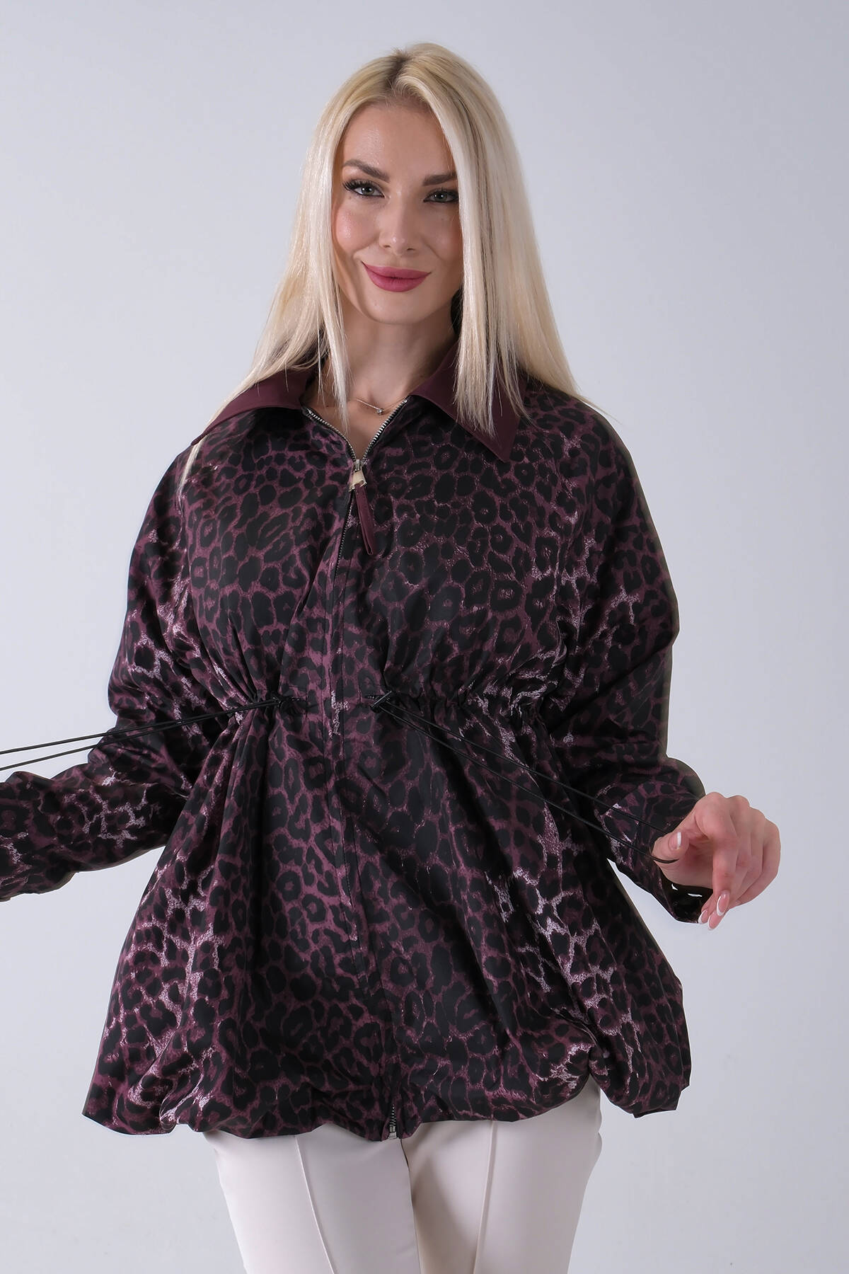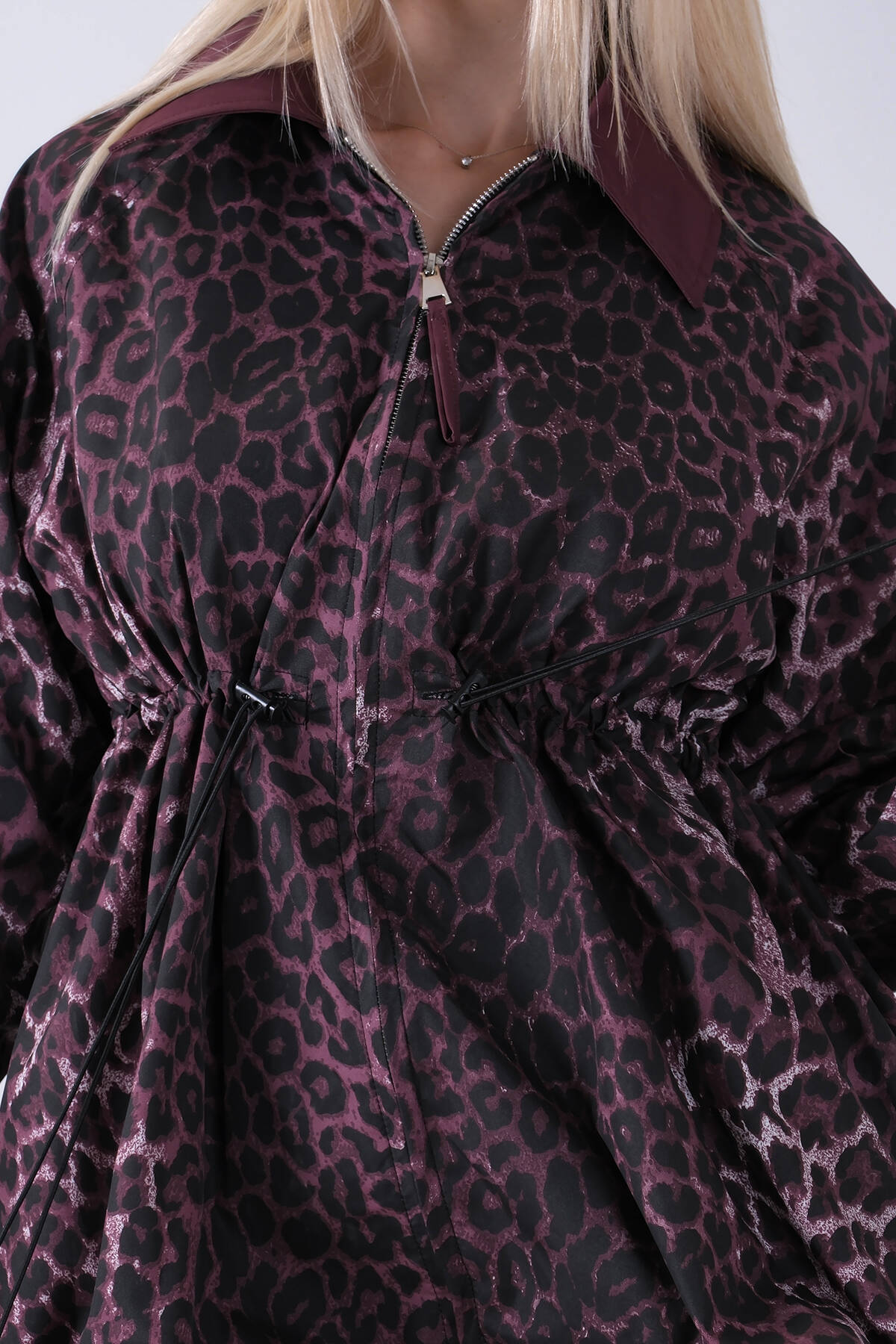 Bordo Yaka Garnili Leopar Desenli Beli Lastikli Trenç 5309347.04