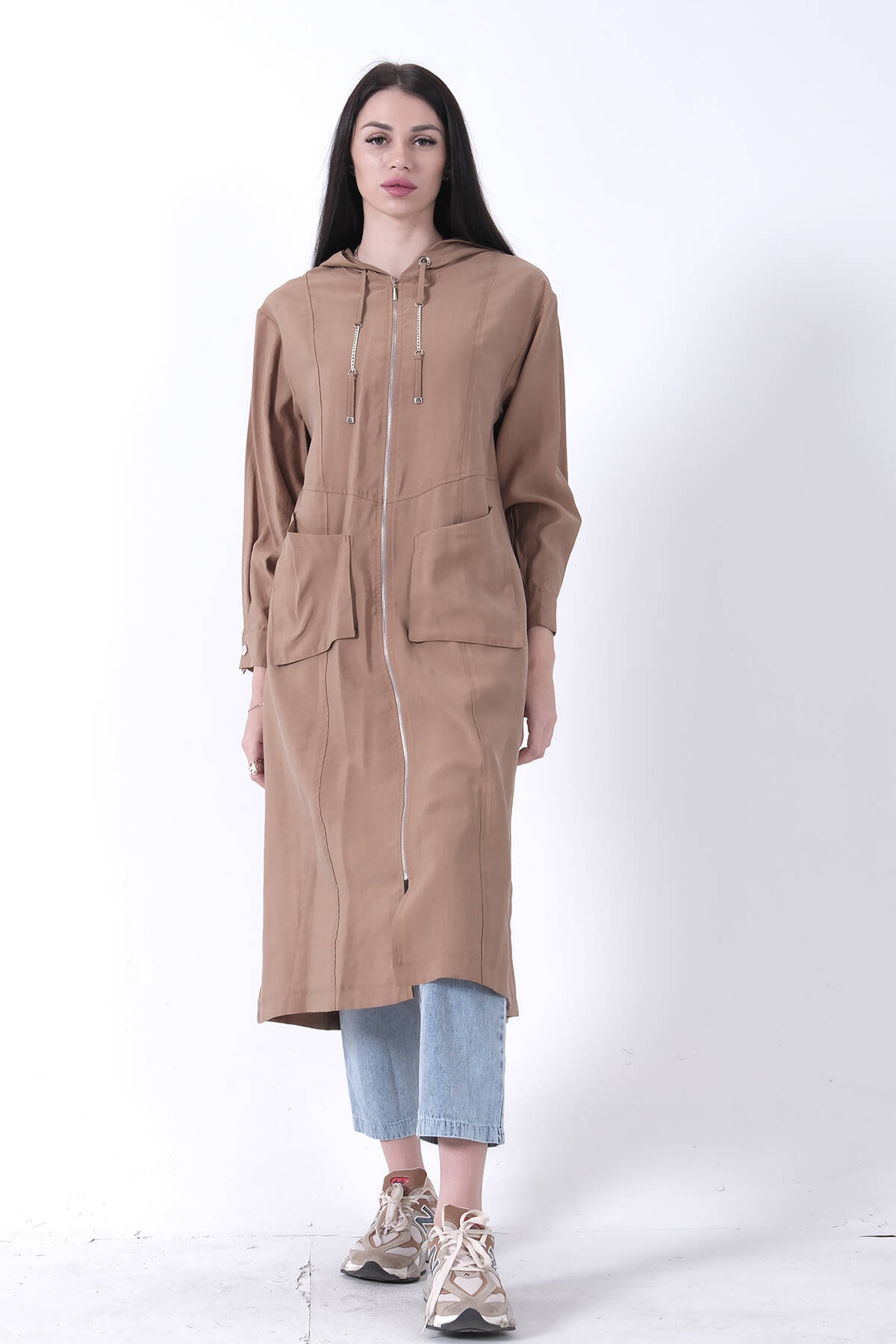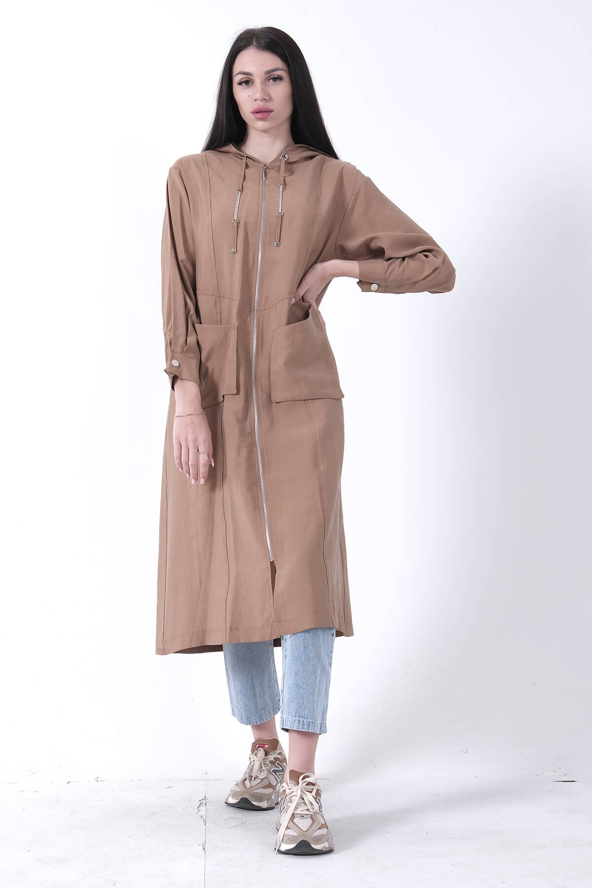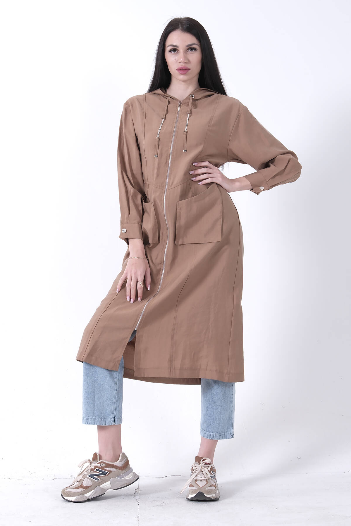 Camel Çift Cep Detaylı Fermuar Kapamalı Kapüşonlu Kap 44510684.09