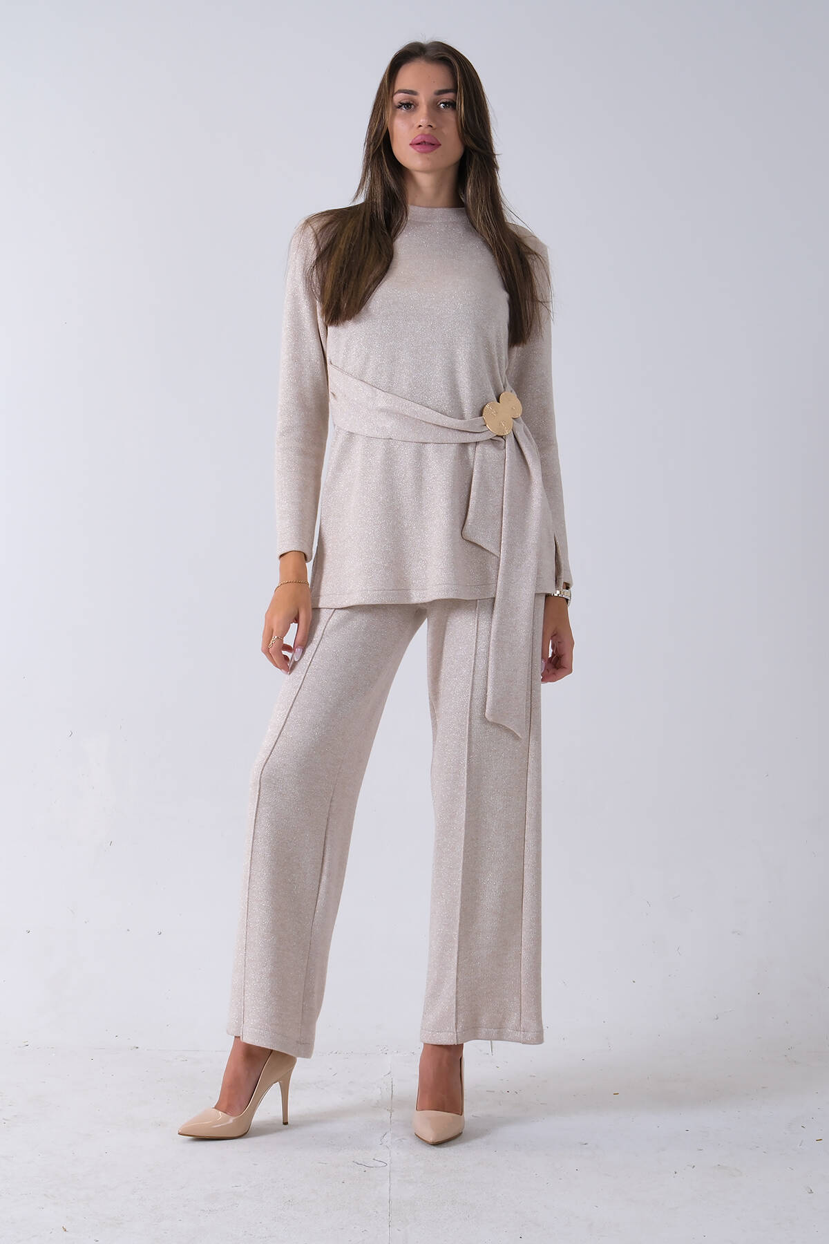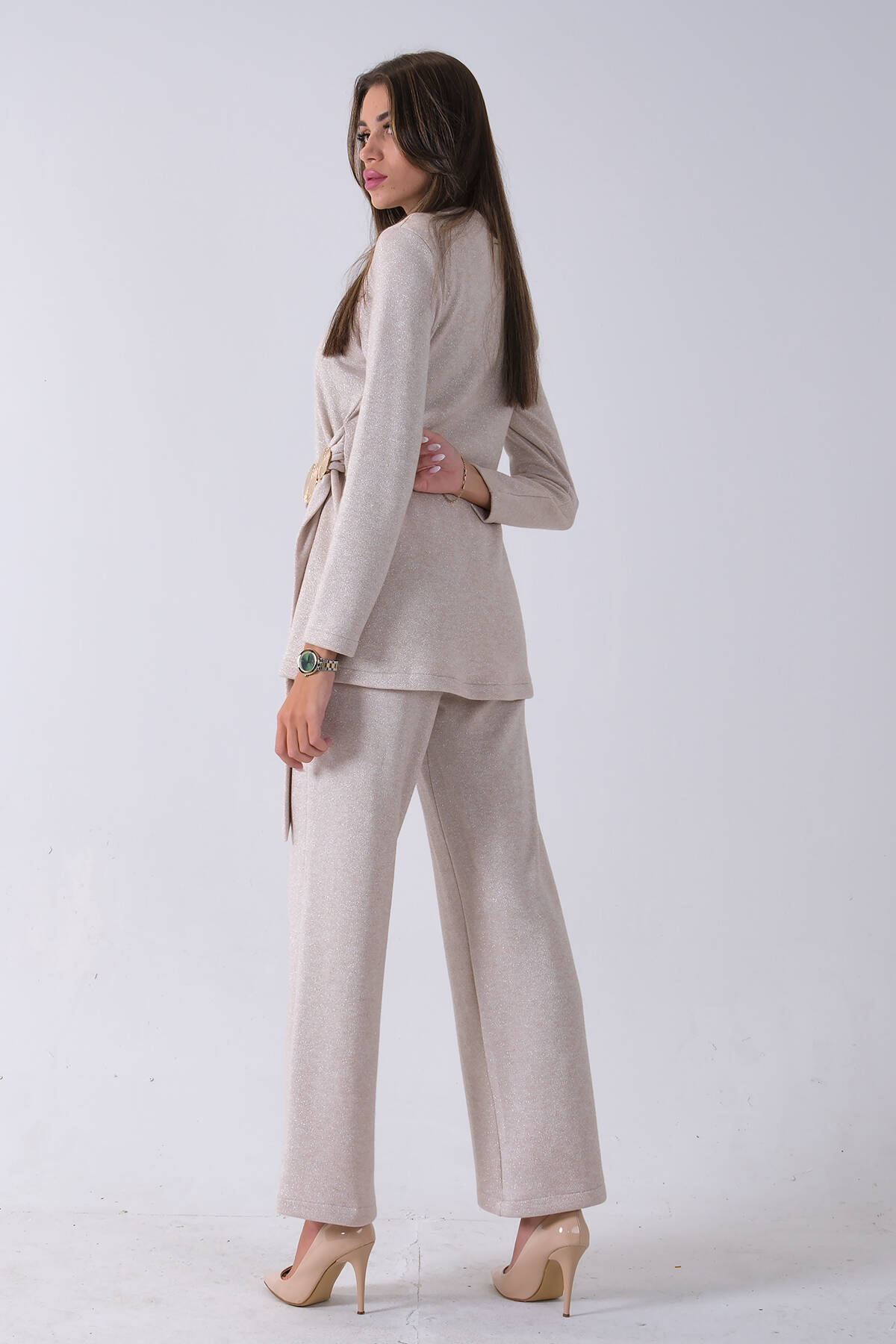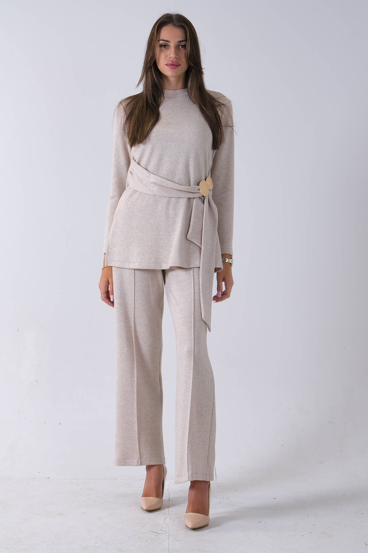 Ekru Altın Toka Detaylı Pantolonlu Takım 4577282.147