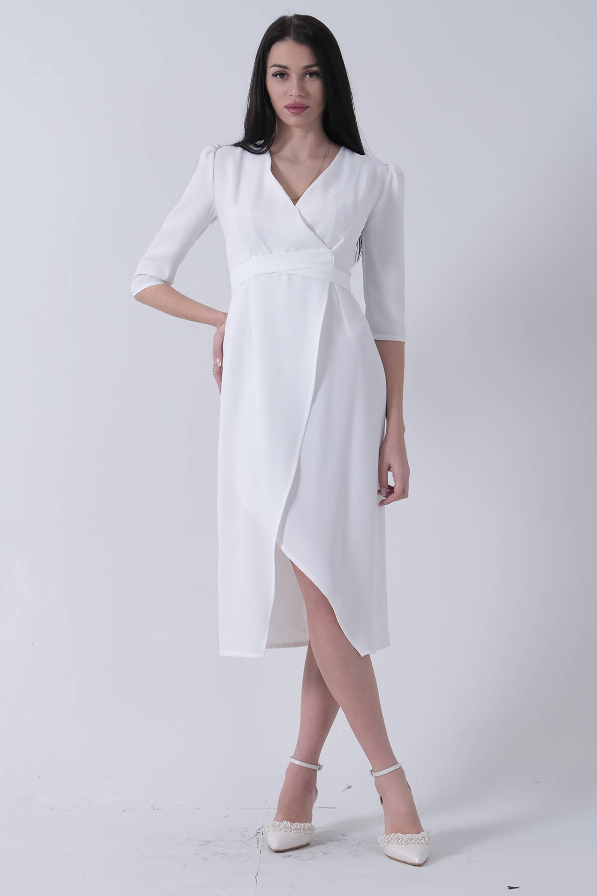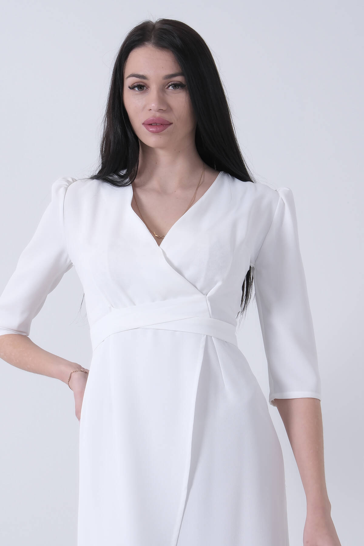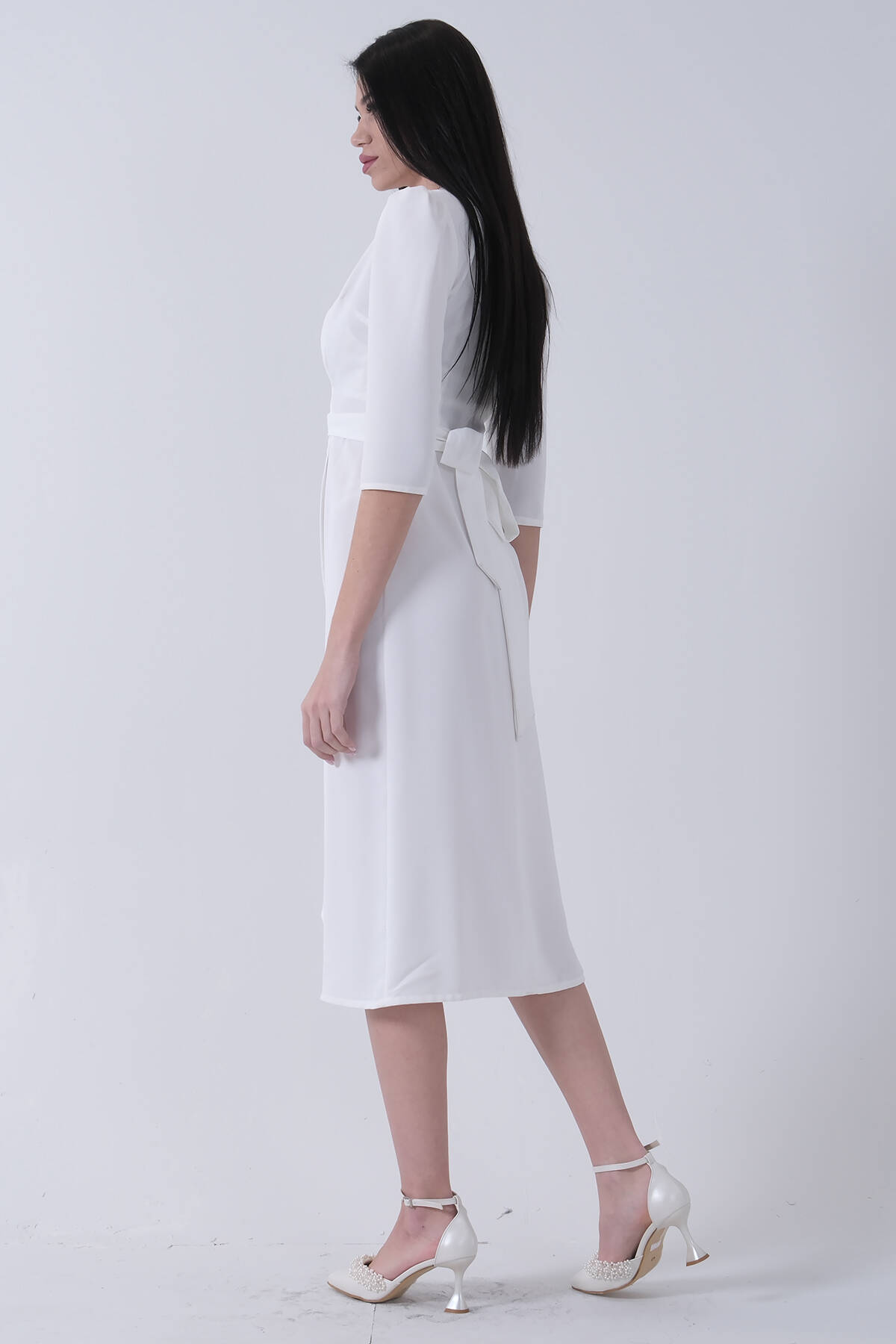 Ekru Kruvaze Yaka Midi Boy Krep Elbise 0104010.147