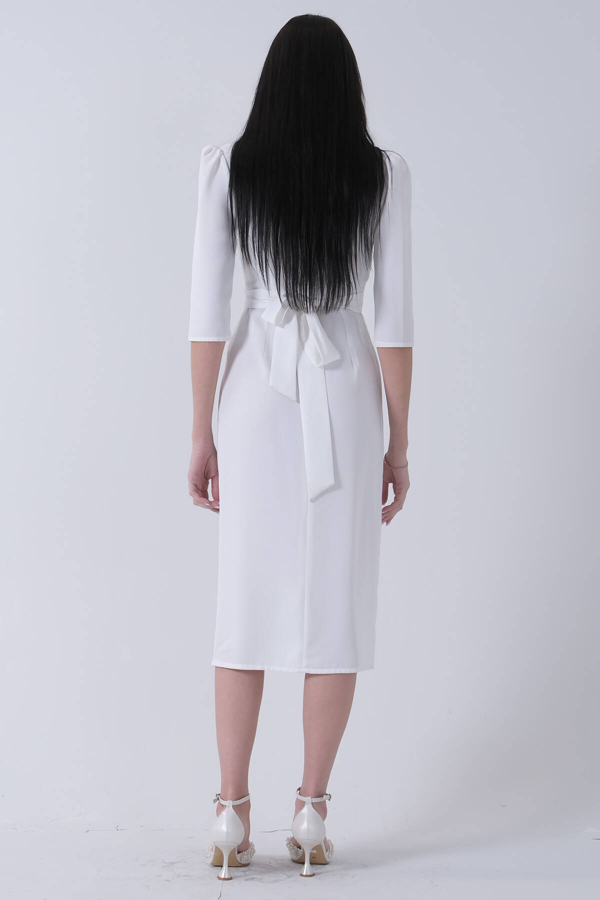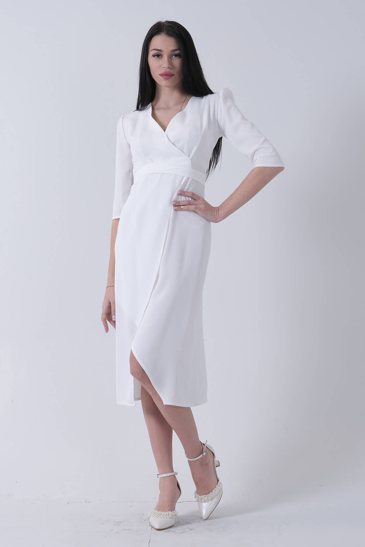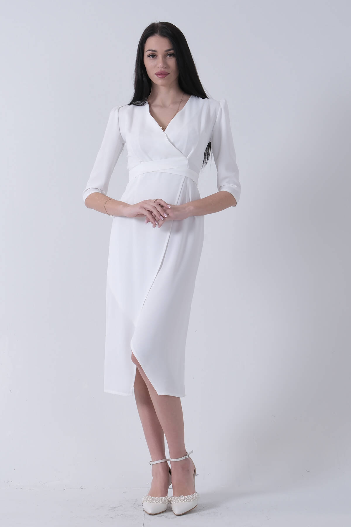 Ekru Kruvaze Yaka Midi Boy Krep Elbise 0104010.147