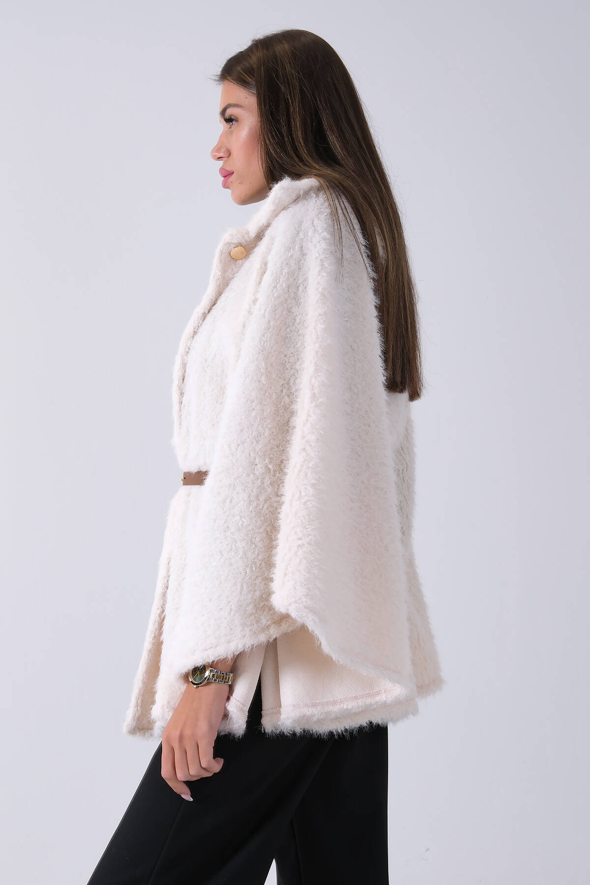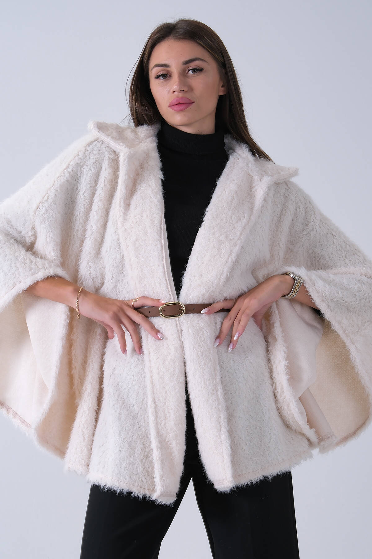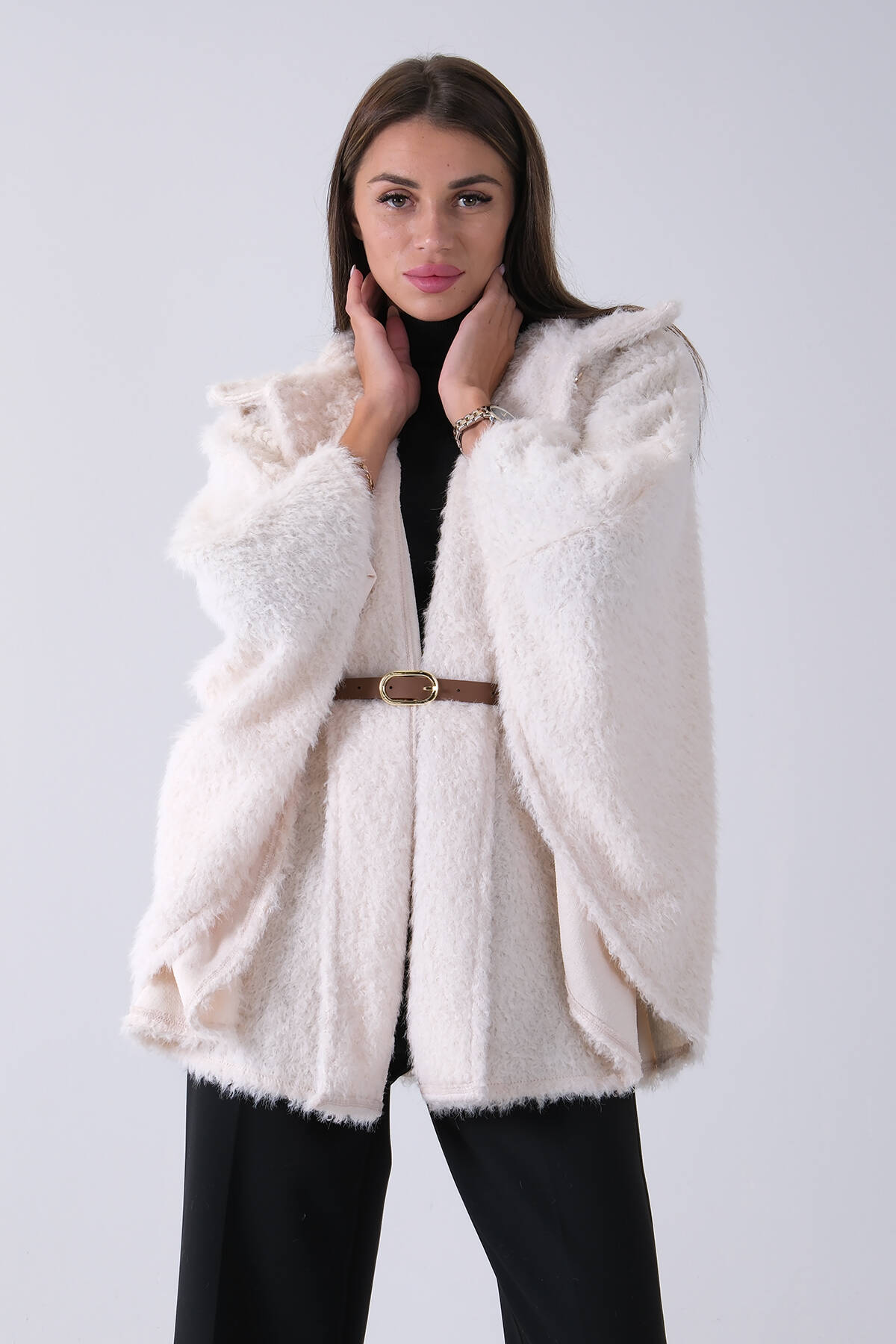 Ekru Tek Düğme Kapamalı Kemerli Yün Peluş Ceket 940140183.147