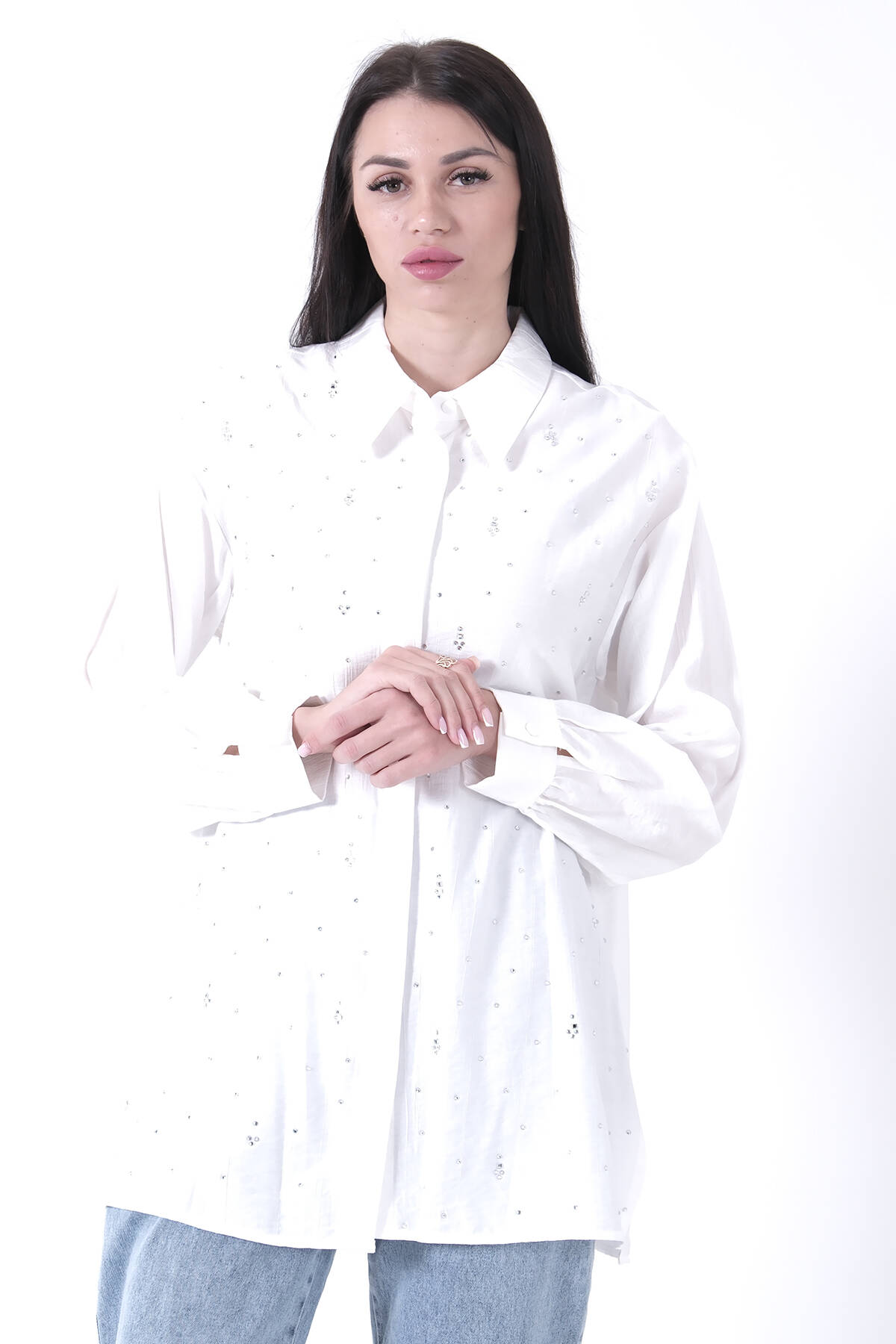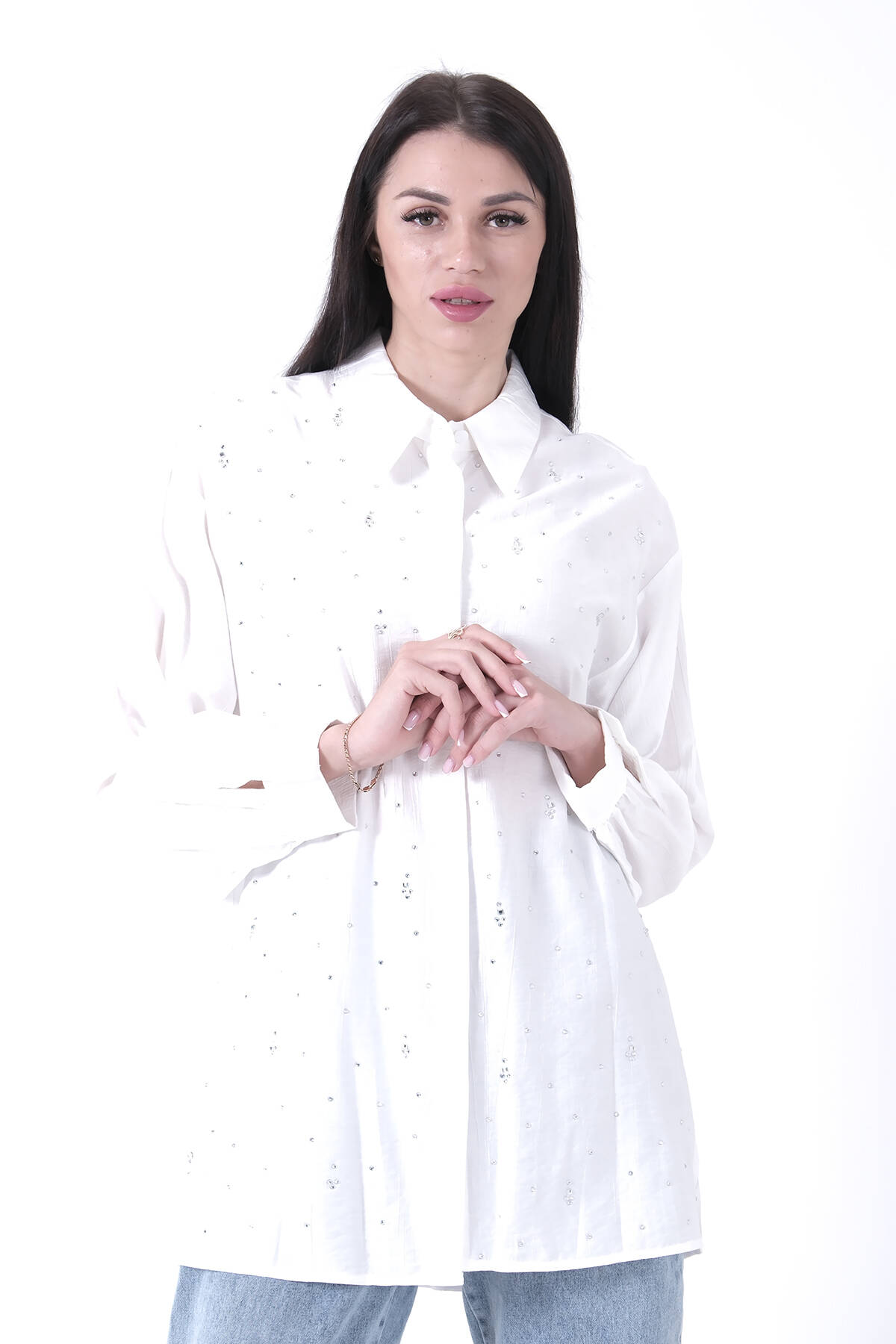 Ekru Üzeri Taş Detaylı Gizli Düğmeli Tunik 44510646.147