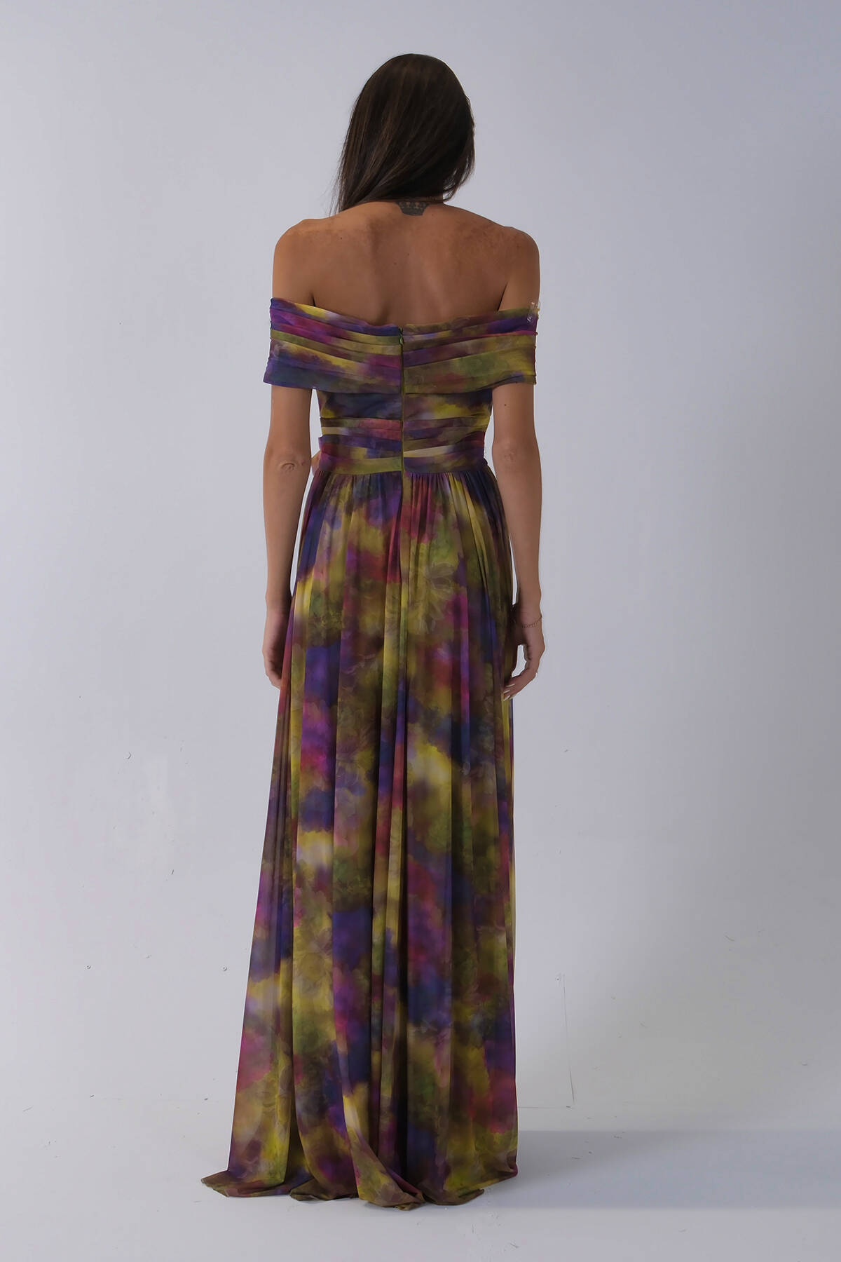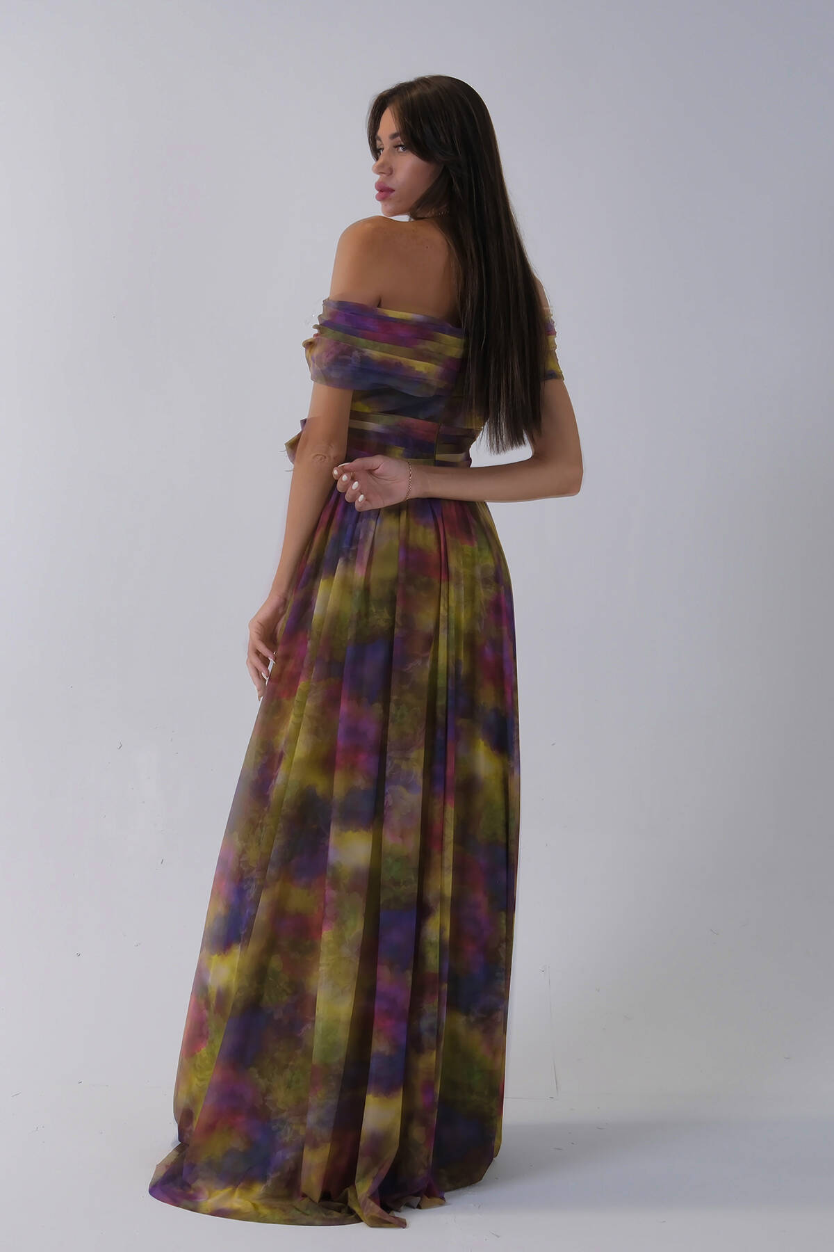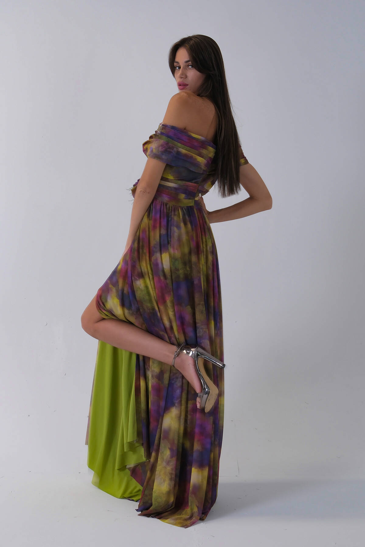Fıstık Beli Çiçek Detaylı Desenli Şifon Abiye 0801102.22