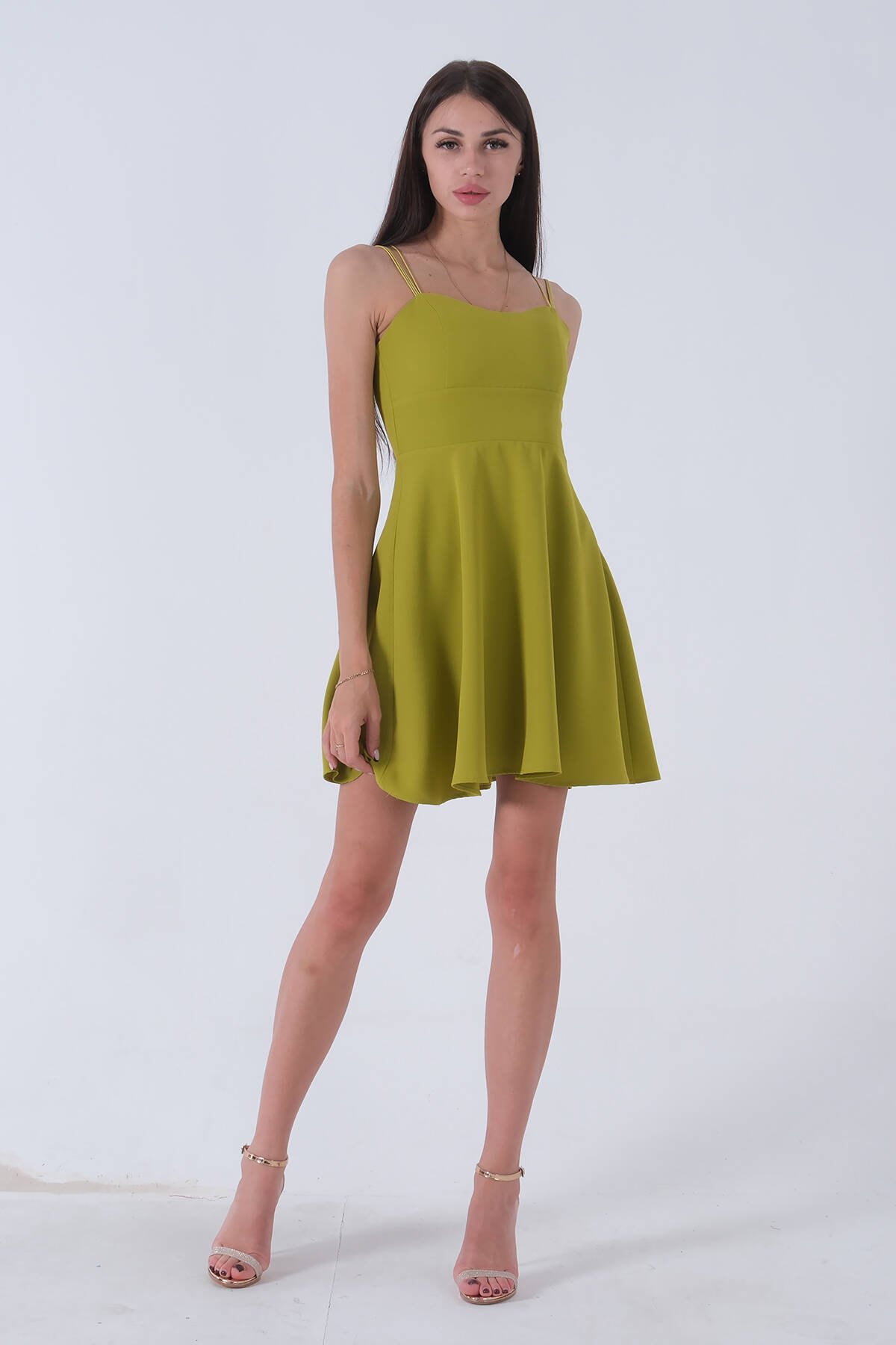 İnce Askılı Sırt Dekolteli V Yaka Kloş Siyah Abiye Elbise & Siyah Mezuniyet Elbisesi