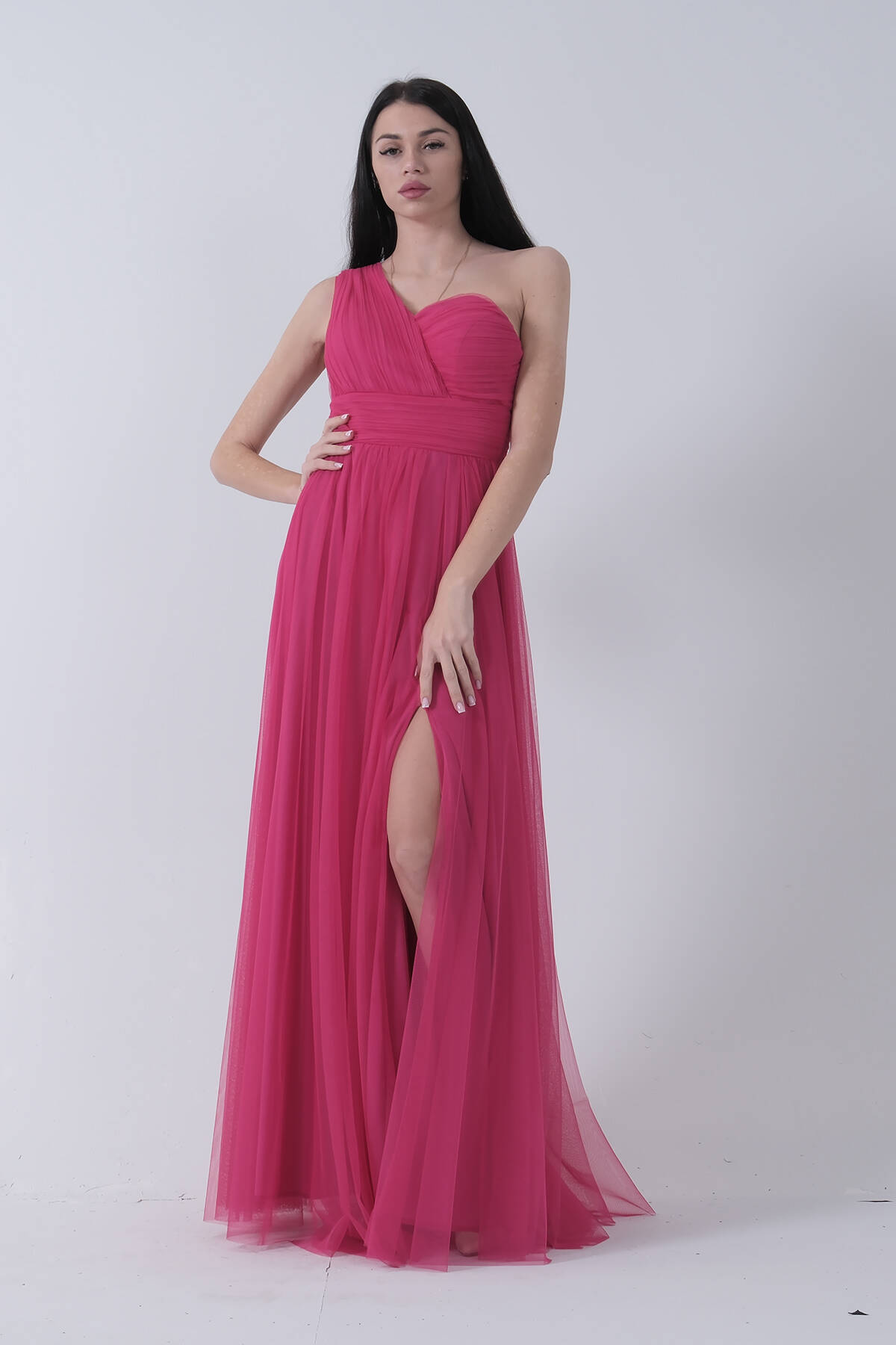 Fuşya Tek Omuz Yırtmaçlı Abiye 9705155.12