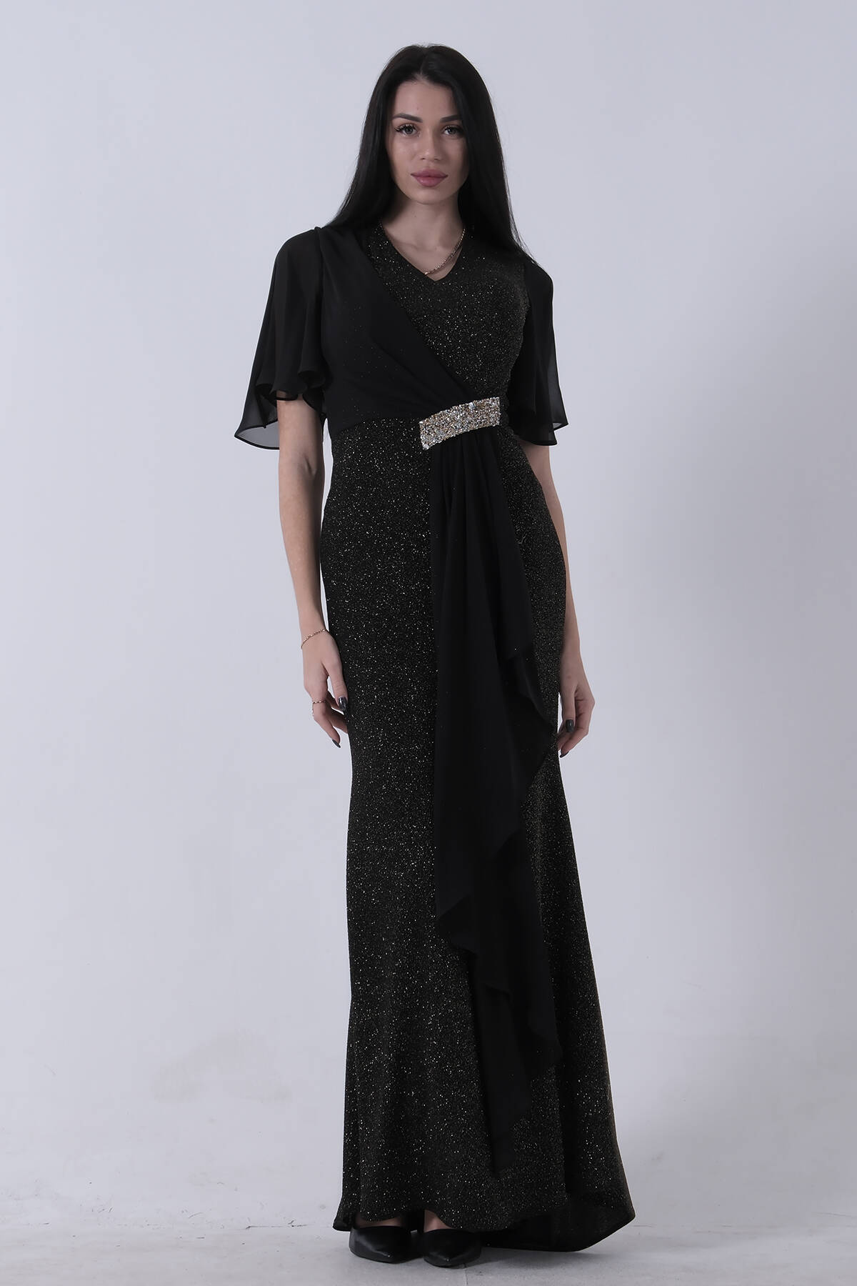 Siyah Bilek Ucu Tüylü Pul Payetli Tesettür Abiye 6502496.01