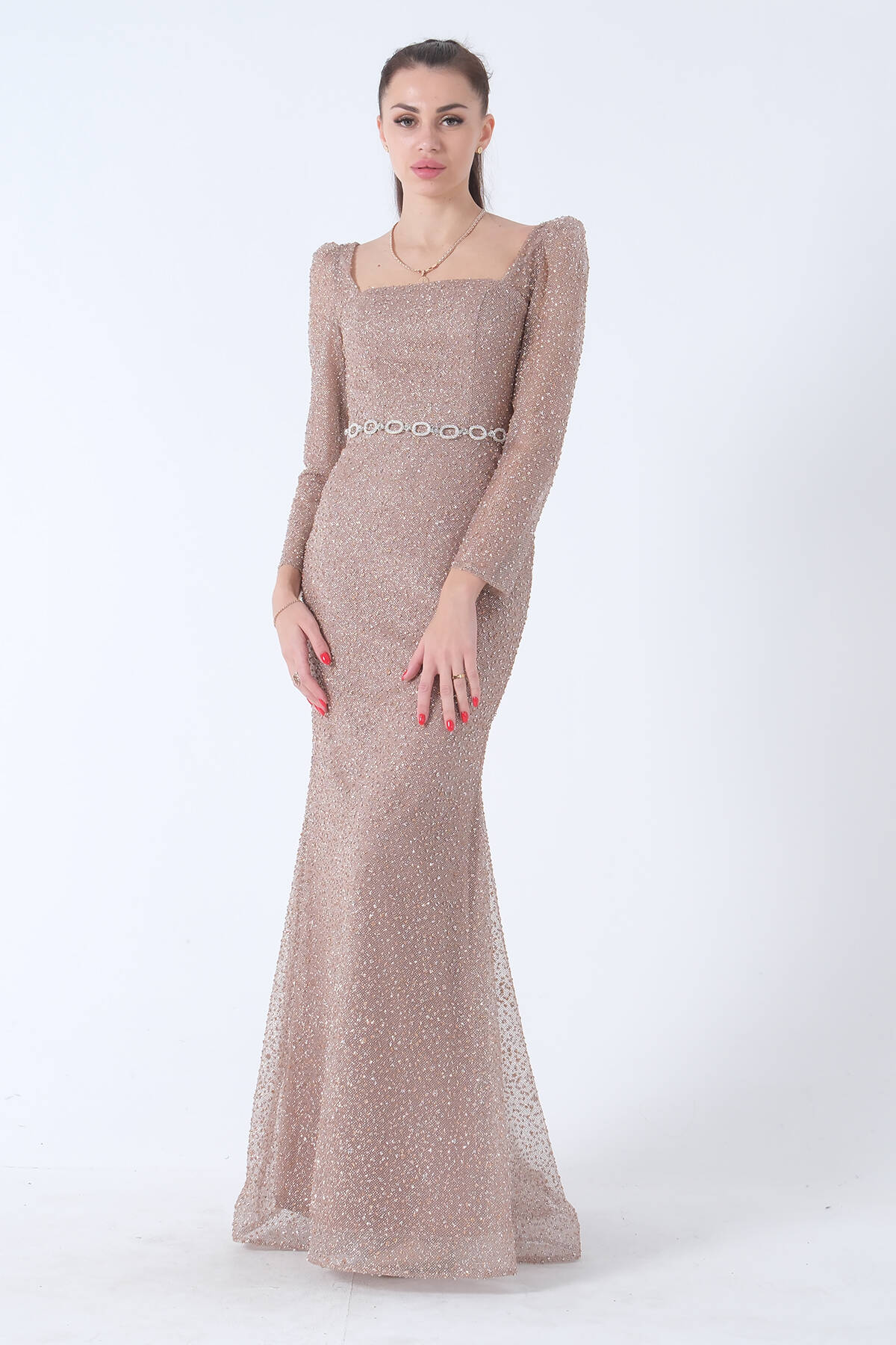 Gold Taş İşlemeli Balık Abiye Elbise 9705141.122