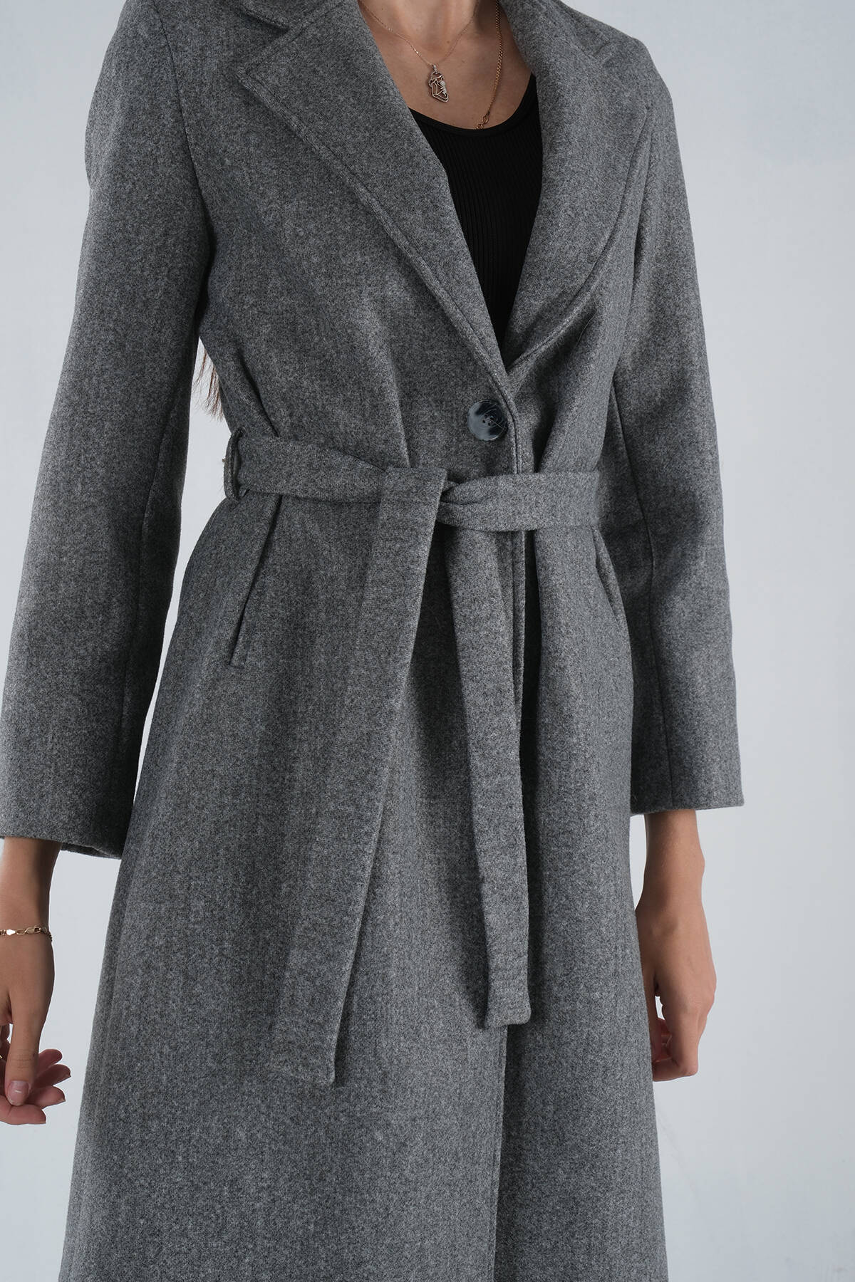 Modelin Ölçüleri : Boy: 1.75 cm / Göğüs: 87 cm / Bel: 66 cm /Basen : 94 cm Mankenin Üzerindeki Ürün 36/S Bedendir %100 Polyester Uzun Kol Kruvaze Yaka Tek Düğmeli Seyyar Kuşaklı Astarlı Çift Cepli Kaşe Kaban Modeli Ürün Boyu: 118 cm Stüdyo Çekimlerinde Renkler Işık Farklılıgından Dolayı Değişiklik Gösterebilir.