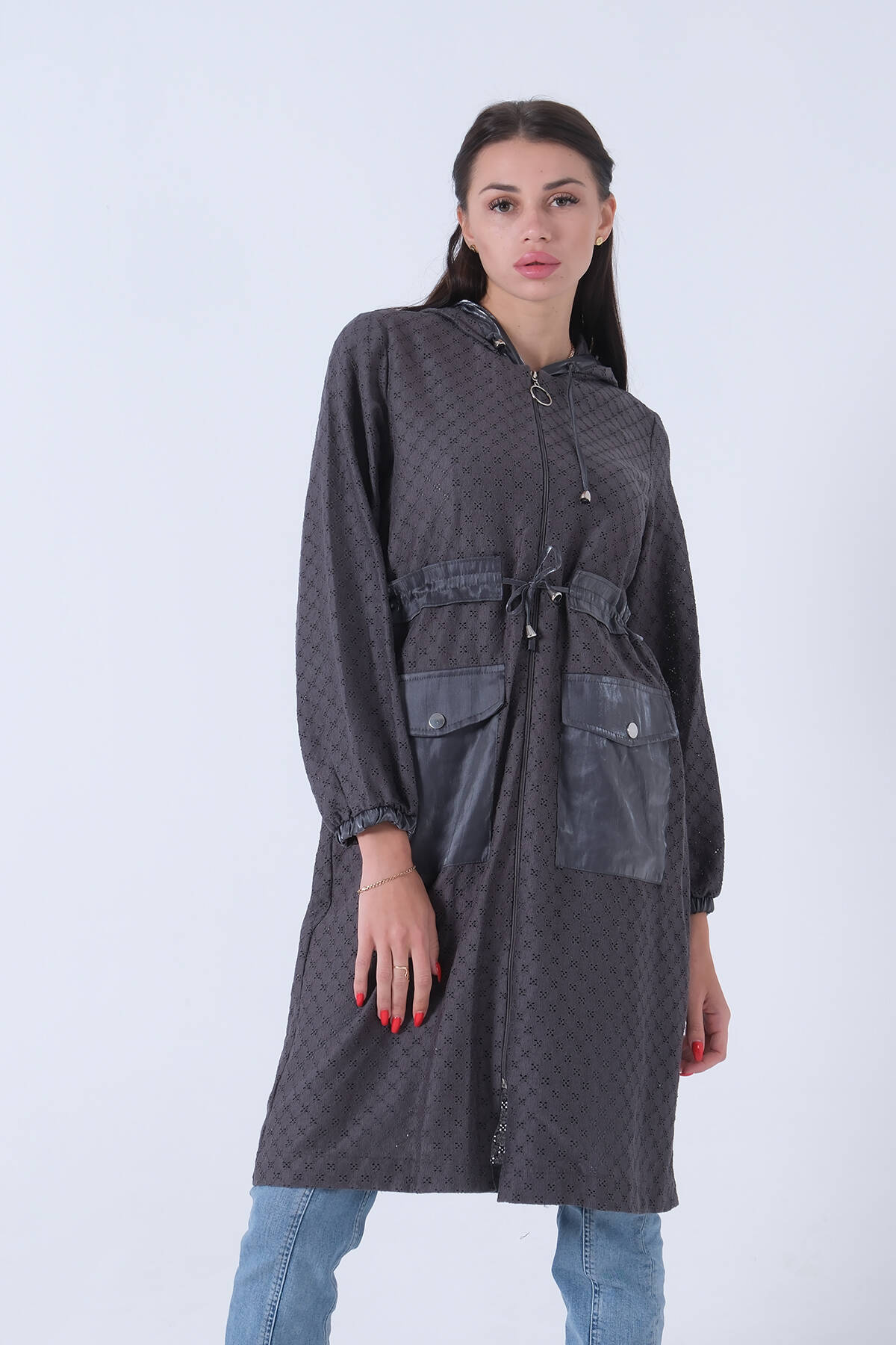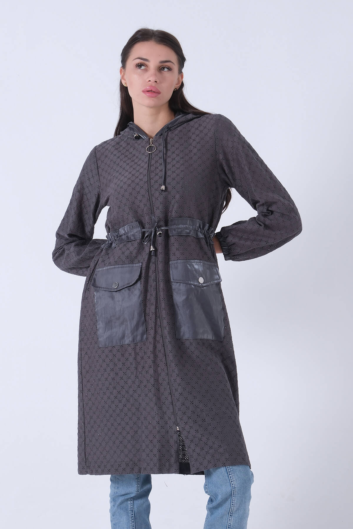 Gri Kanguru Cep Detaylı Bilek Lastikli Kapüşonlu Kap 0809026.06