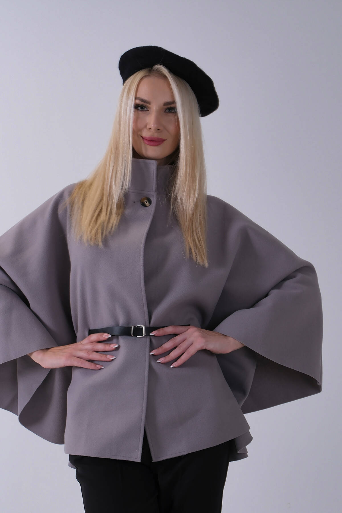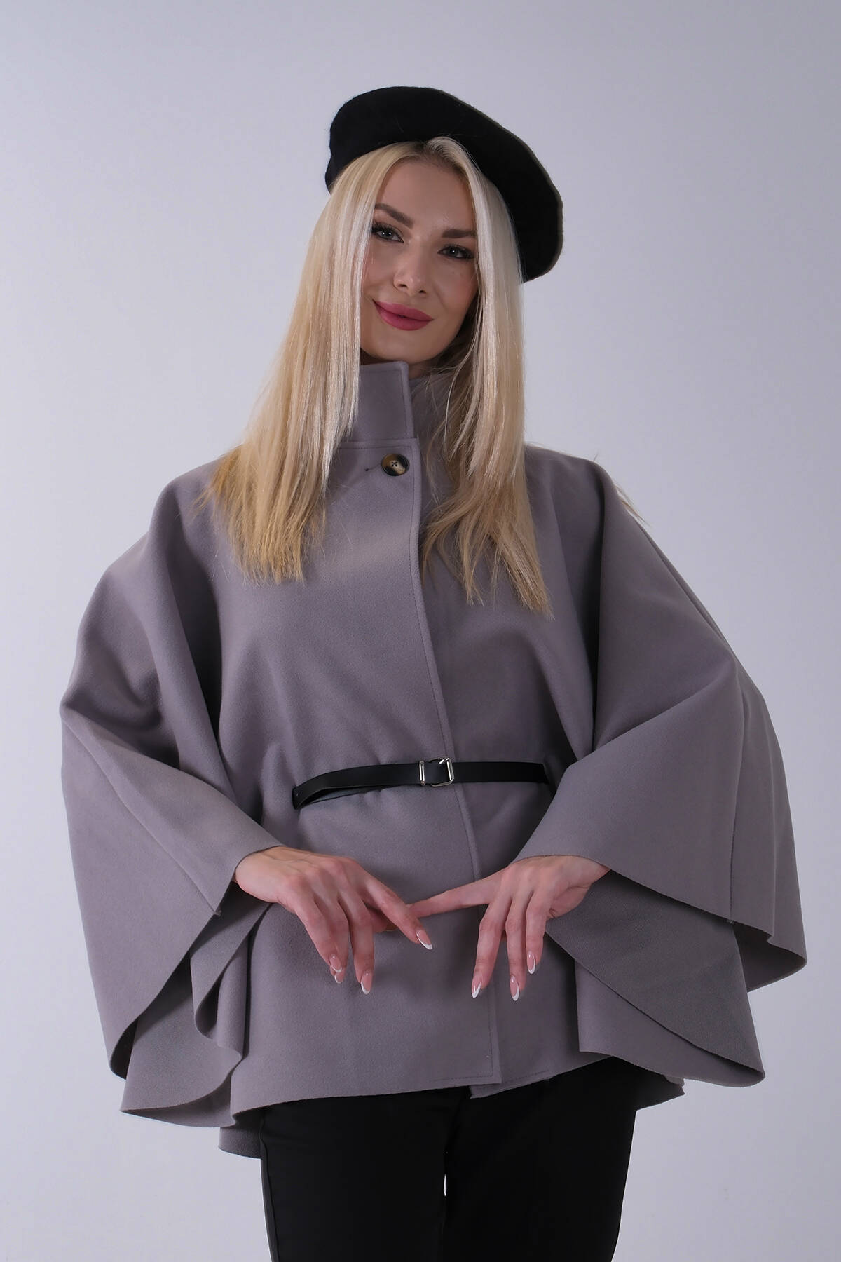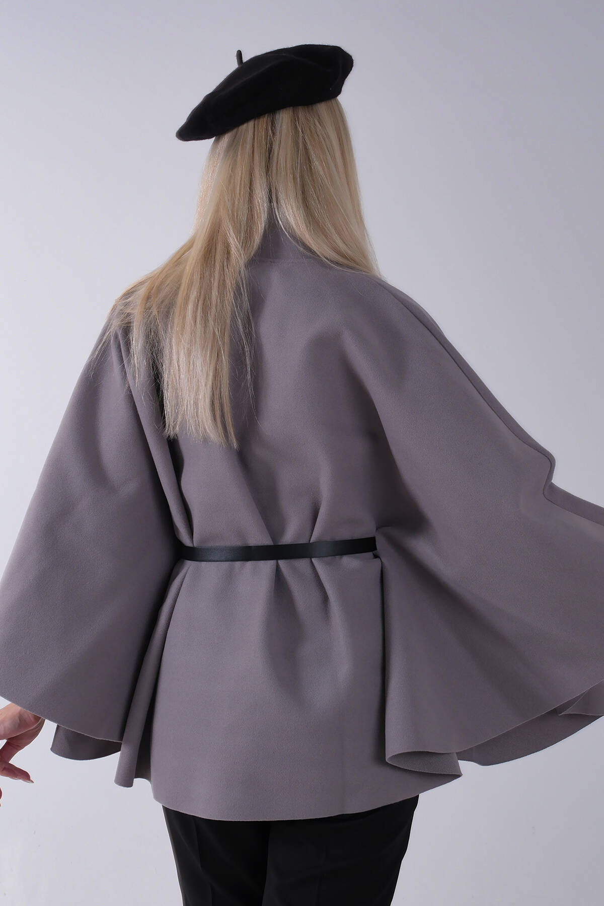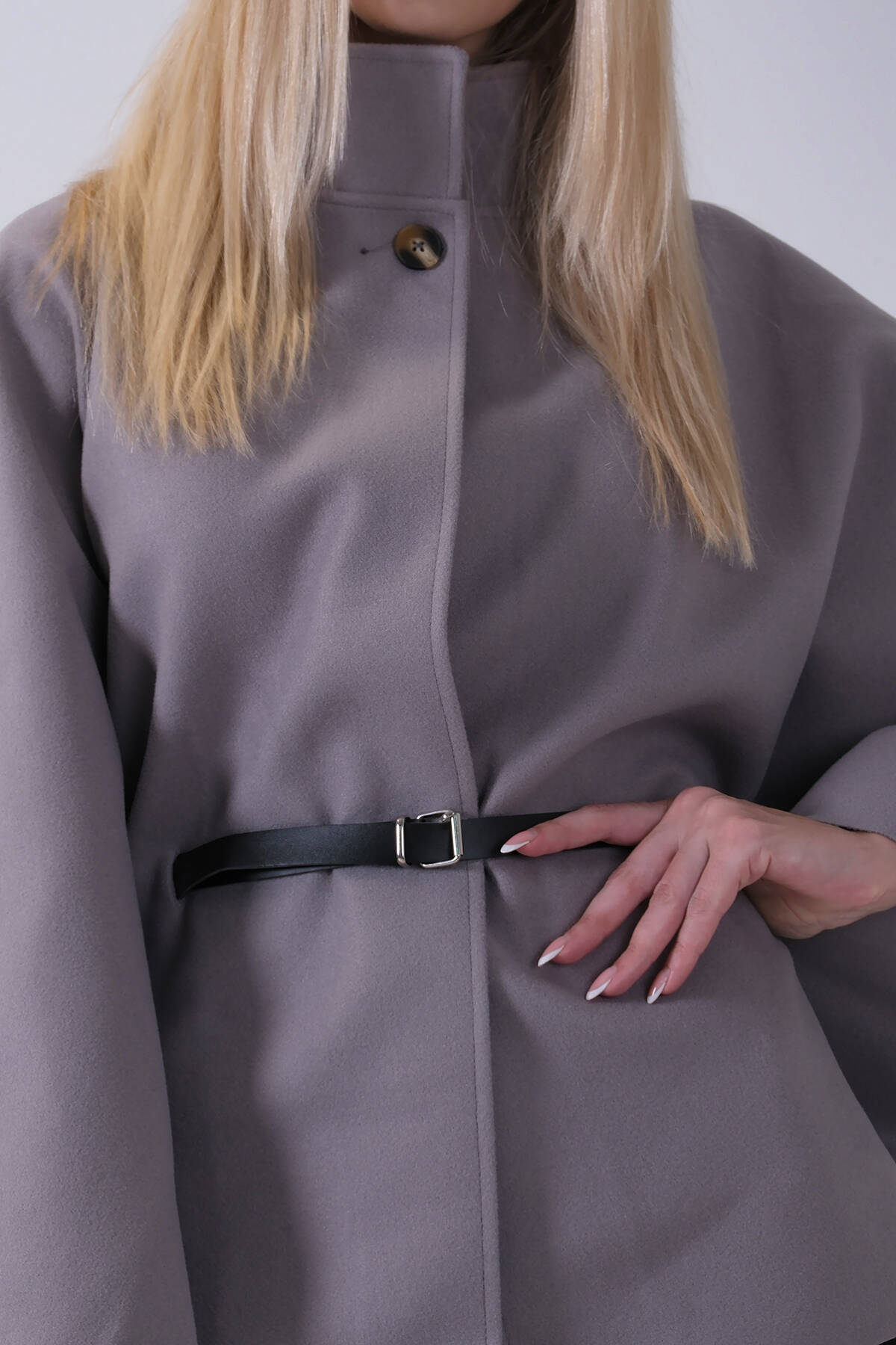 Gri Önü Tek Düğme Kapamalı Kemer Detaylı Panço 47122713.06