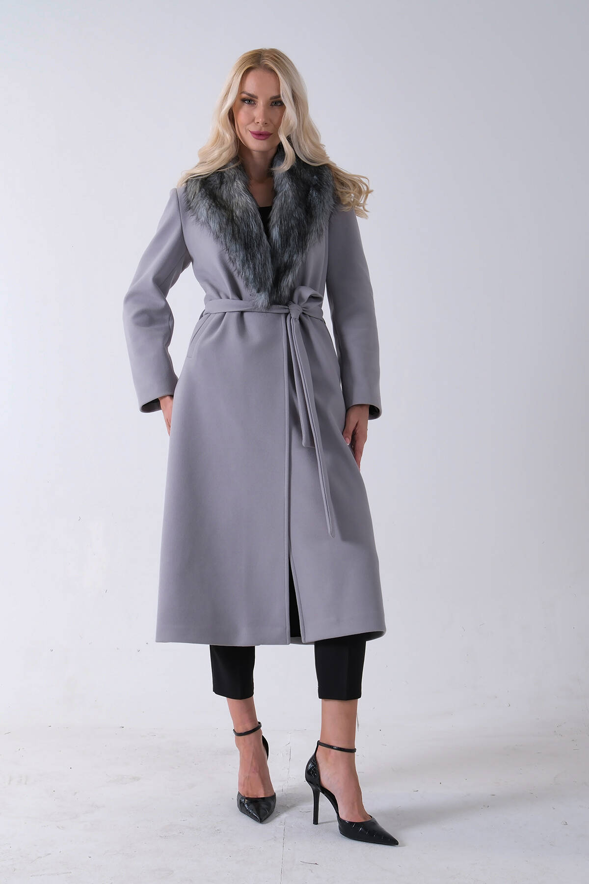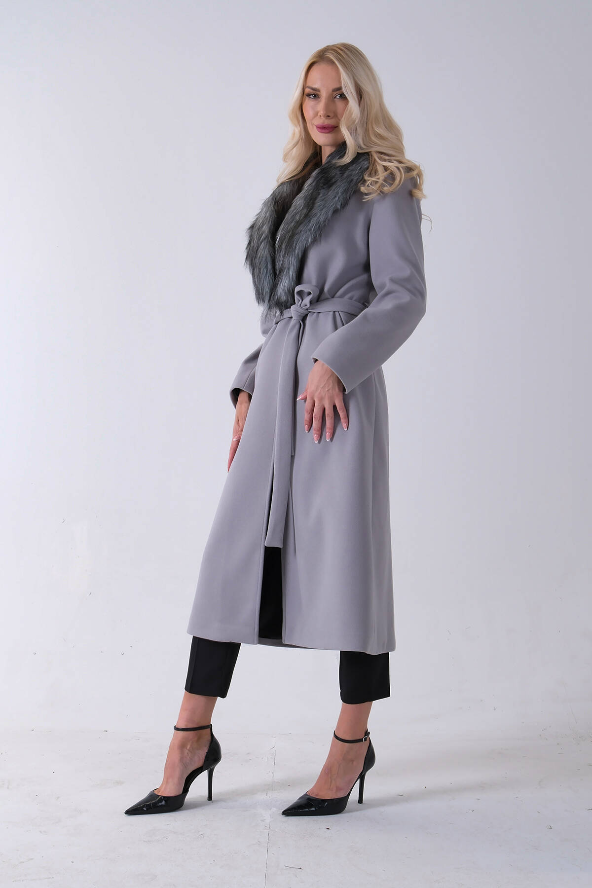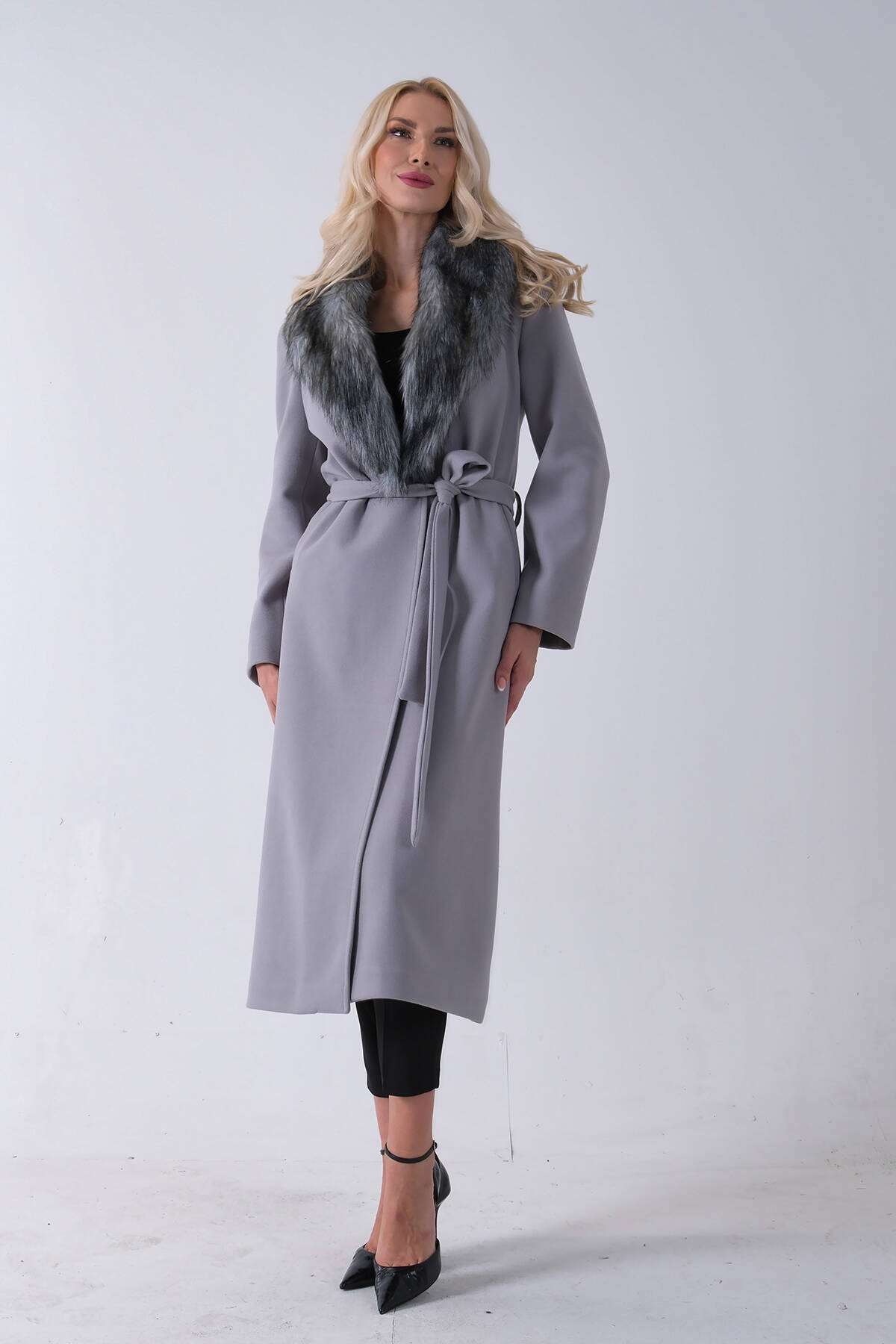 Gri Seyyar Kürklü Astarlı Kaşe Kaban 0108070.06