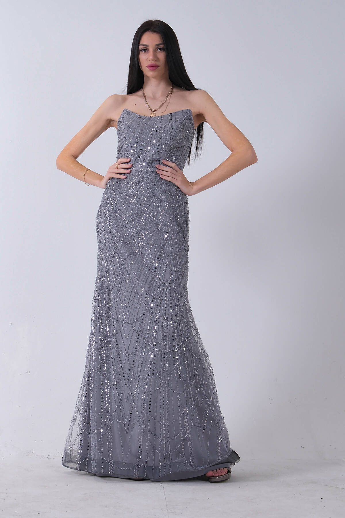 Gri Taş İşlemeli Uzun Balık Abiye 0801056.06