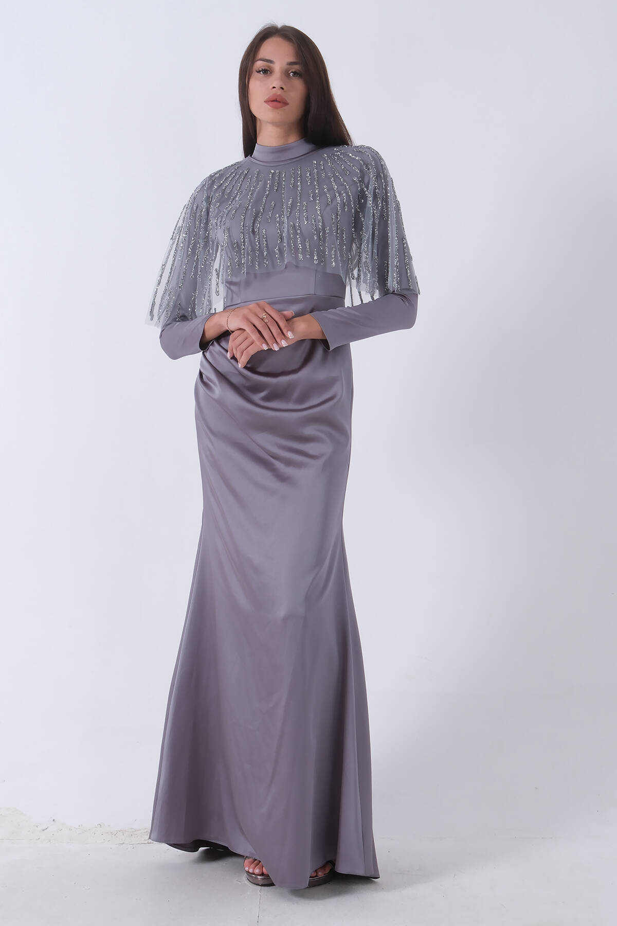 Gold Drapeli Payet Üst Detaylı Eteği Saten Tesettür Abiye 6502504.122