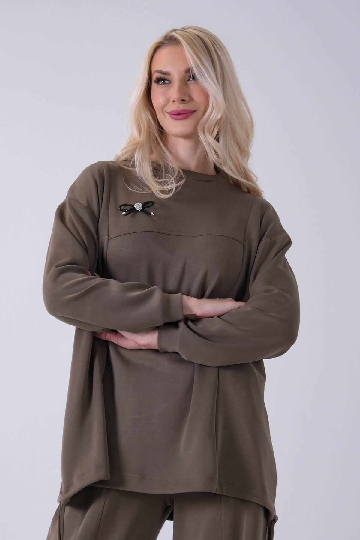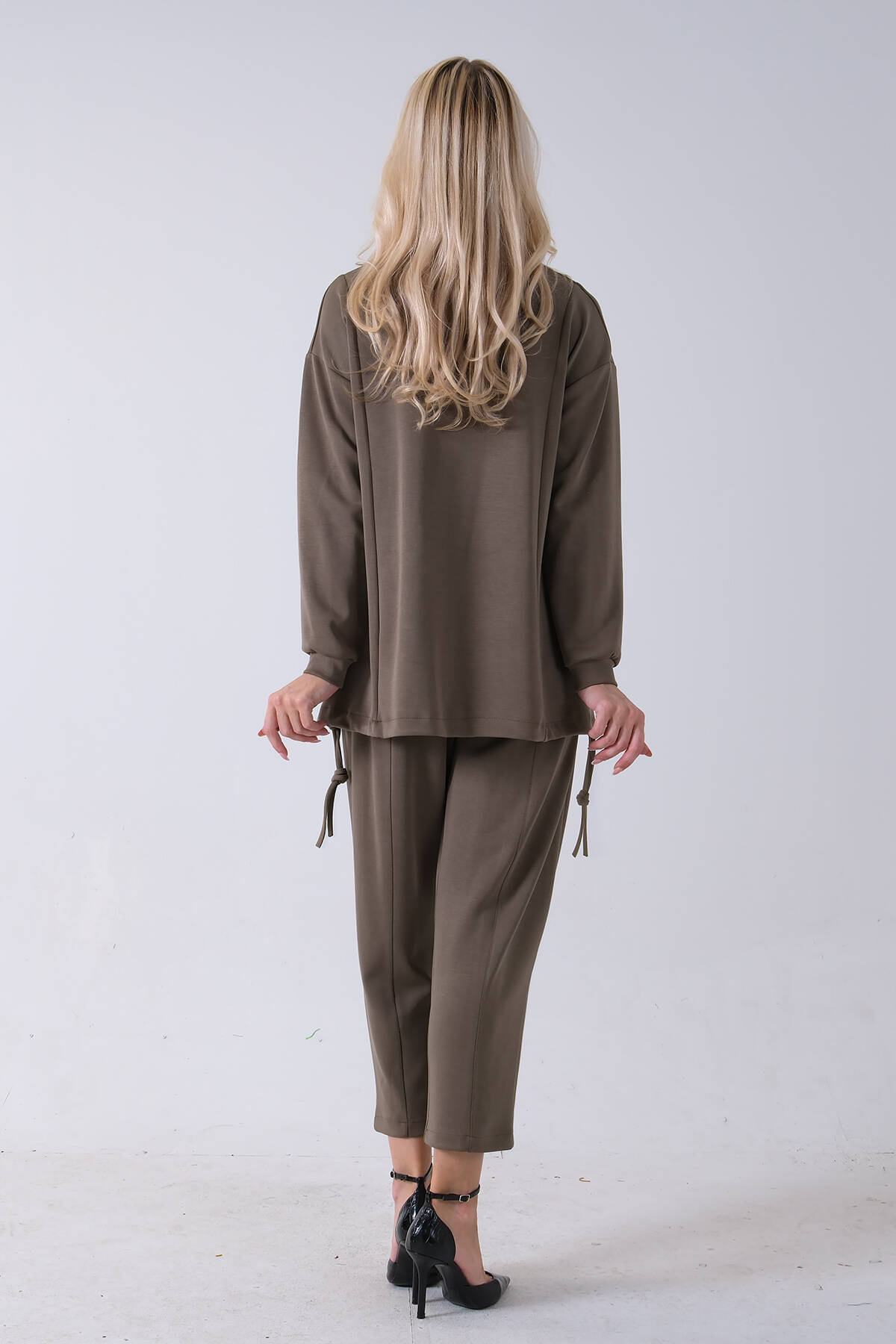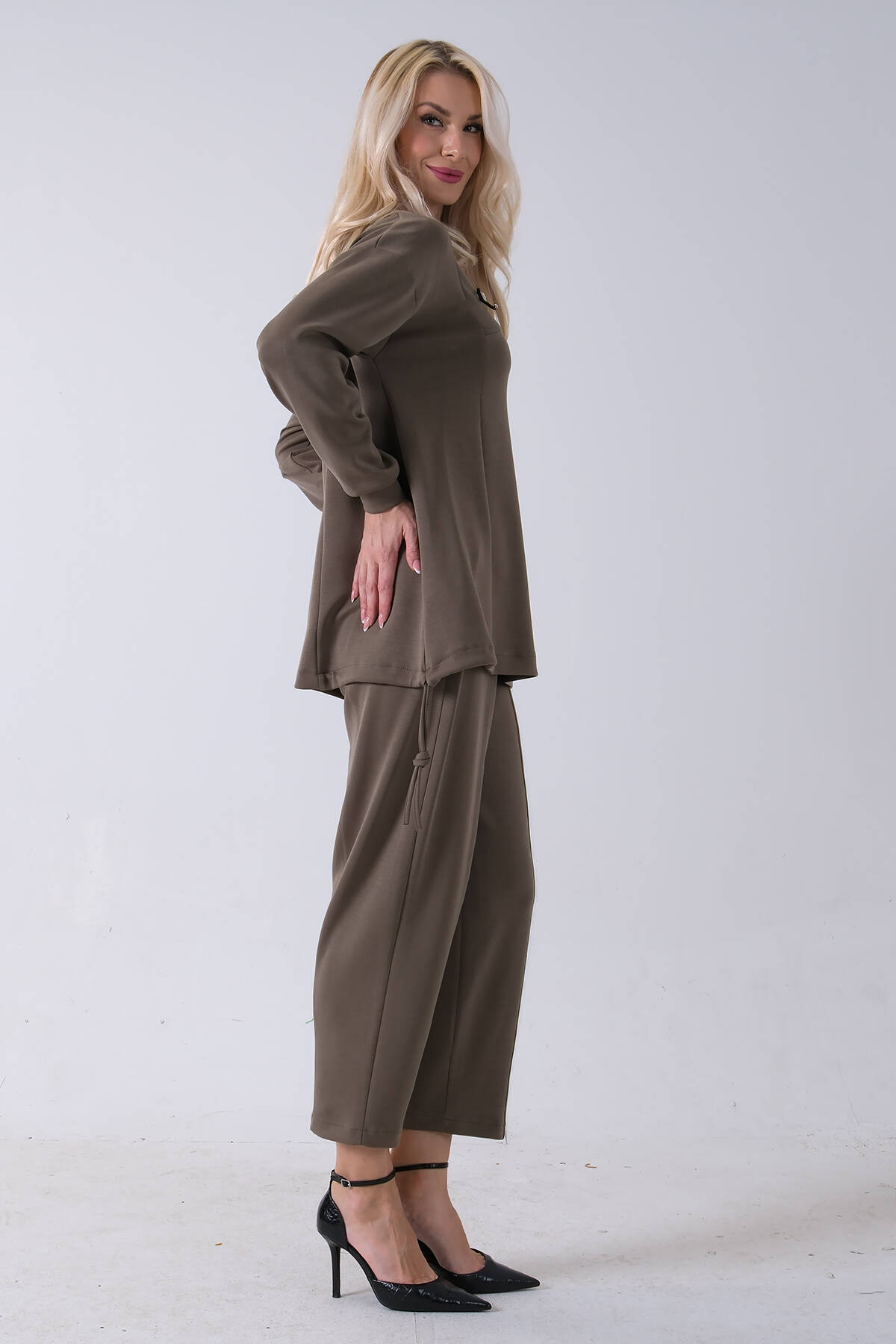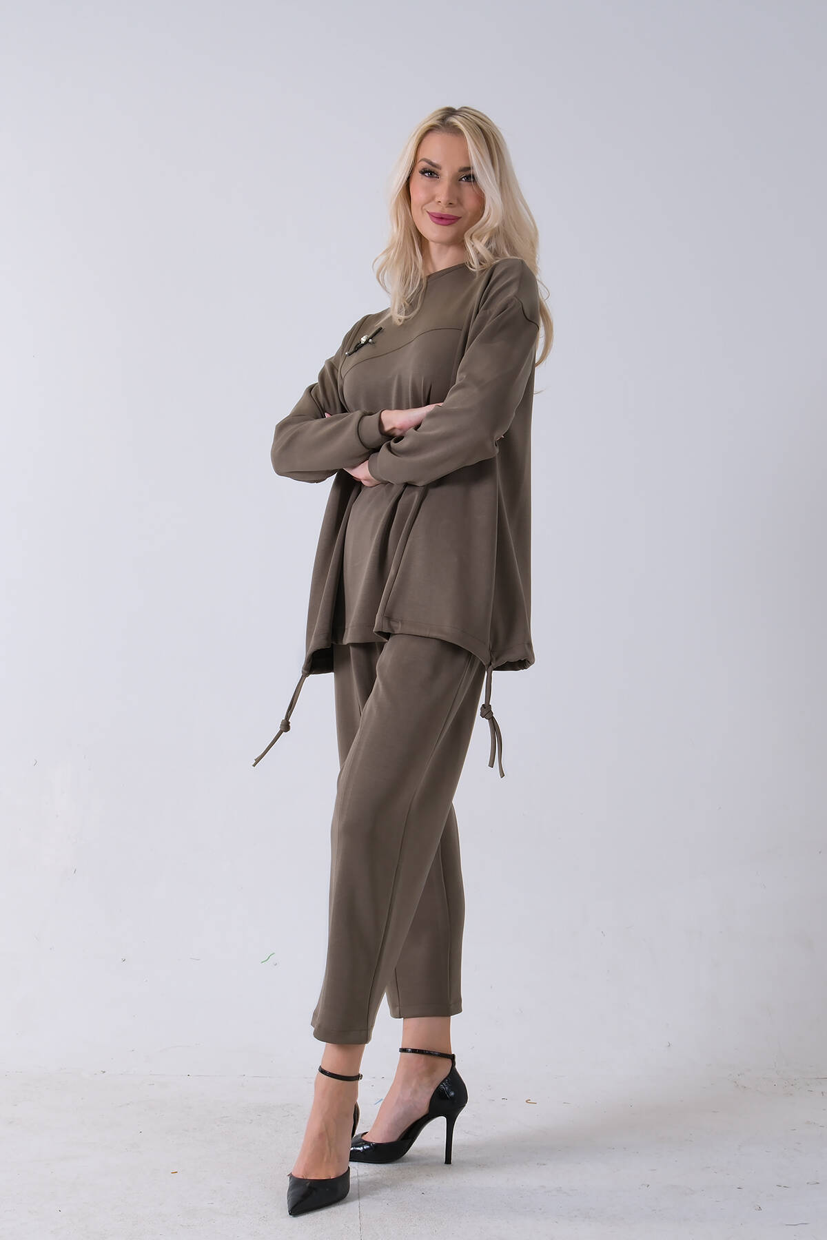 Haki Bisiklet Yaka Tunik Pantolonlu Takım 4577261.23
