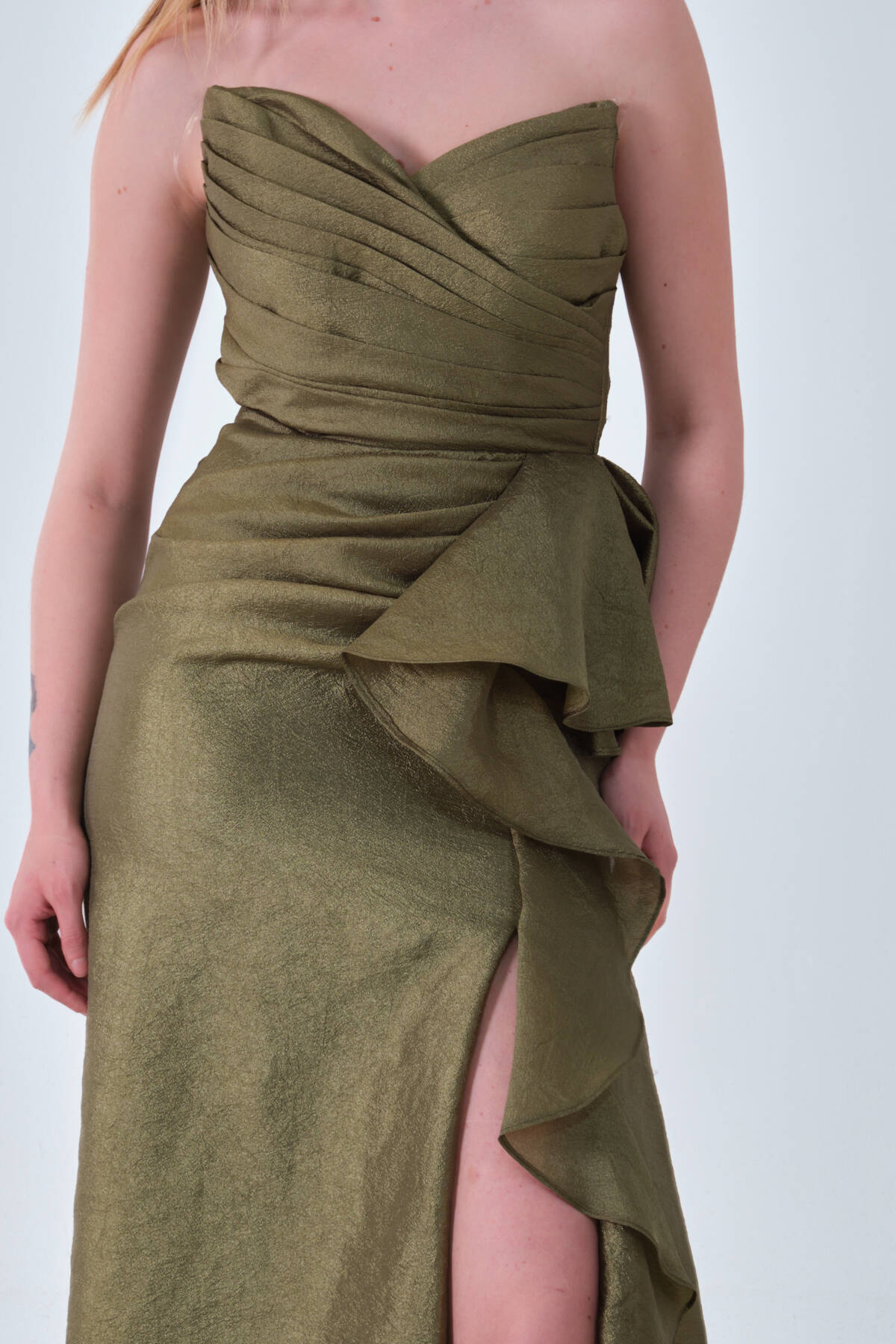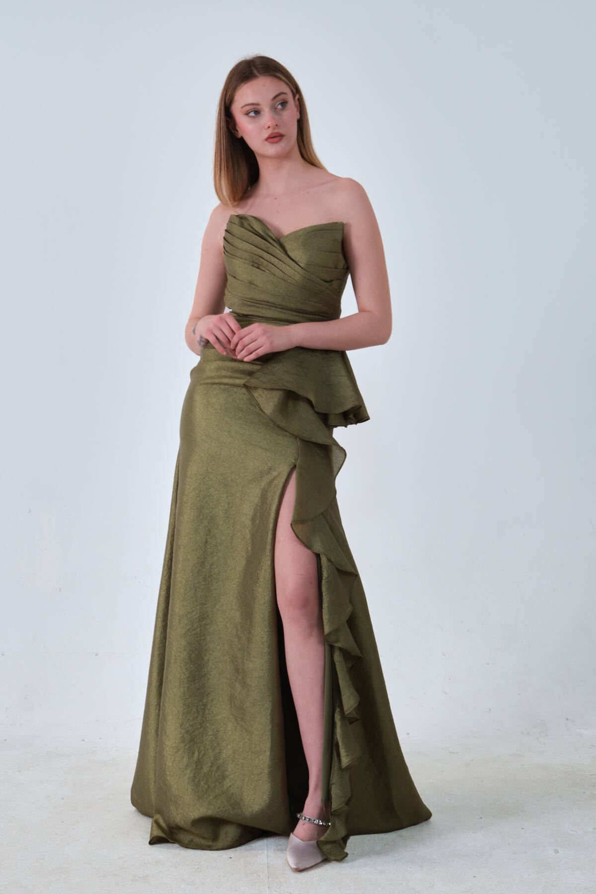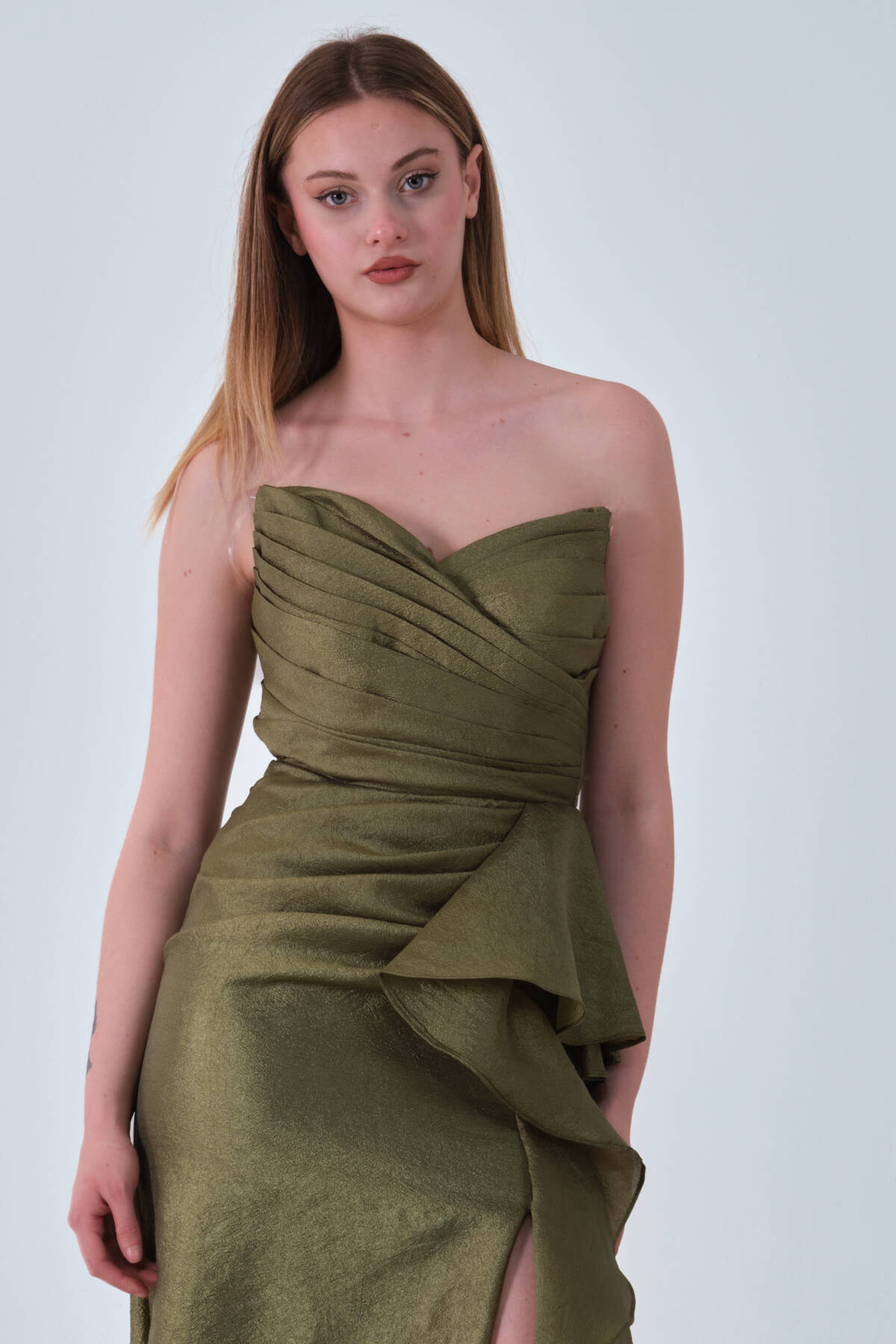 Haki Önü Fırfırlı Straplez Abiye 0801184.23
