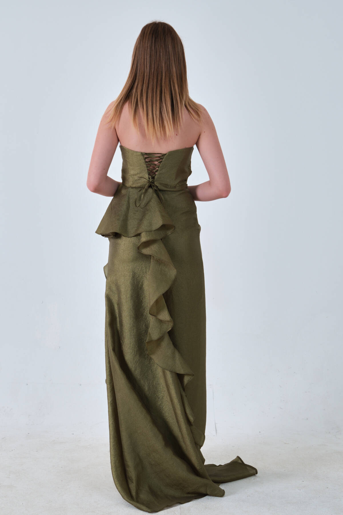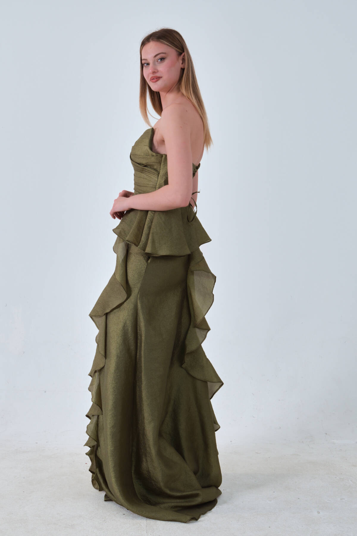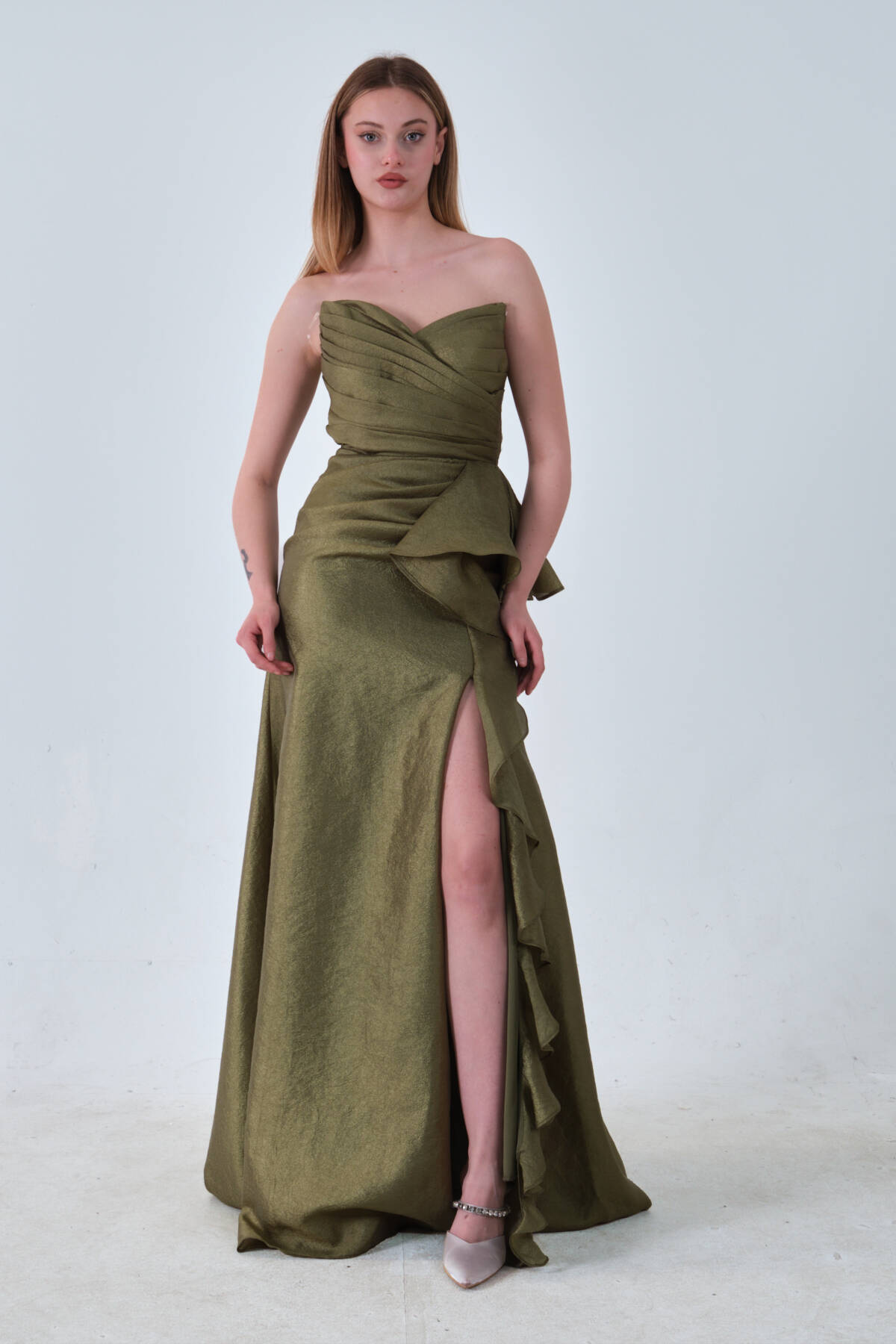 Haki Önü Fırfırlı Straplez Abiye 0801184.23
