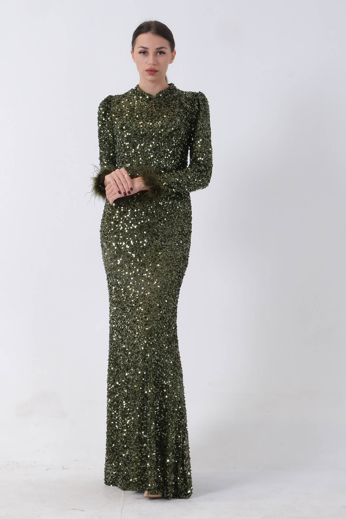 Zümrüt Bilek Ucu Tüylü Pul Payetli Tesettür Abiye 6502496.123