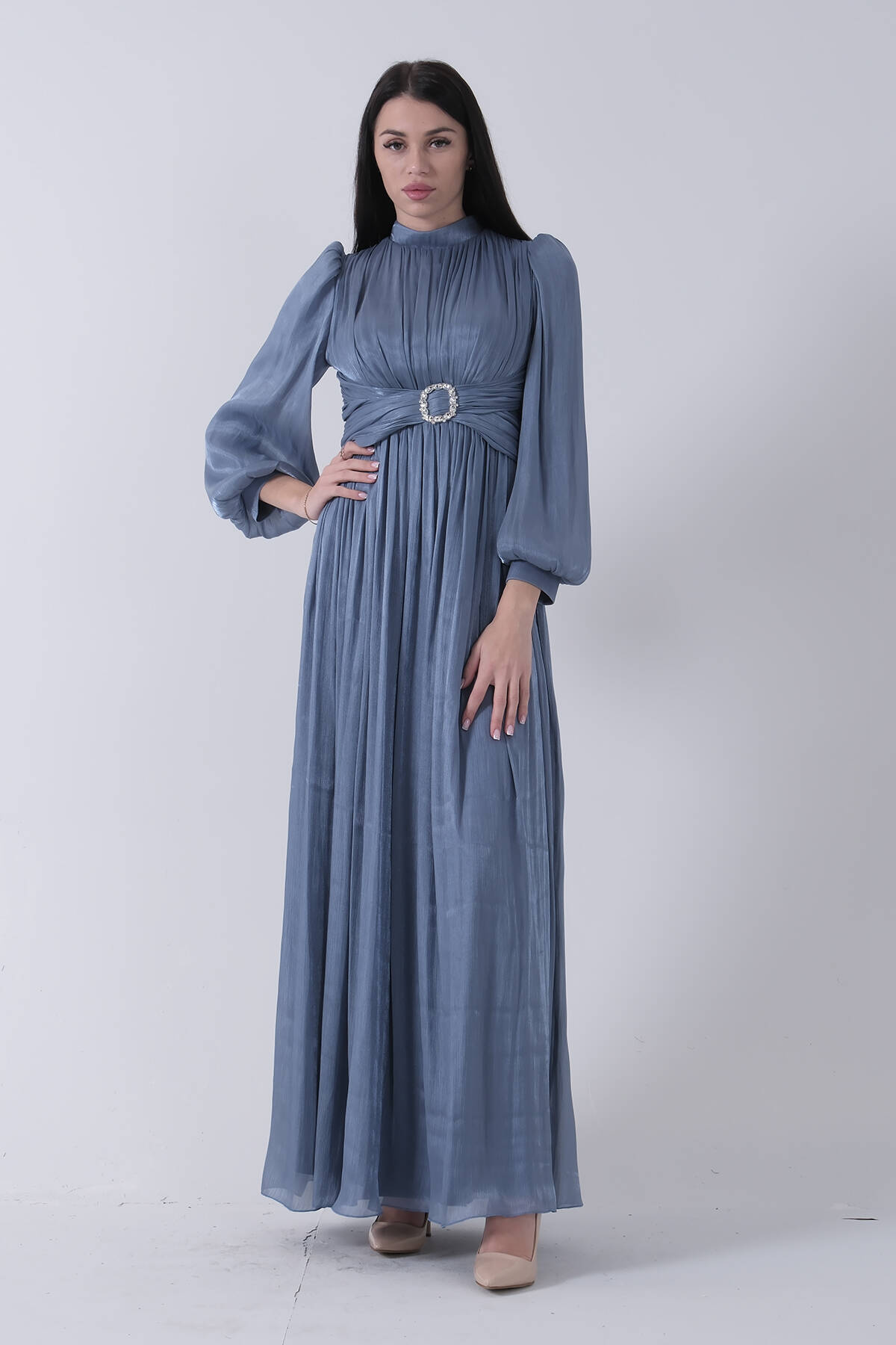 İndigo Beli Toka Aksesuarlı Bisiklet Yaka Tesettür Abiye 6502493.98