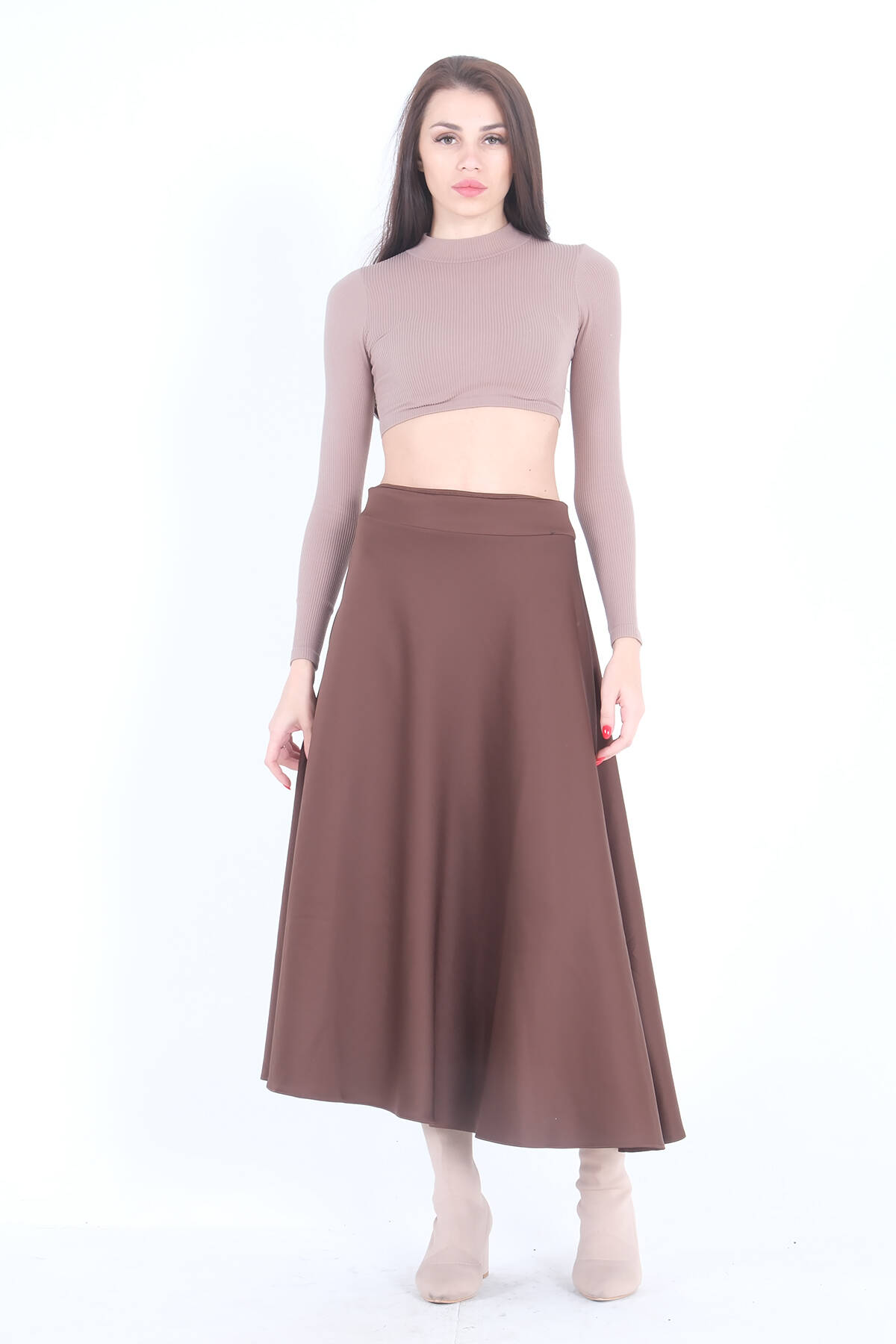 Kahve Bel Lastikli Saten Etek 3979463.05