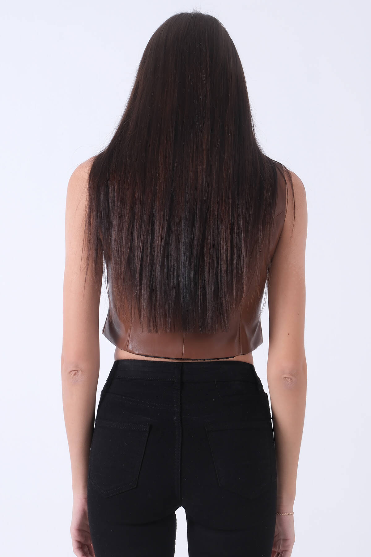 Kahve Düğmeli Crop Deri Yelek 0103001.05