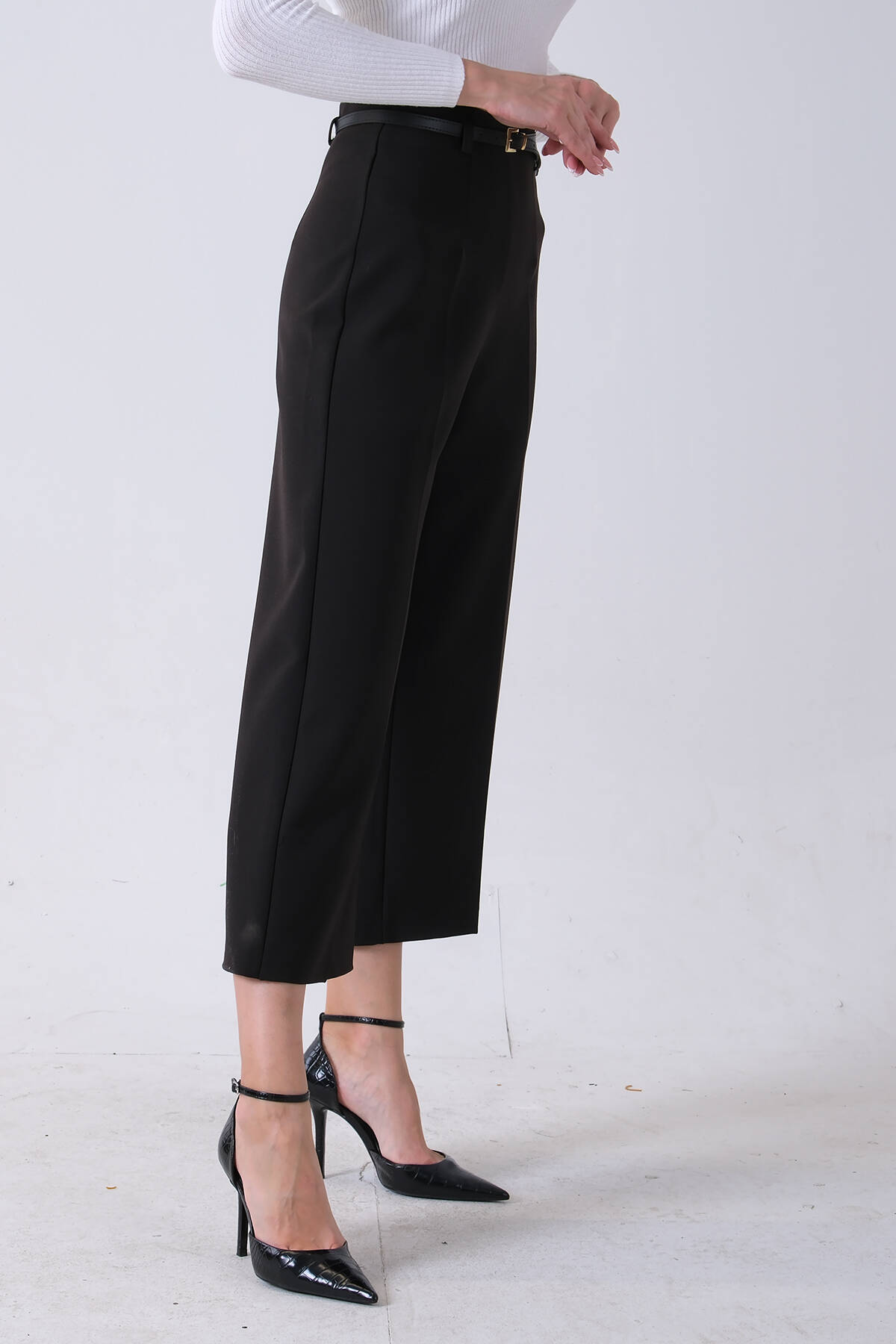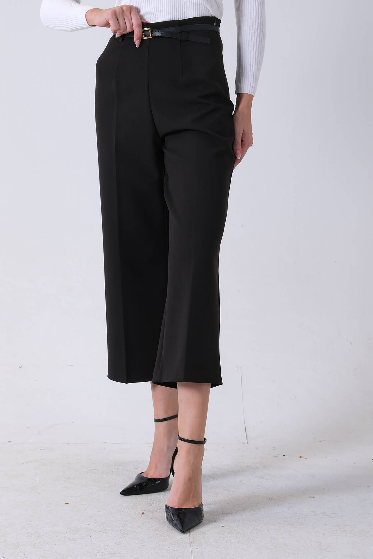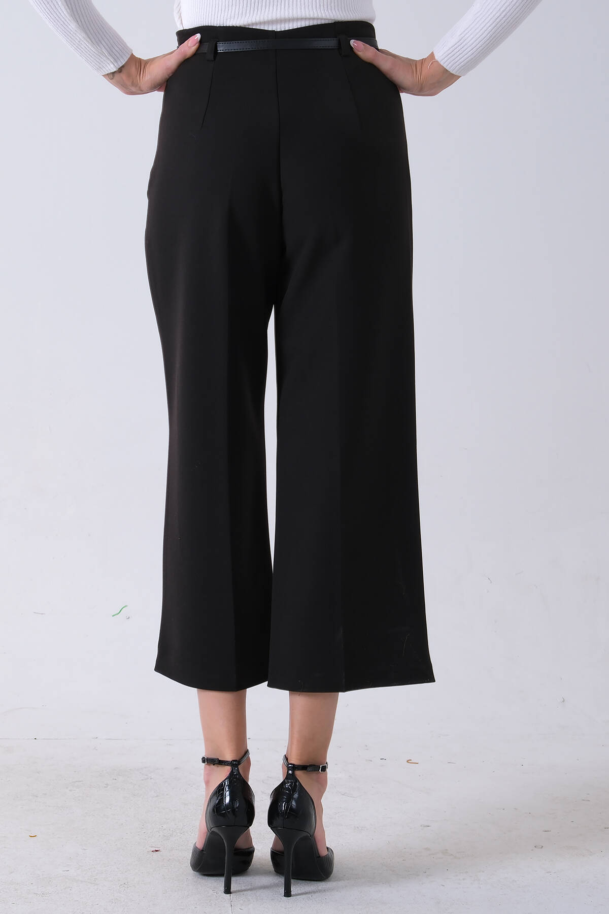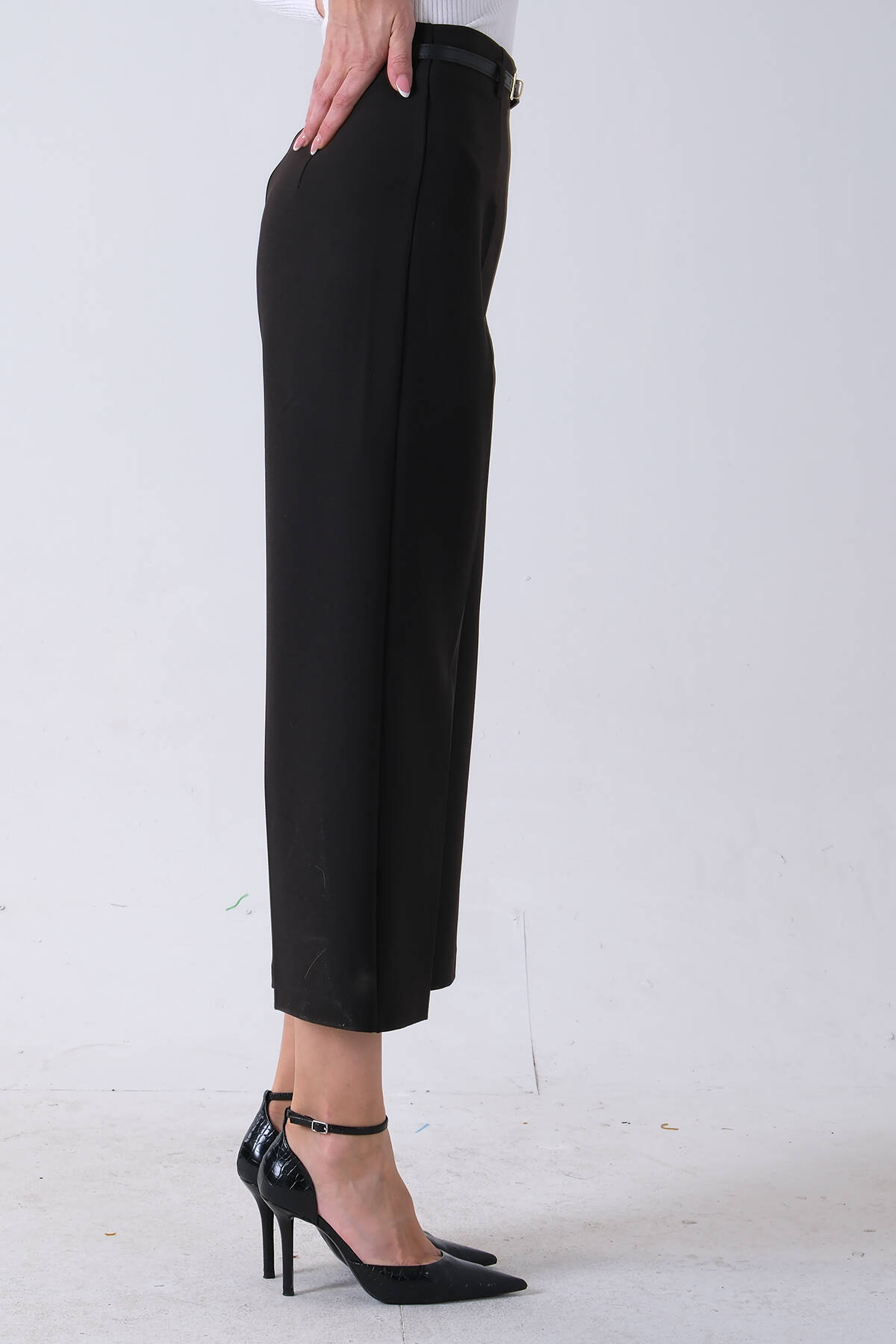 Siyah İnce Kemerli Cepsiz Bol Paça Pantolon 03030307.01
