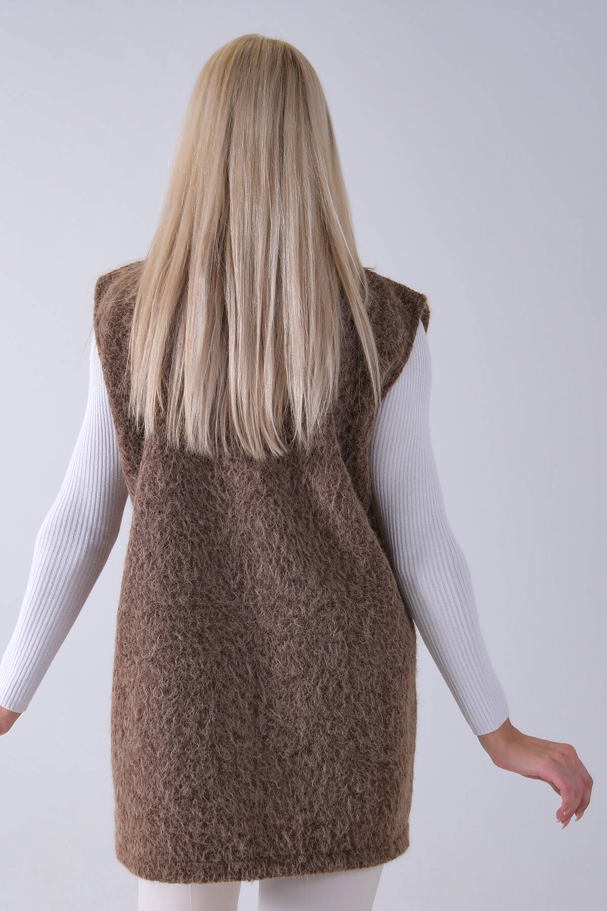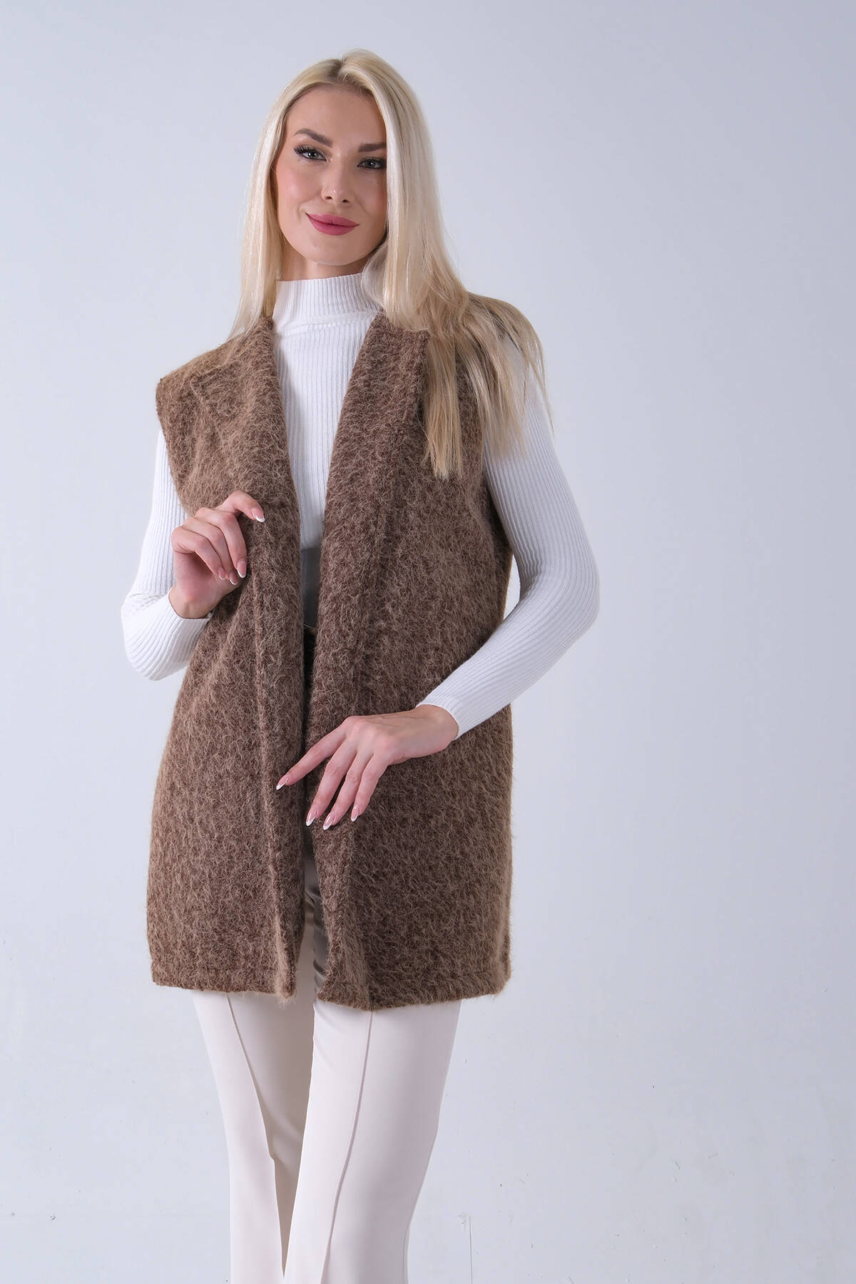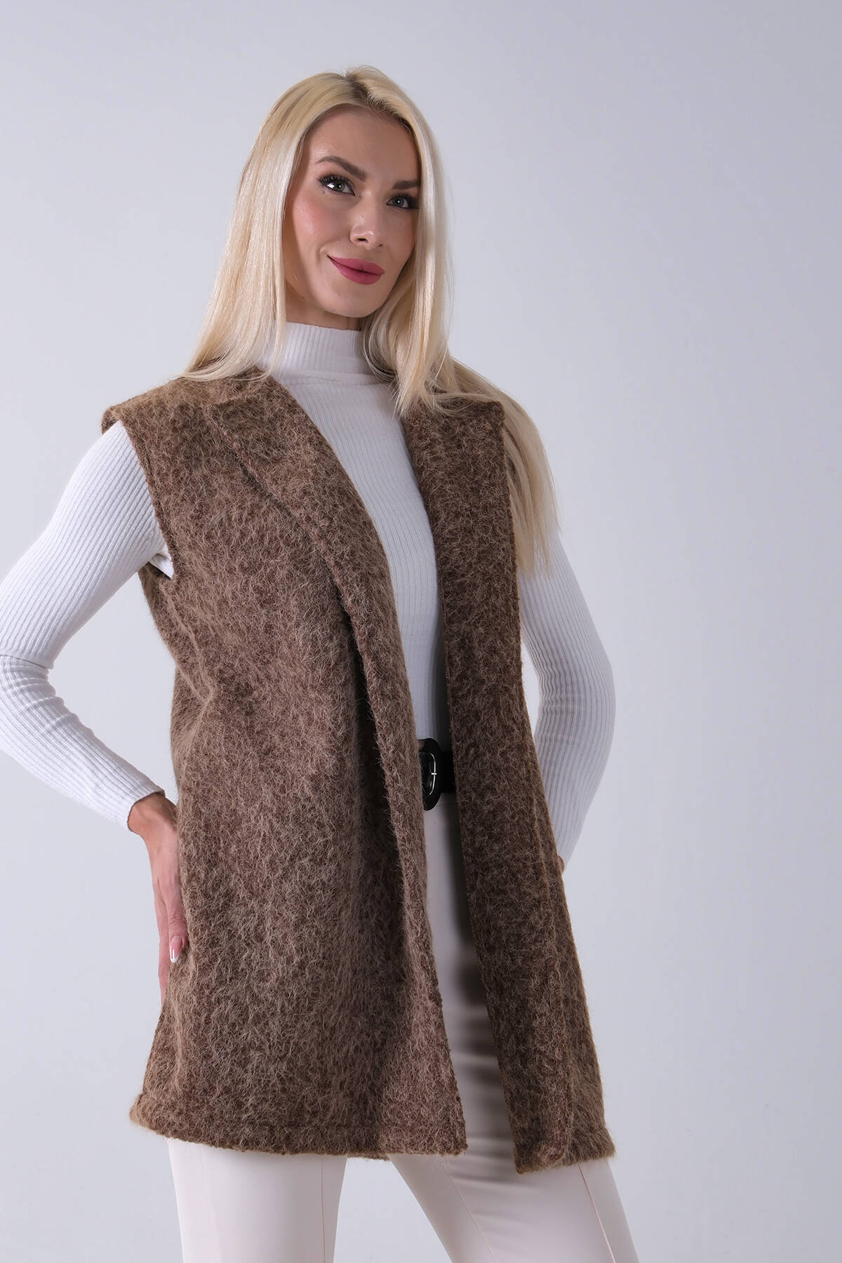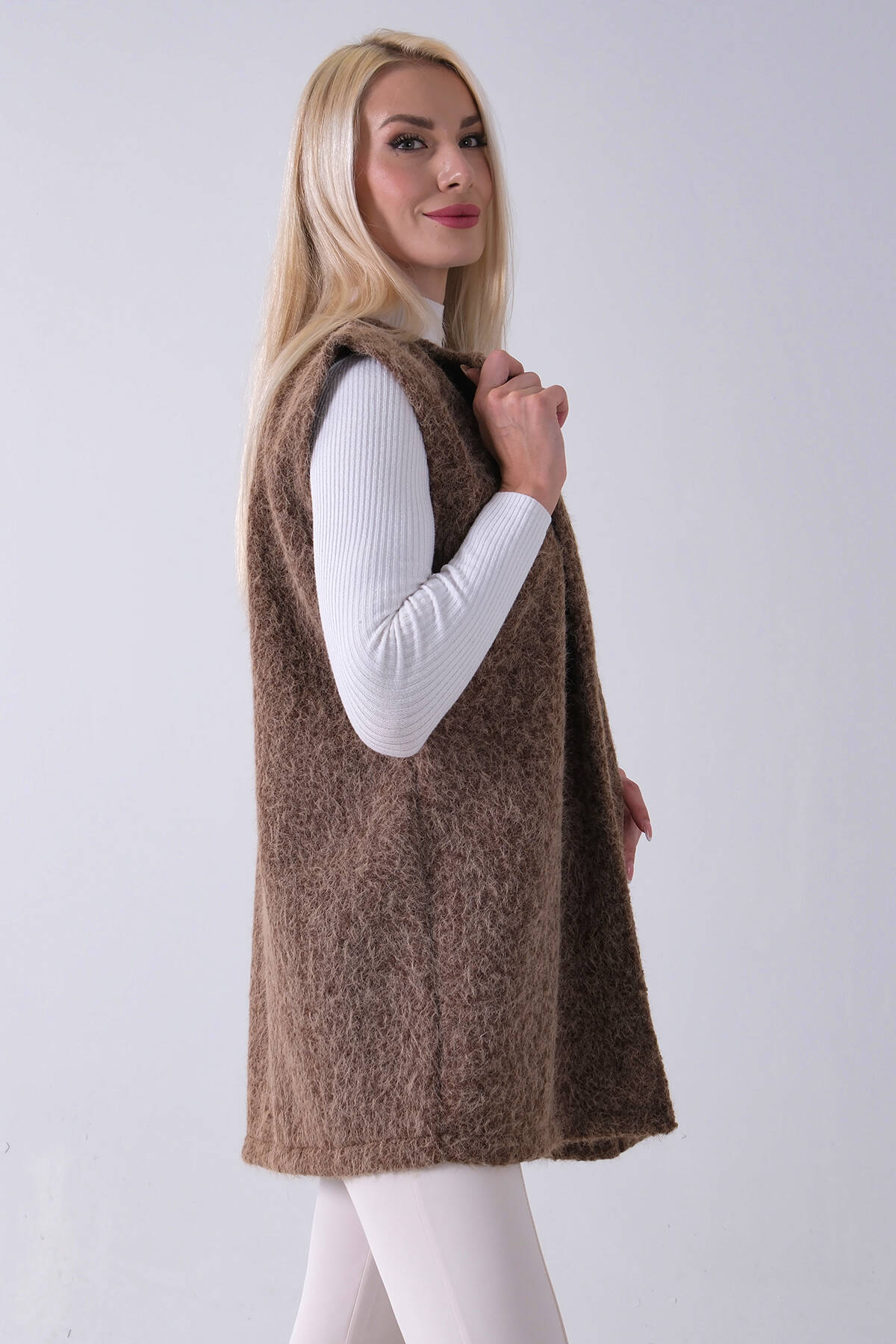 Kahve Yakası Peluşlu Tek Düğme Kapamalı Yelek 4579035.05