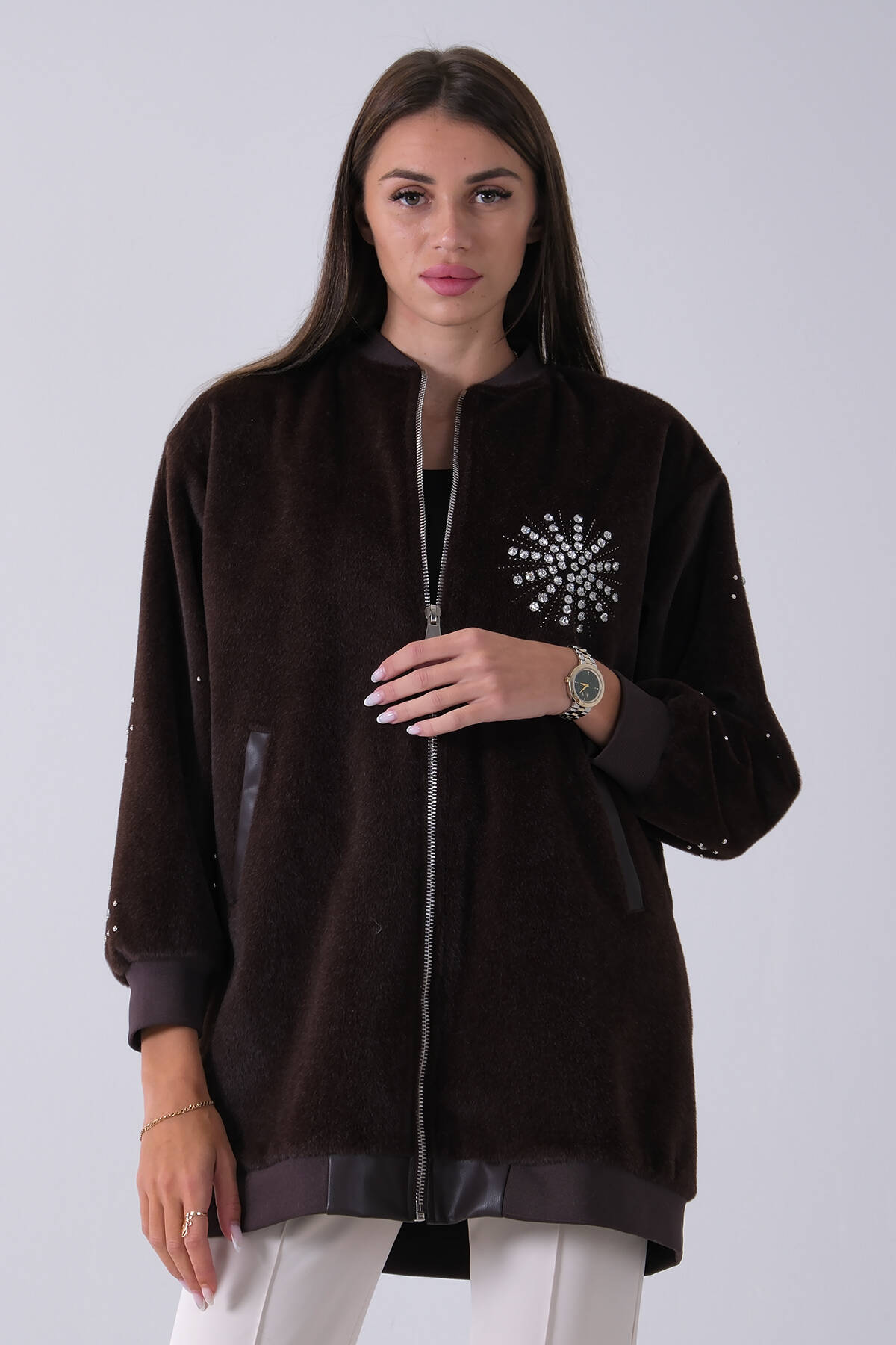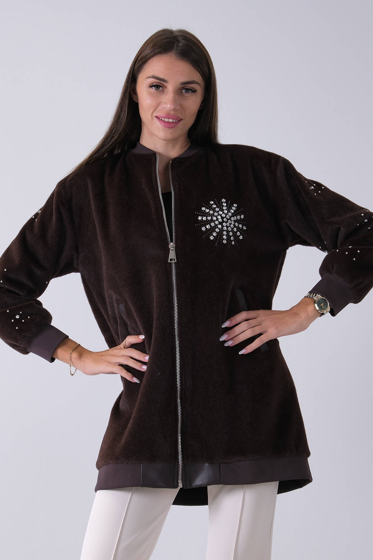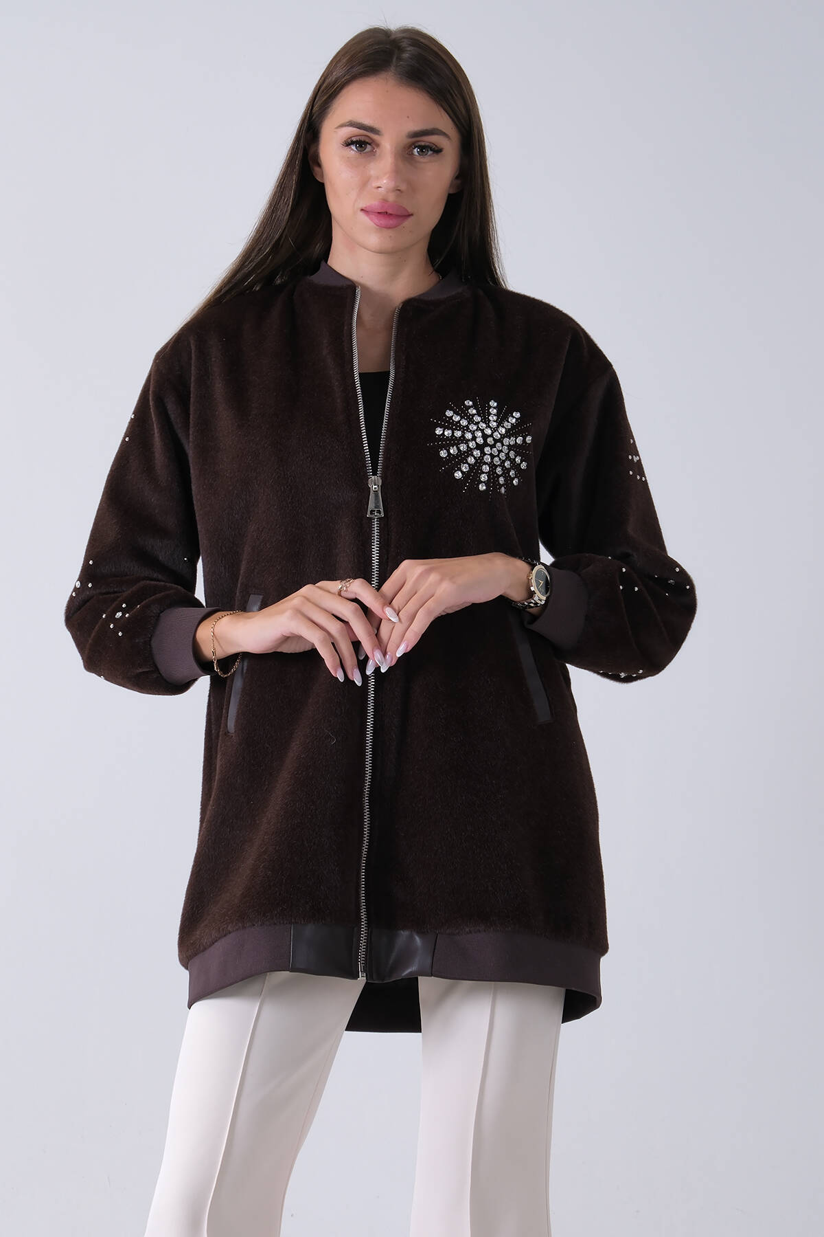 Kahve Üzeri Taş Detaylı Yandan Cepli Peluş Hırka 4701420.05