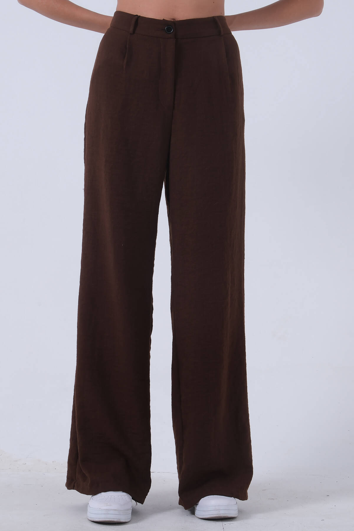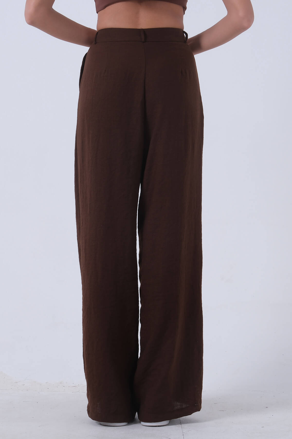 Kahve Yüksek Bel Bol Paça Keten Pantolon 01020661.05