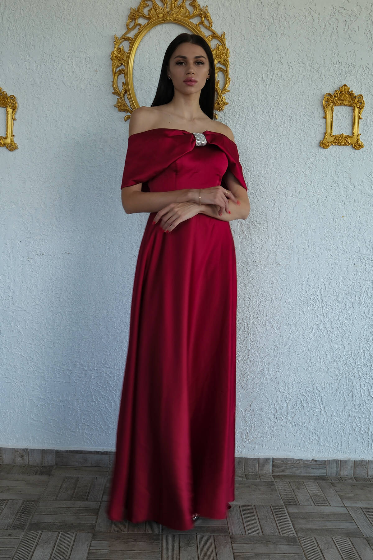 Kırmızı Ön Göğüs Taş Detaylı Abiye 0801035.08
