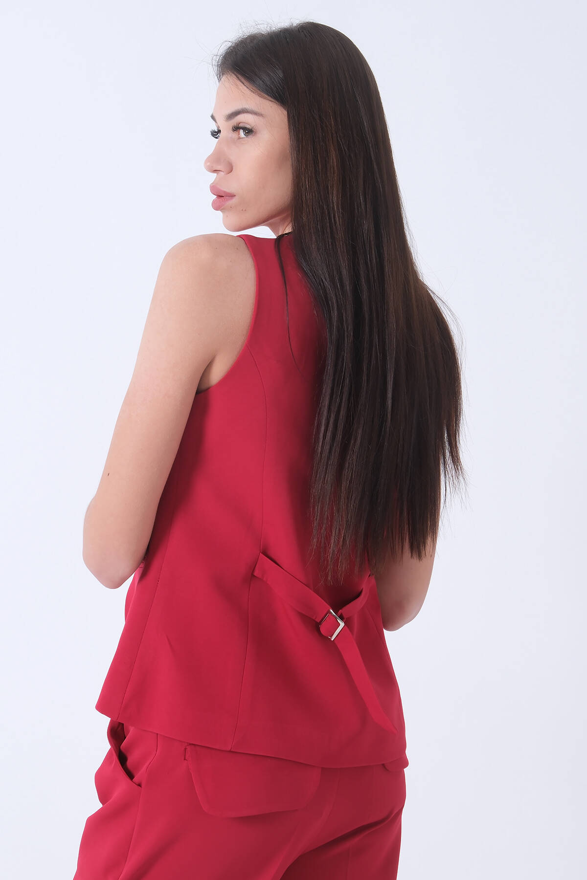 Kırmızı Önü Düğmeli Beli Kuşak Detaylı Yelek 3971971.08