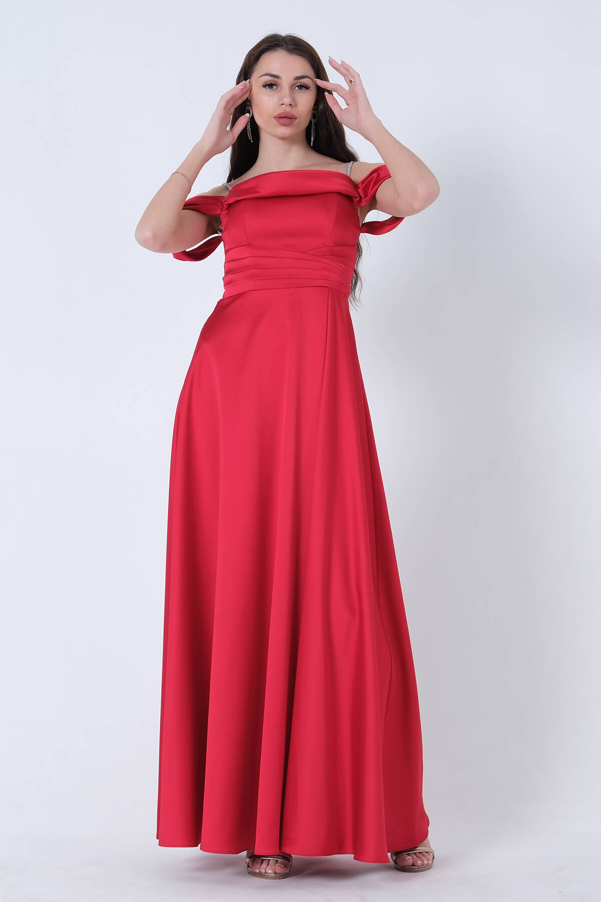 Kırmızı Taş Askılı Düşük Kol Saten Abiye 0806118.08