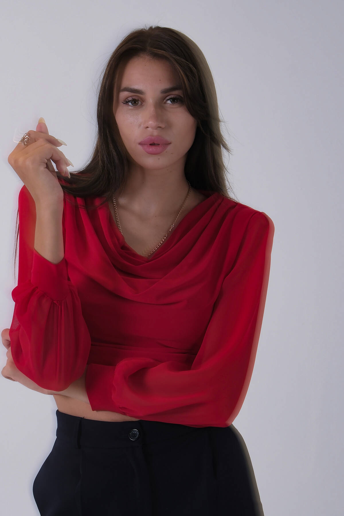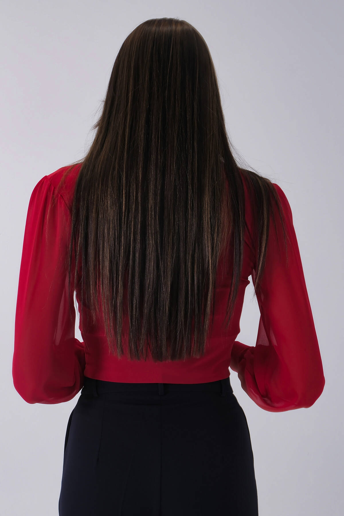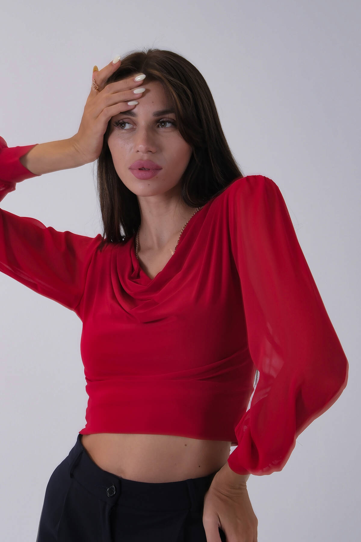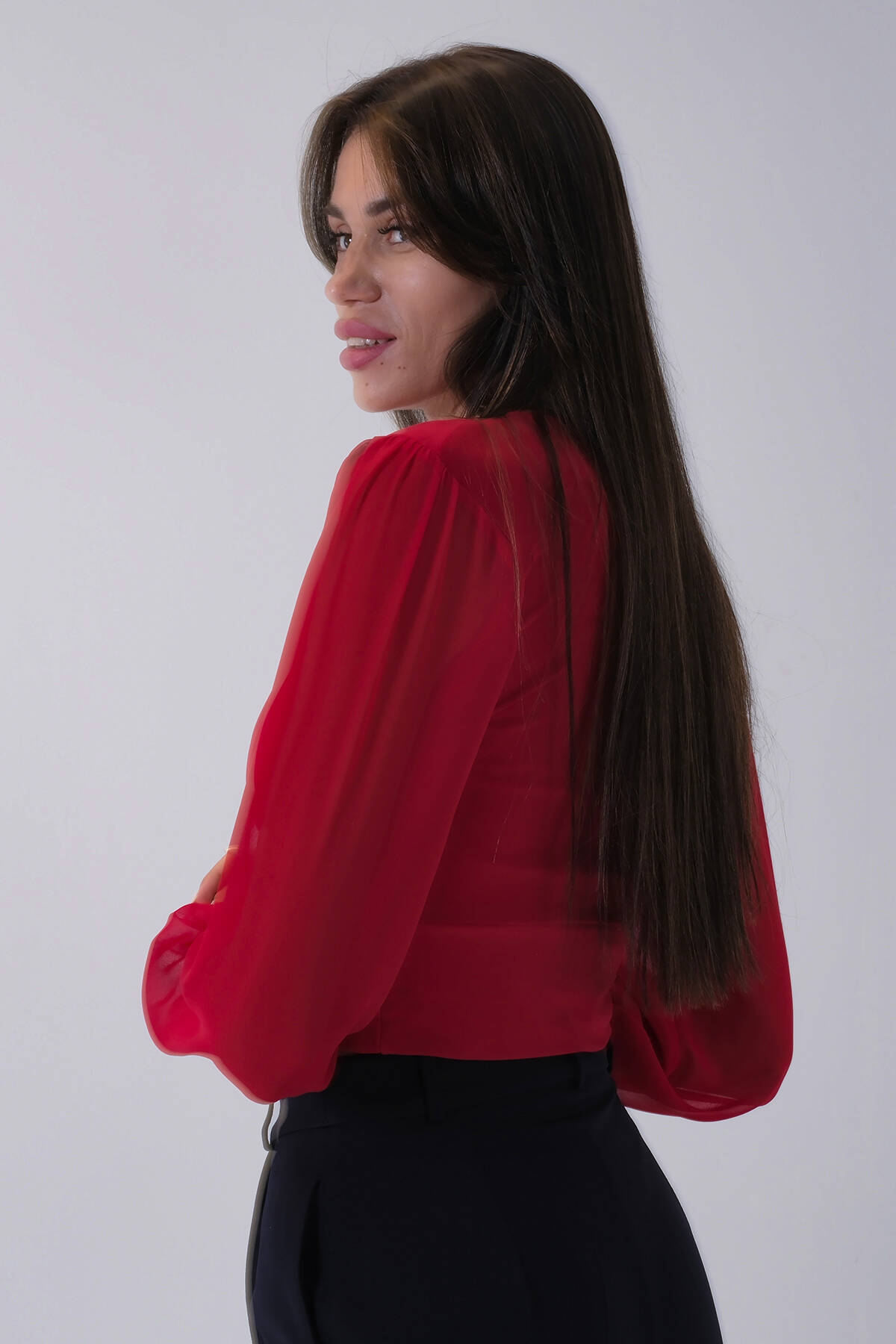 Kırmızı Uzun Kol Degaje Yaka Bluz 4202512.08