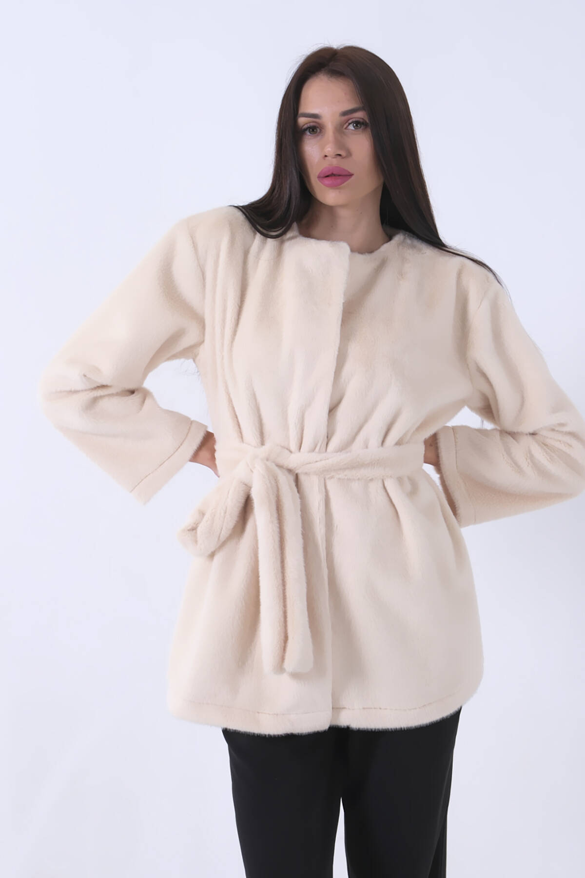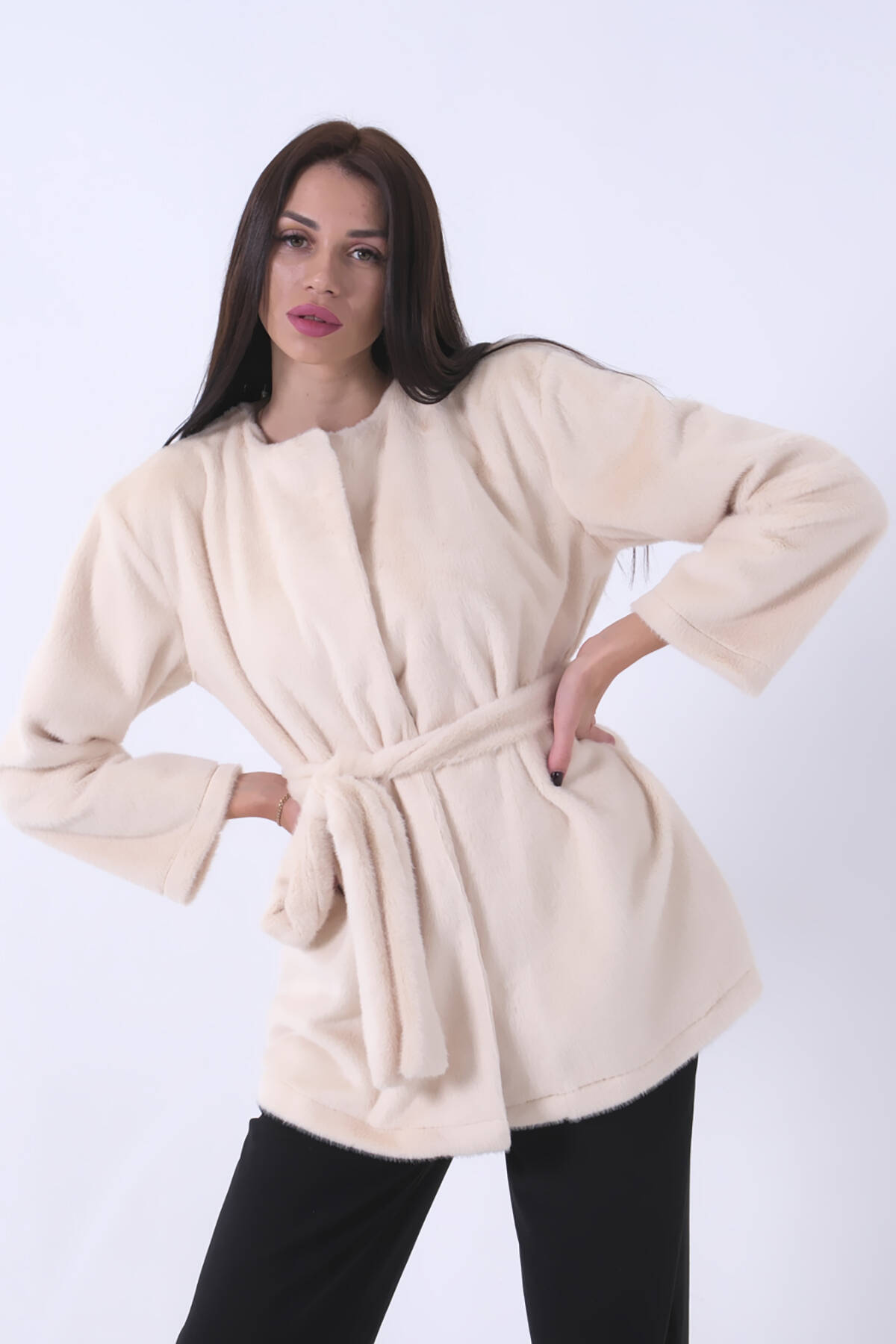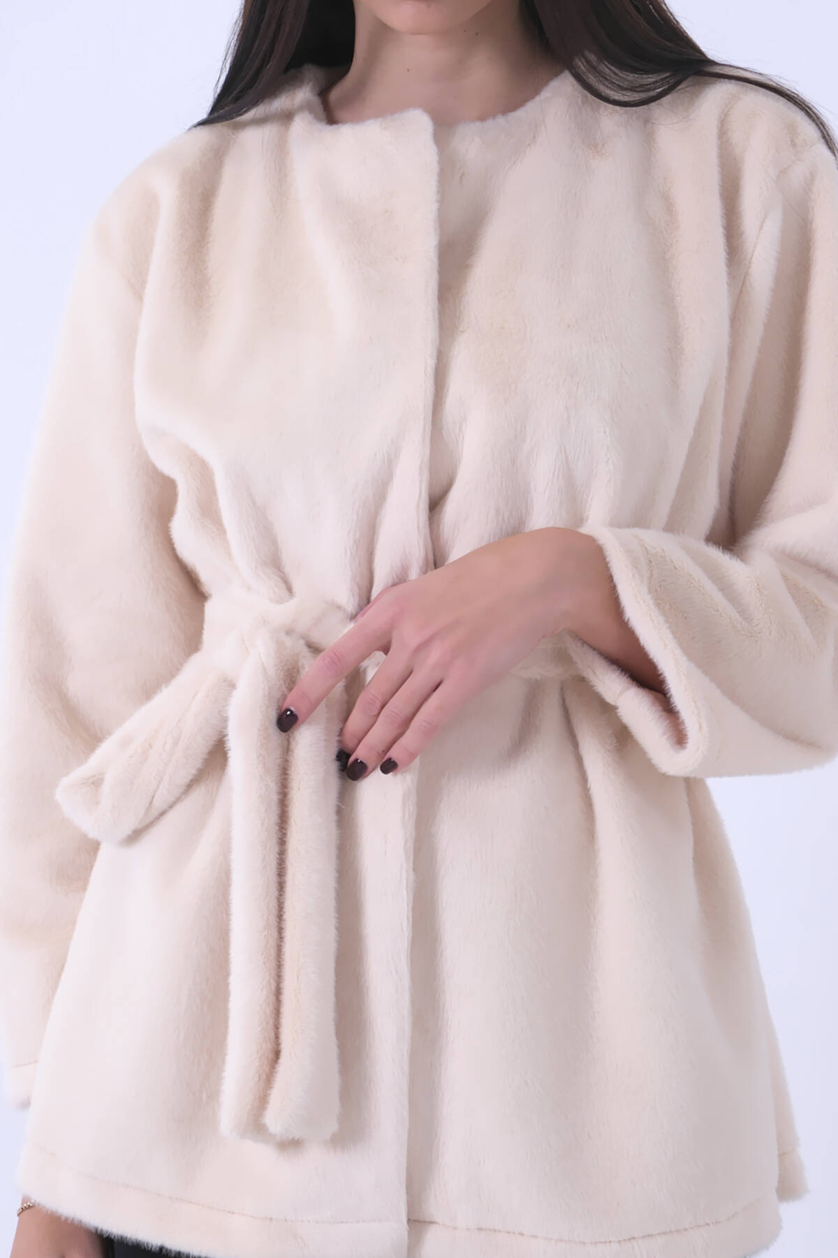 Krem Önü Kapamalı Seyyar Kemerli Peluş Ceket 0105140.19