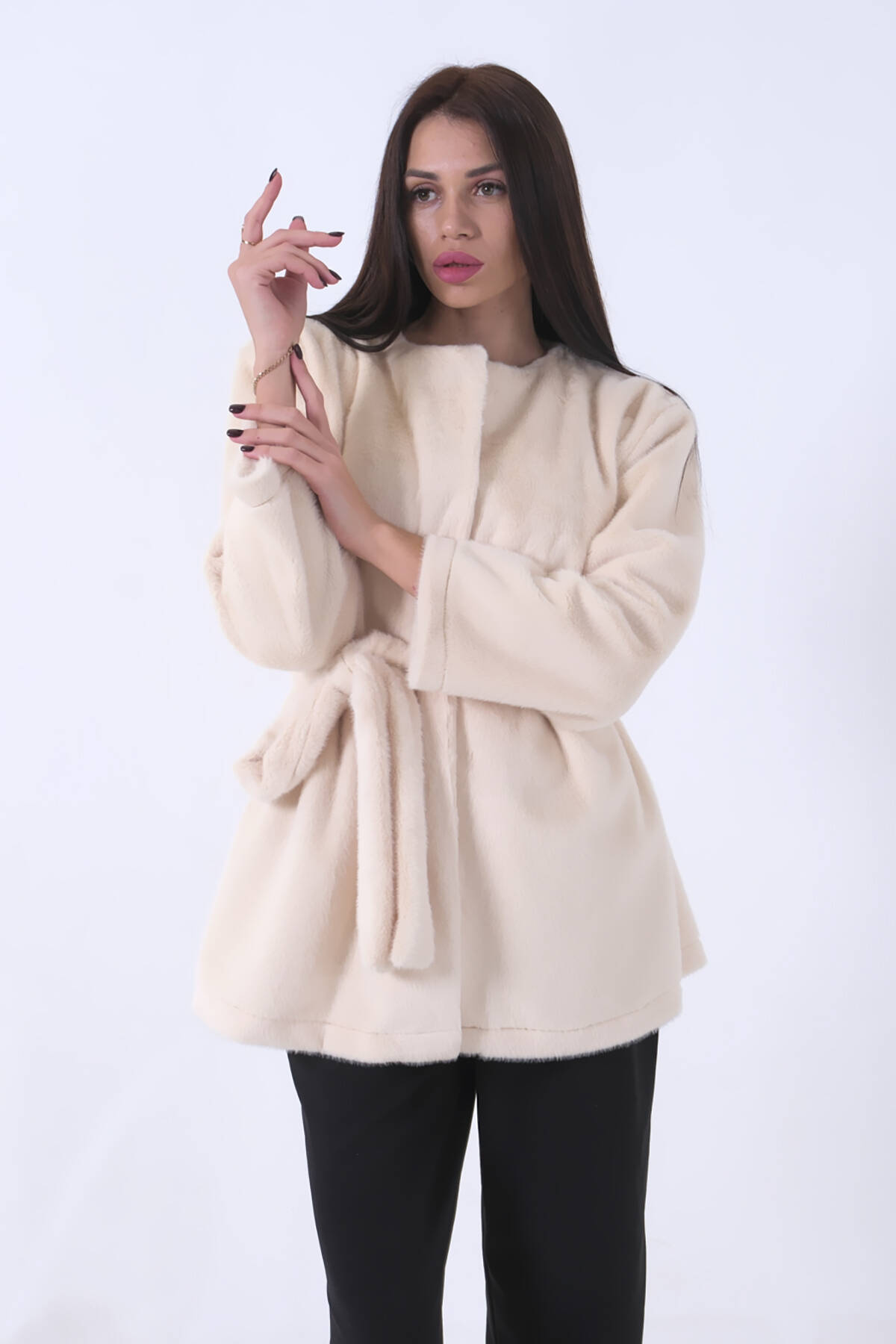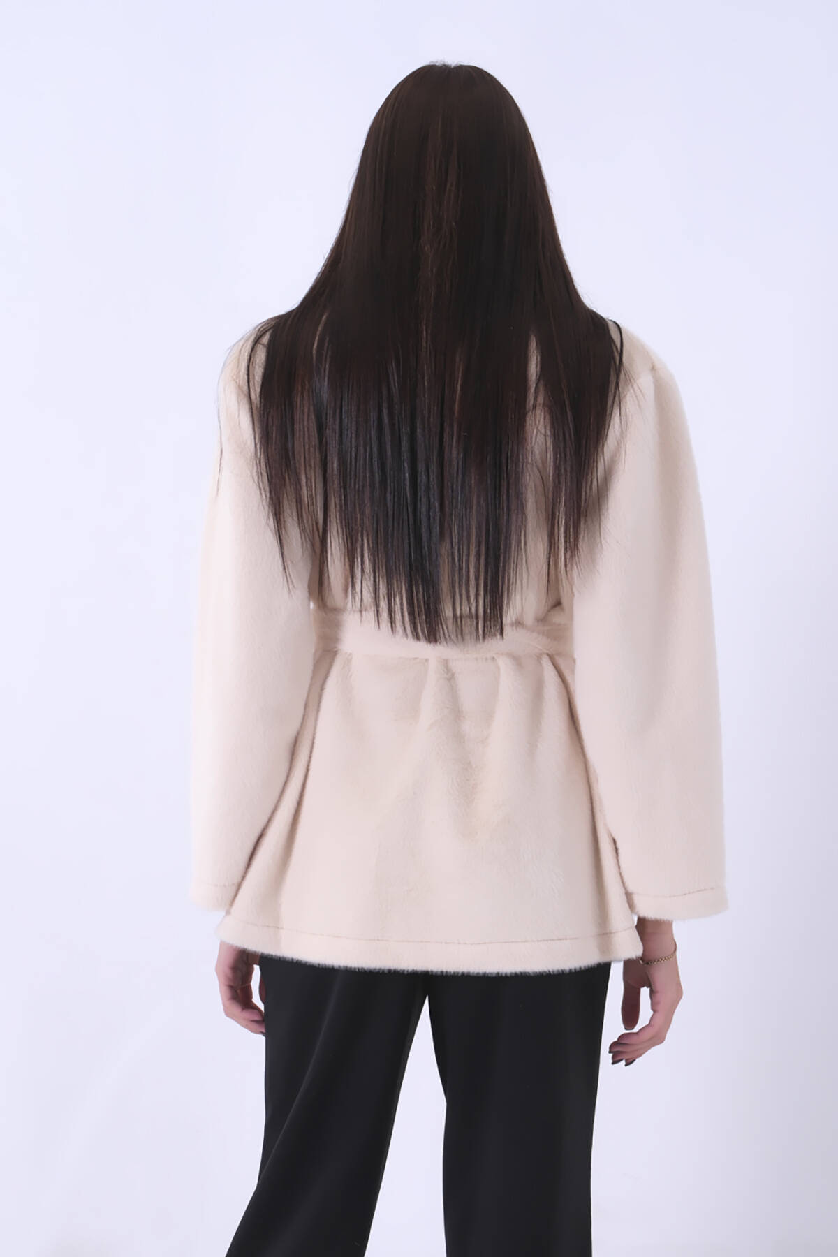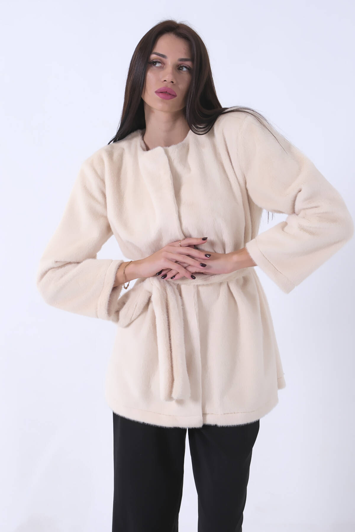 Krem Önü Kapamalı Seyyar Kemerli Peluş Ceket 0105140.19