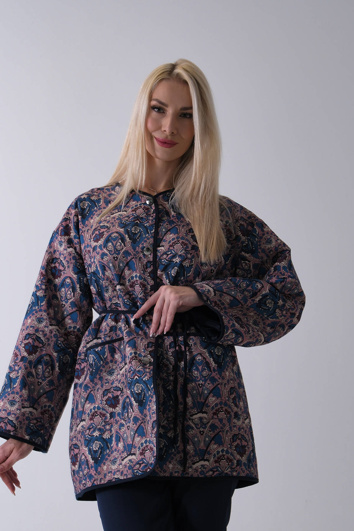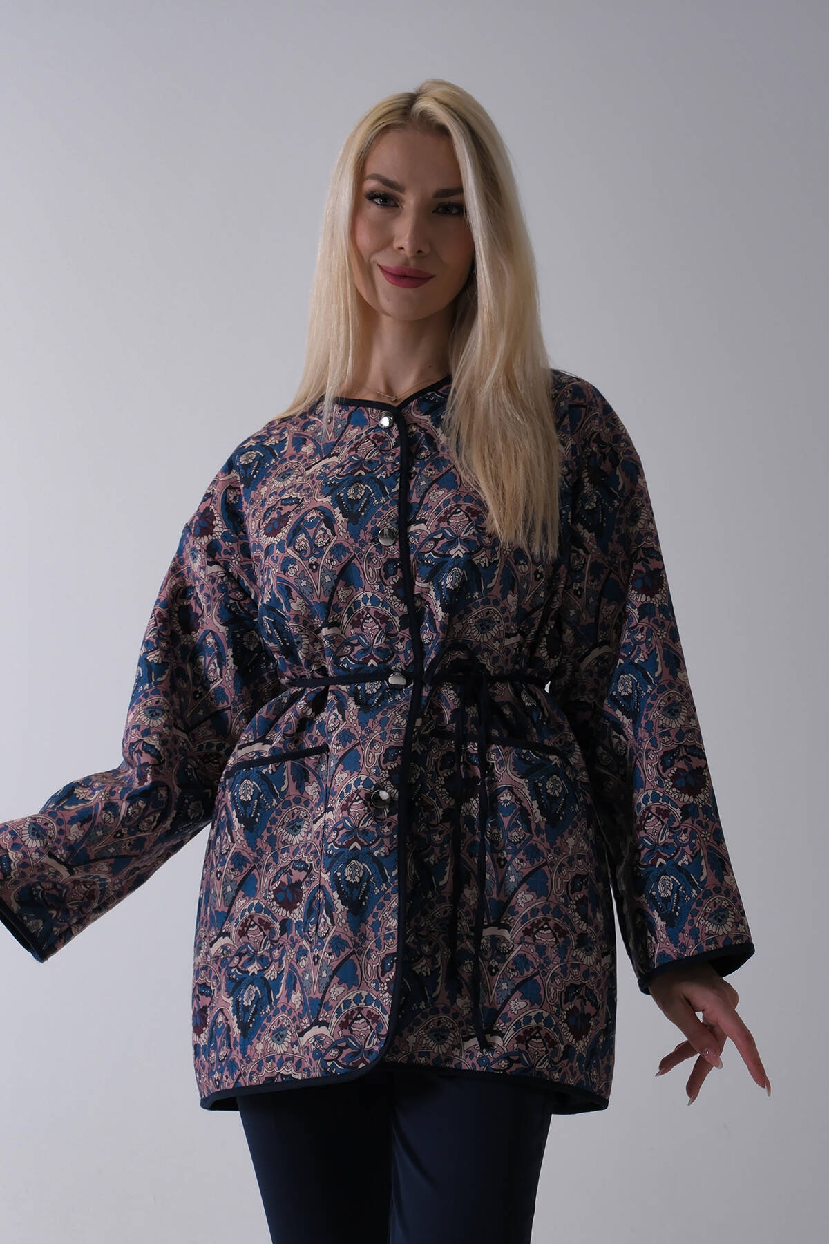 Lacivert Astarlı Biye Detaylı Cepli Kapitone Ceket 31050766.02